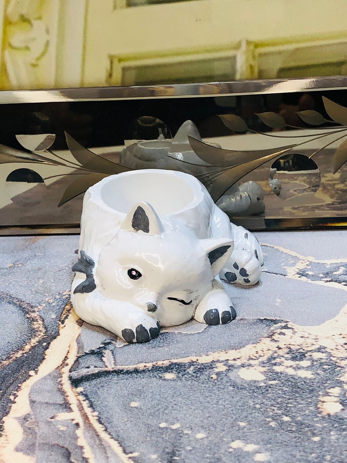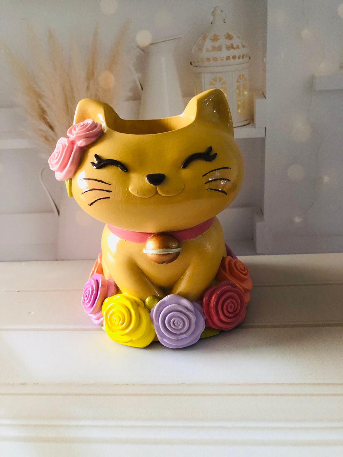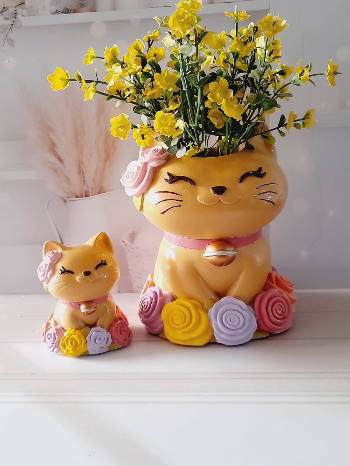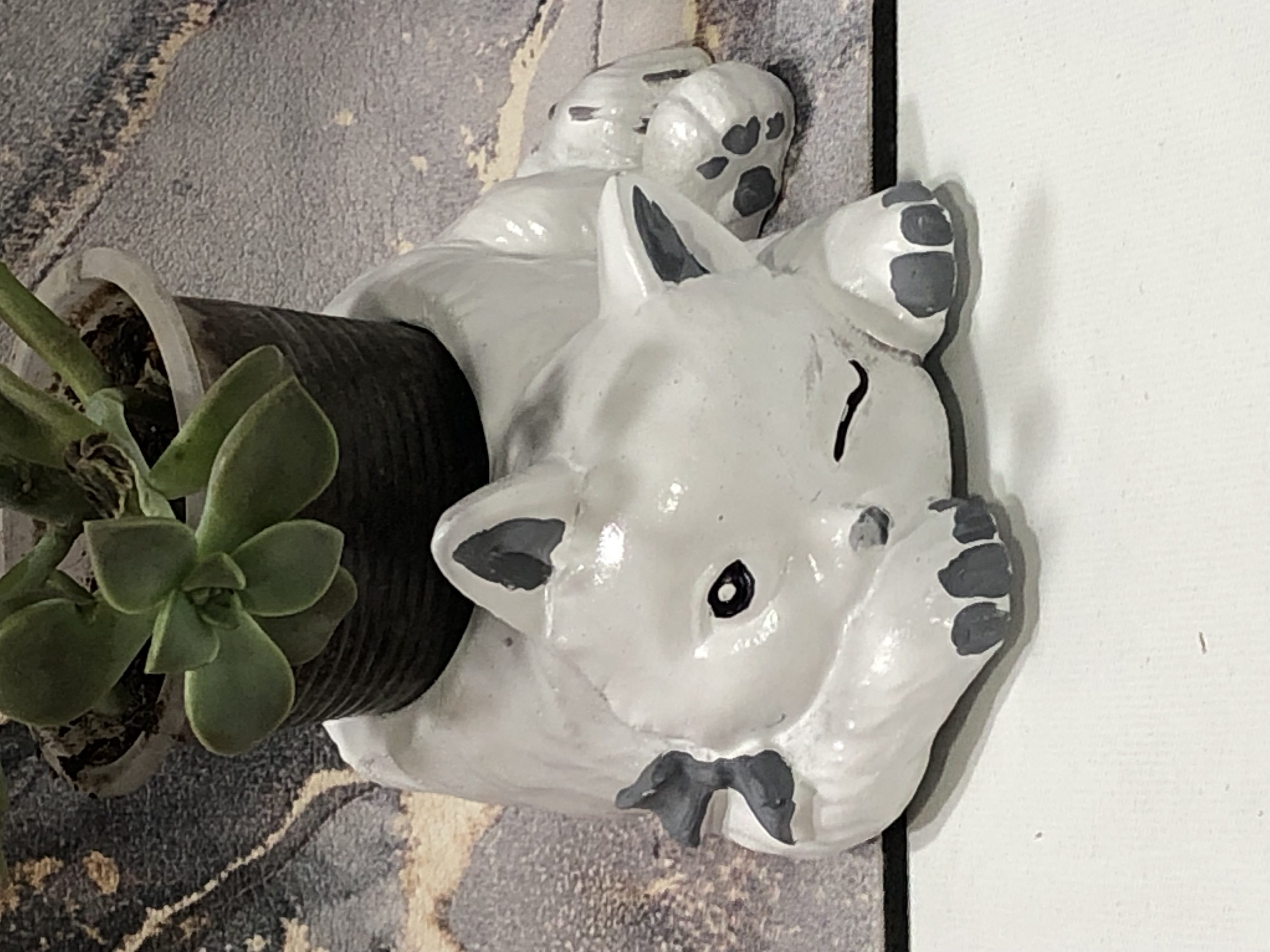 Maceta Gata Realistica, material cemento blanco, altura 12.5cm, peso 1000