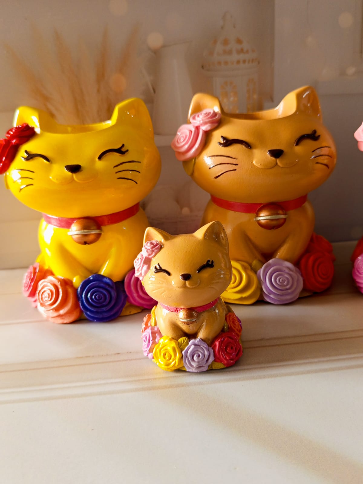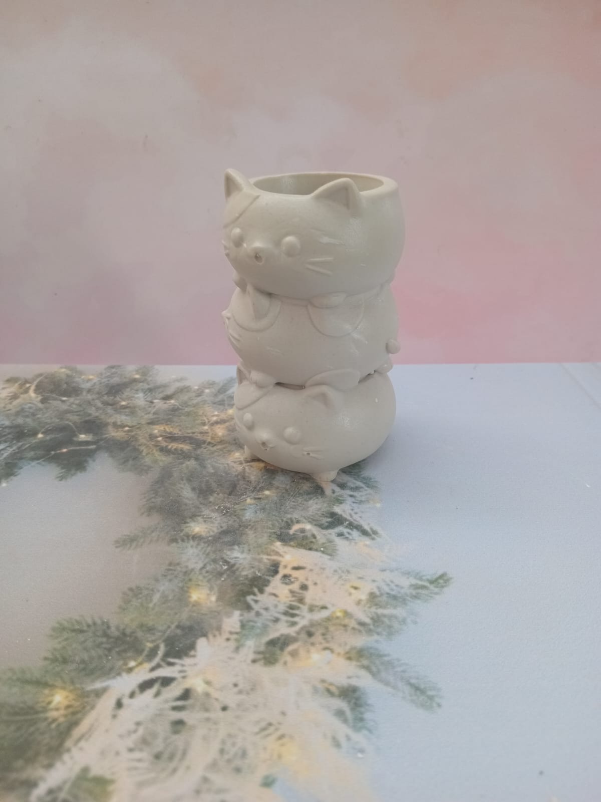 Macetita 3 Gatos, material cemento blanco, altura 10cm, peso 280g