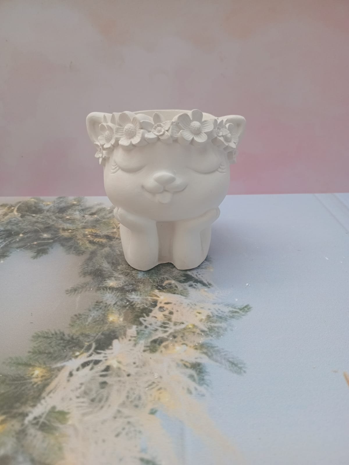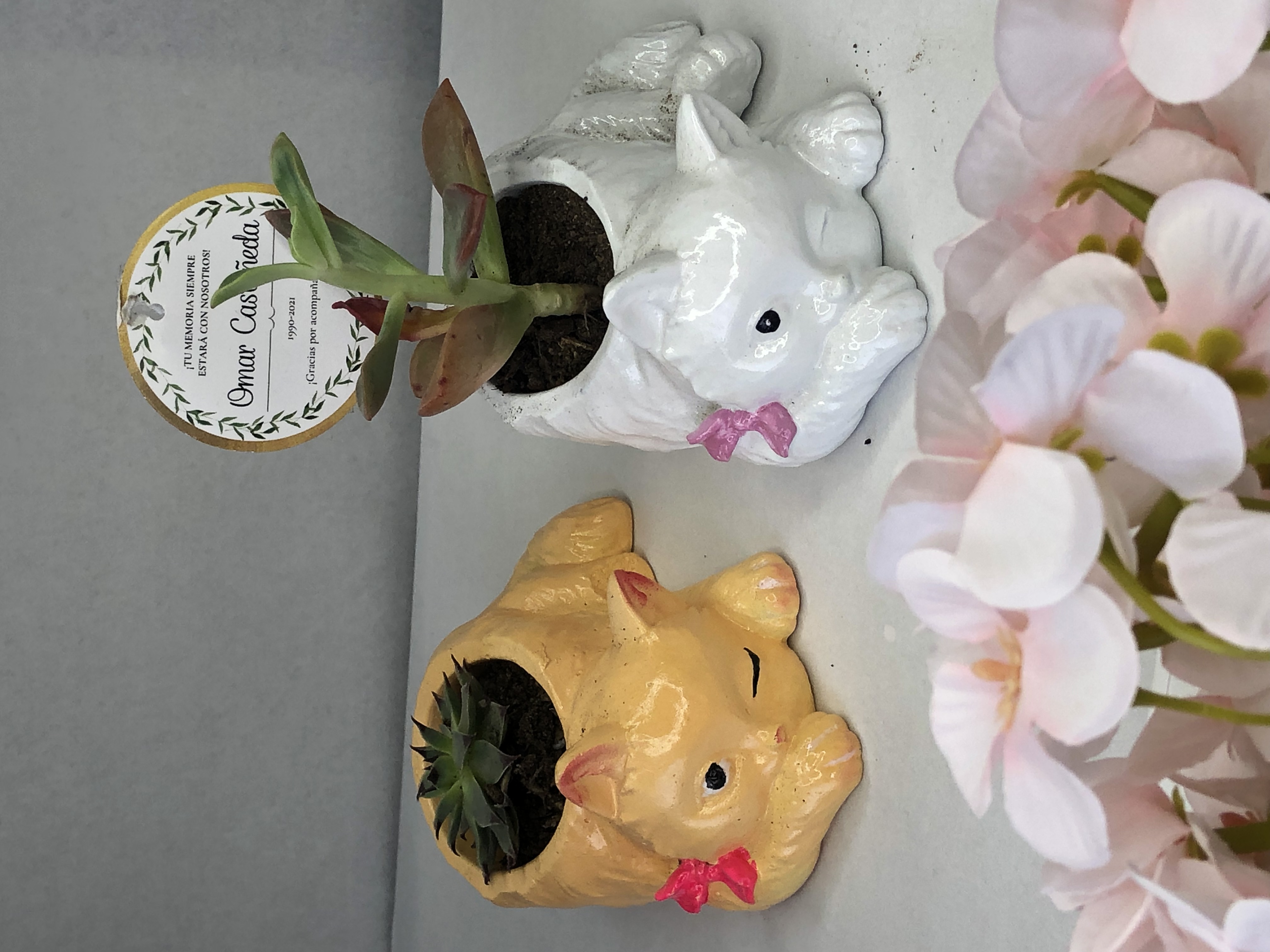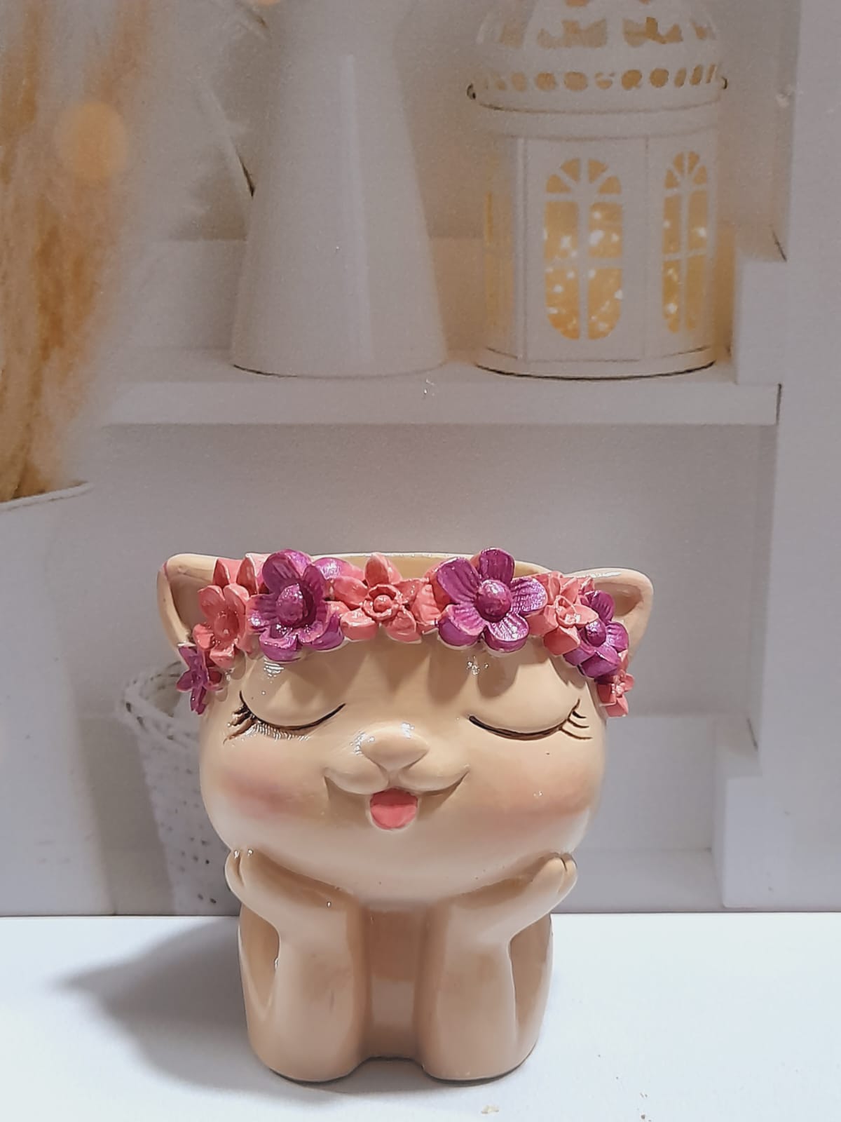 Macetita Gatita, material cemento blanco, altura 4.5cm, peso 250g
