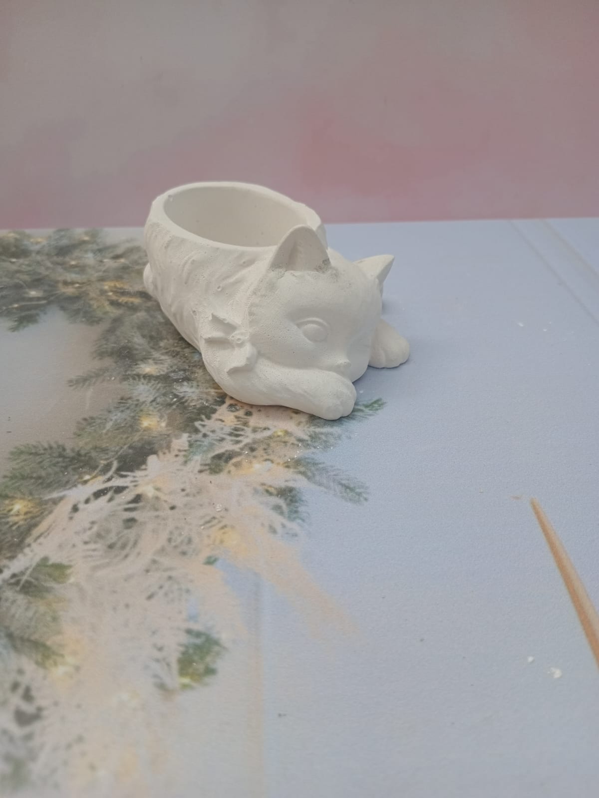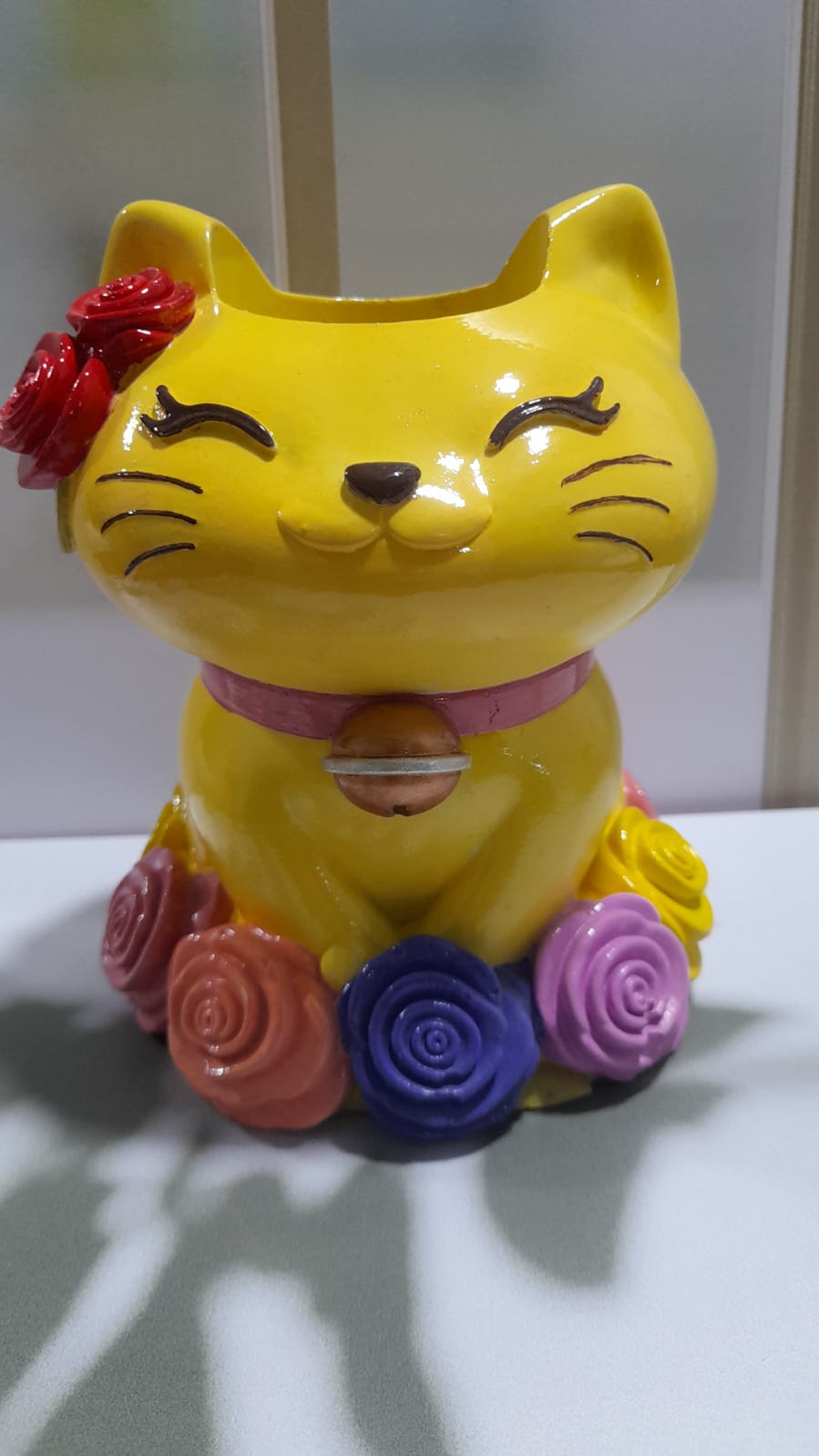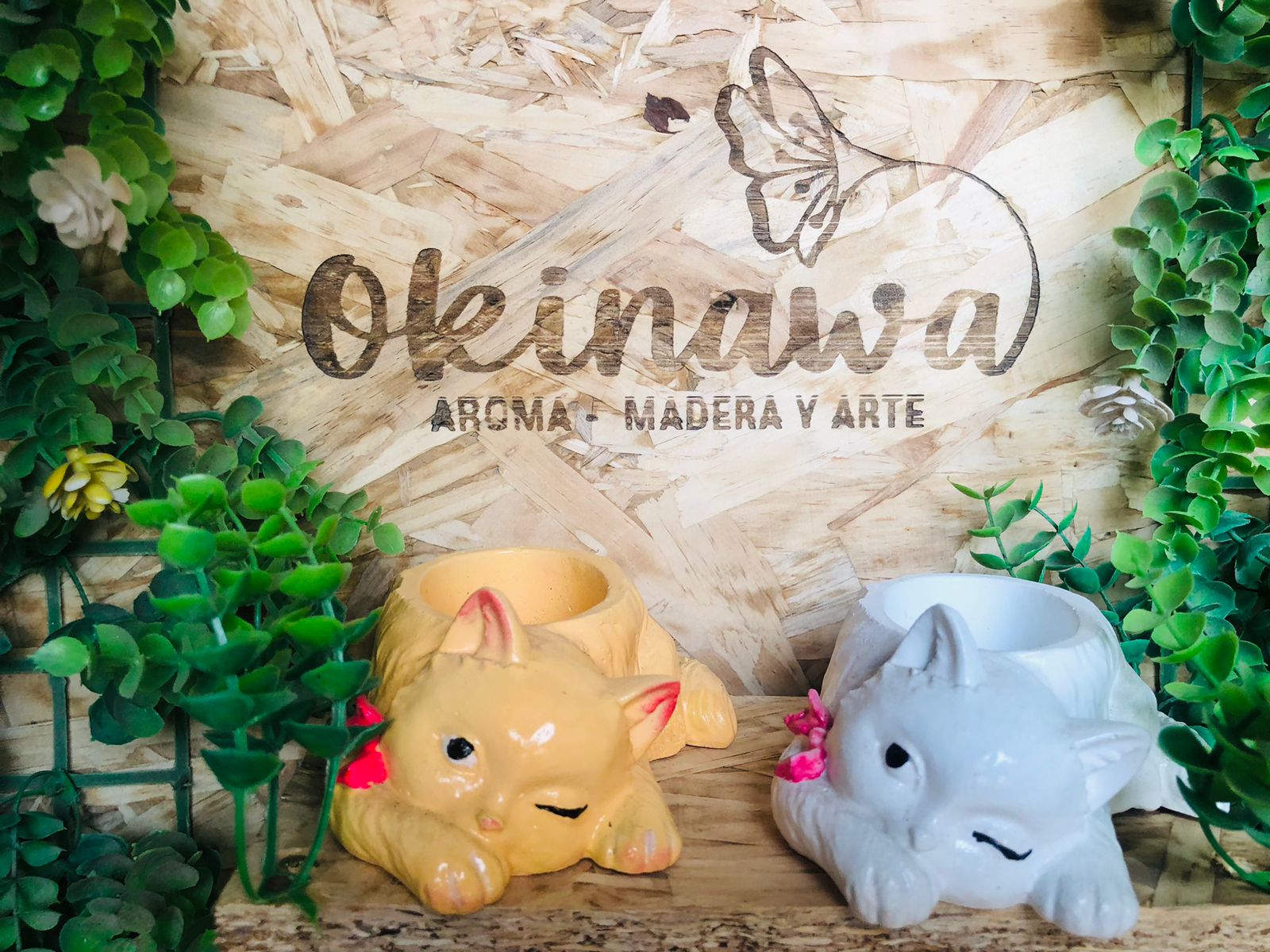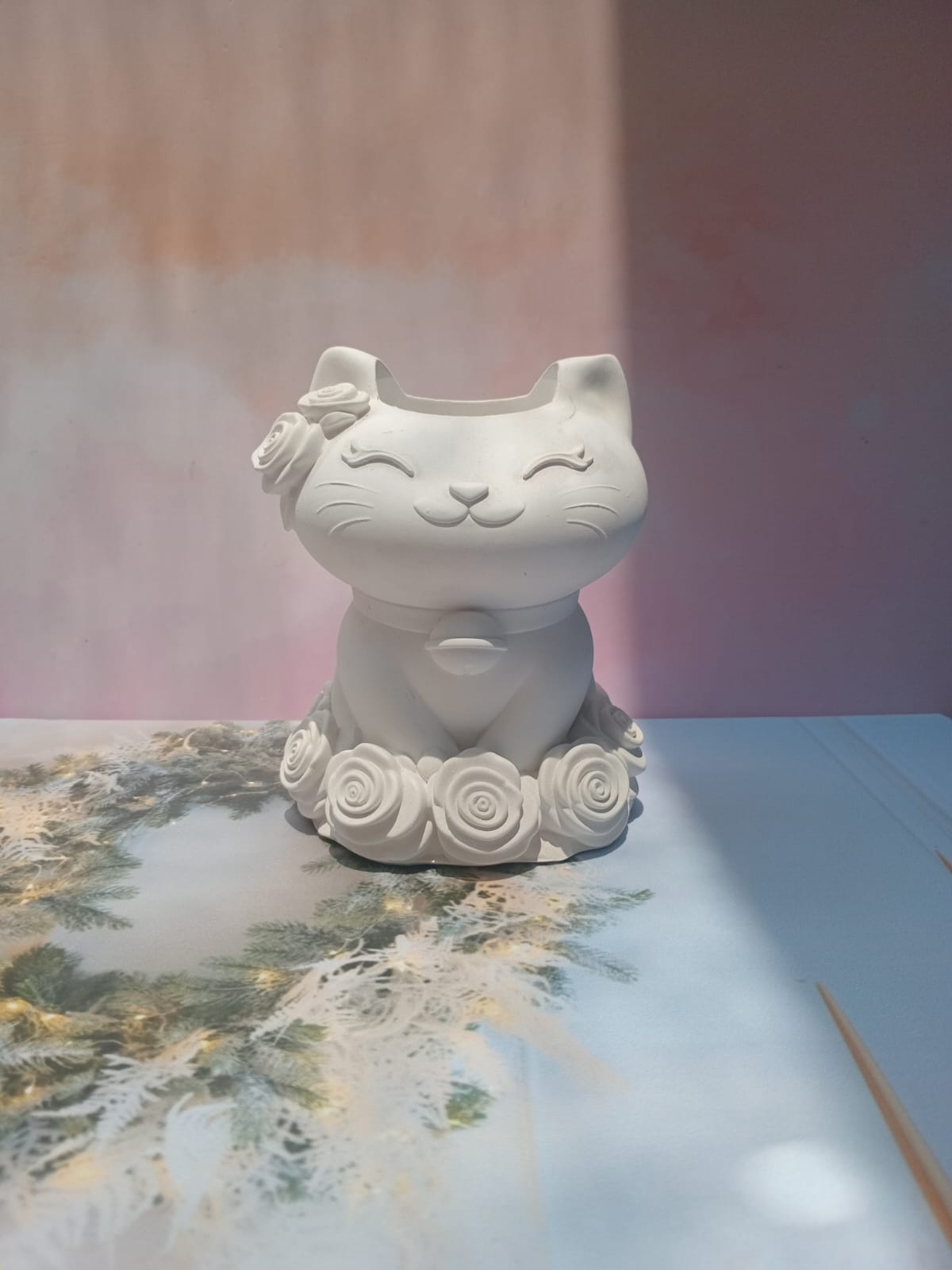 Macetita Gatita, material cemento blanco, altura 4.5cm, peso 250g