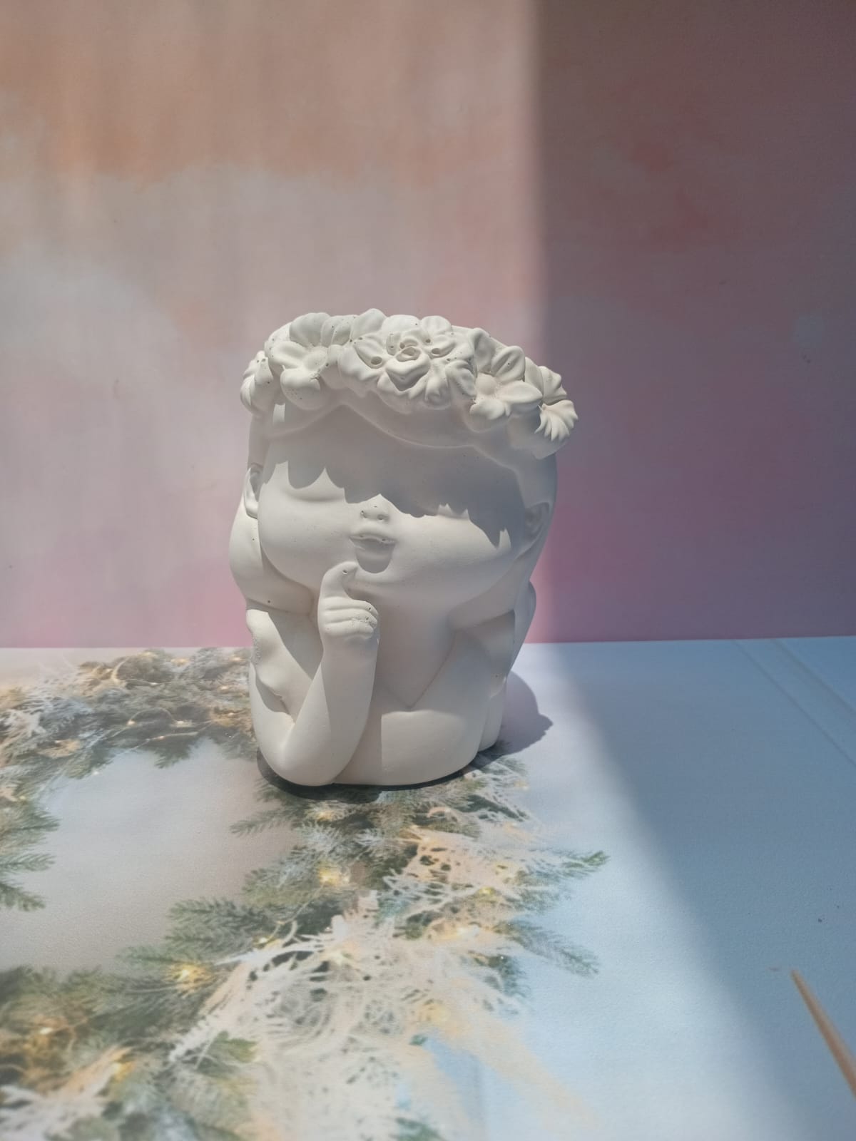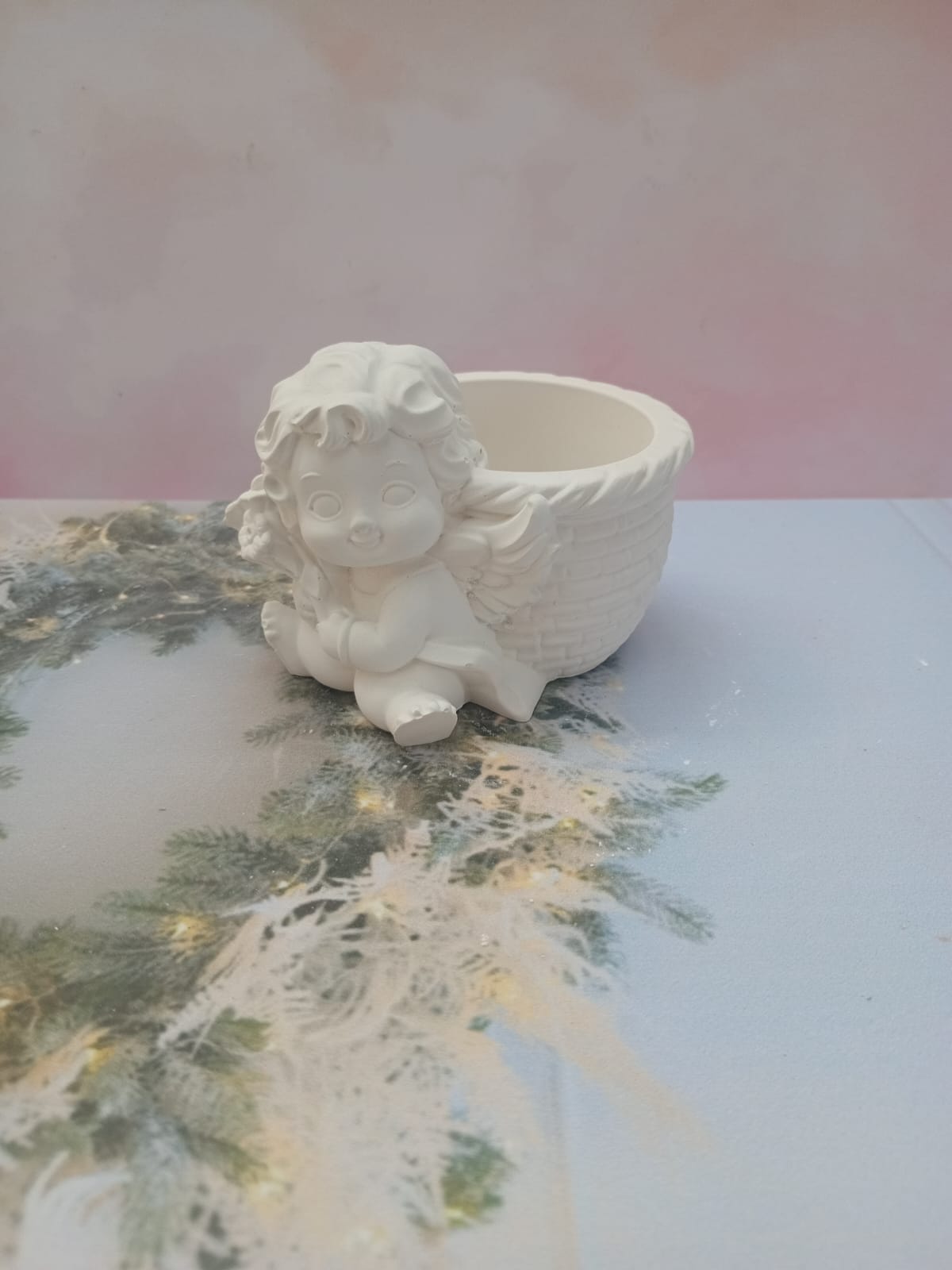 Macetita Angelito, material cemento blanco, altura 7.5cm, peso 310g