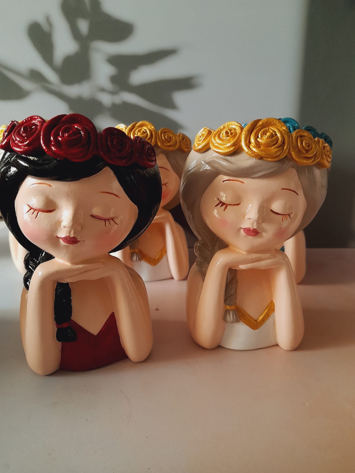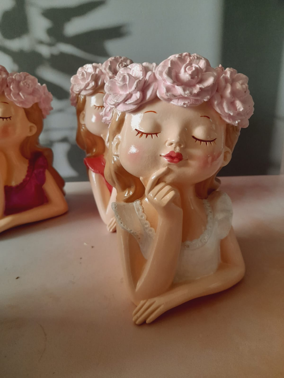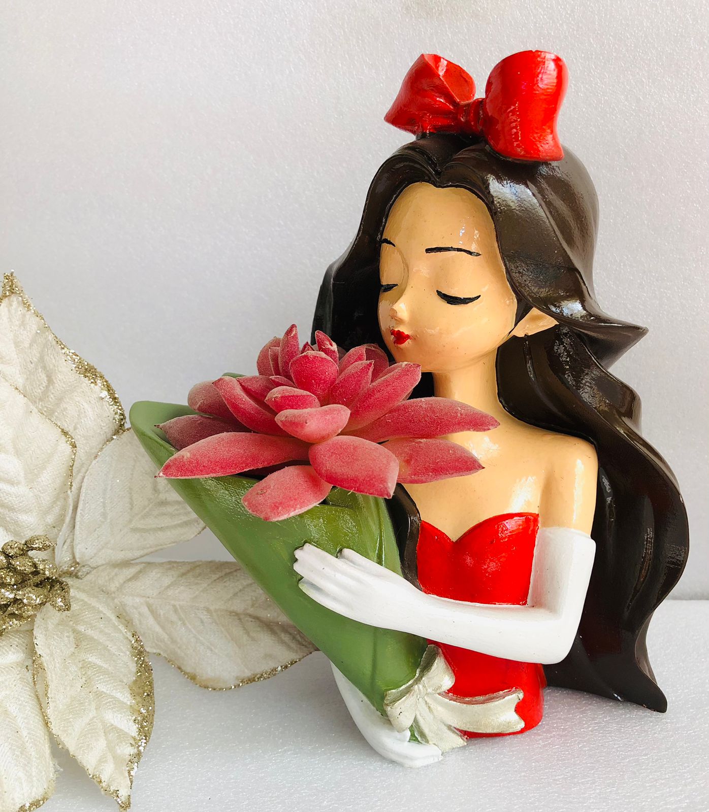 Macetita Senorita, material cemento blanco, altura 8.5cm, peso 260g