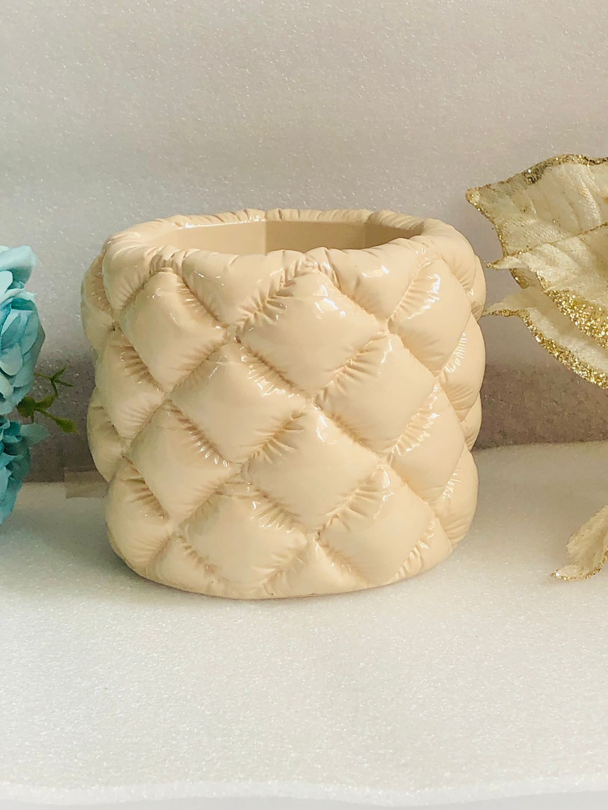 Maceta/Portalapicero Luisa, material cemento blanco, altura 10cm, peso 370g