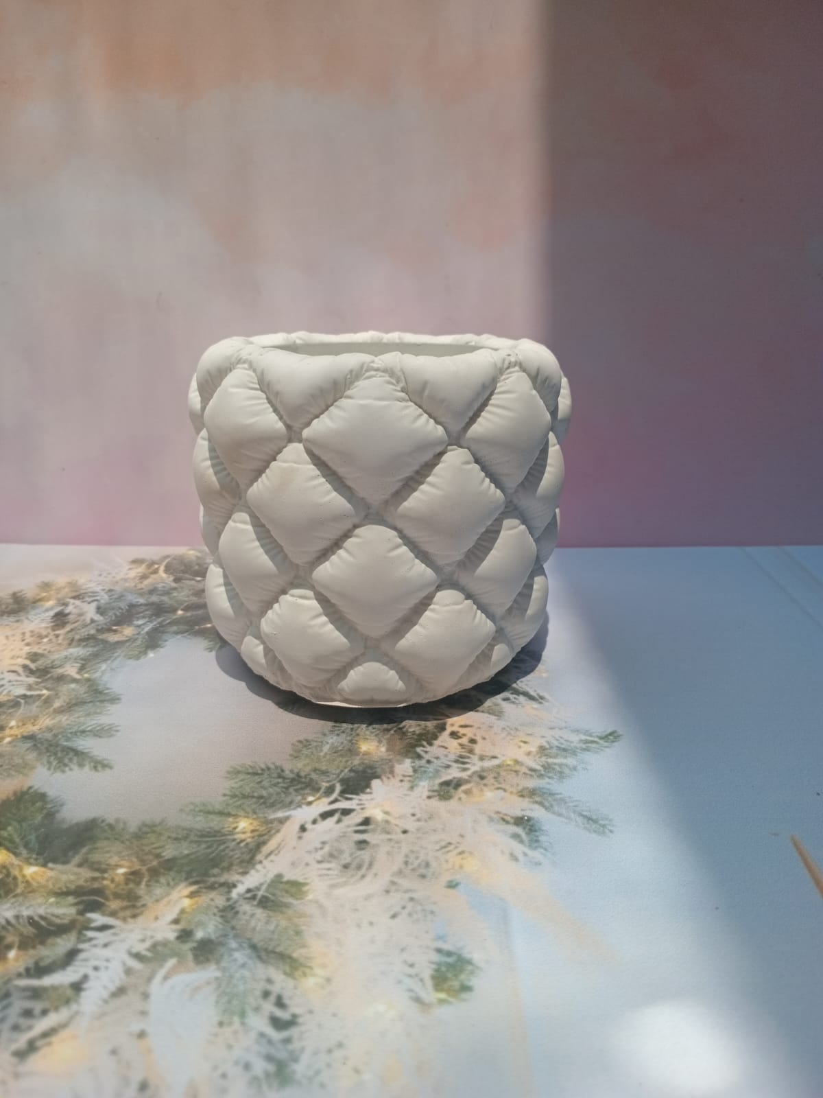 Maceta Cojin, material cemento blanco, altura 10cm, peso 860g