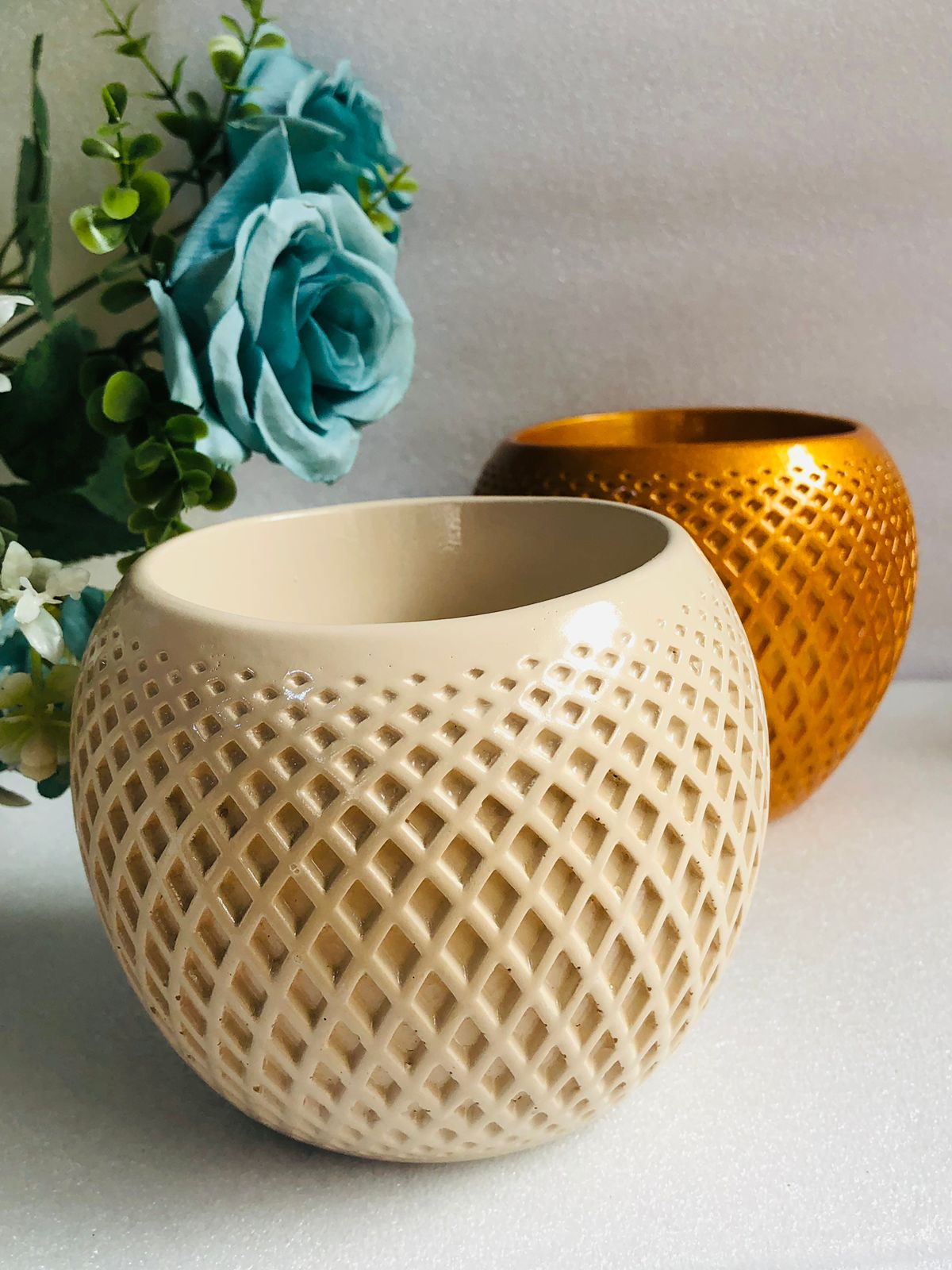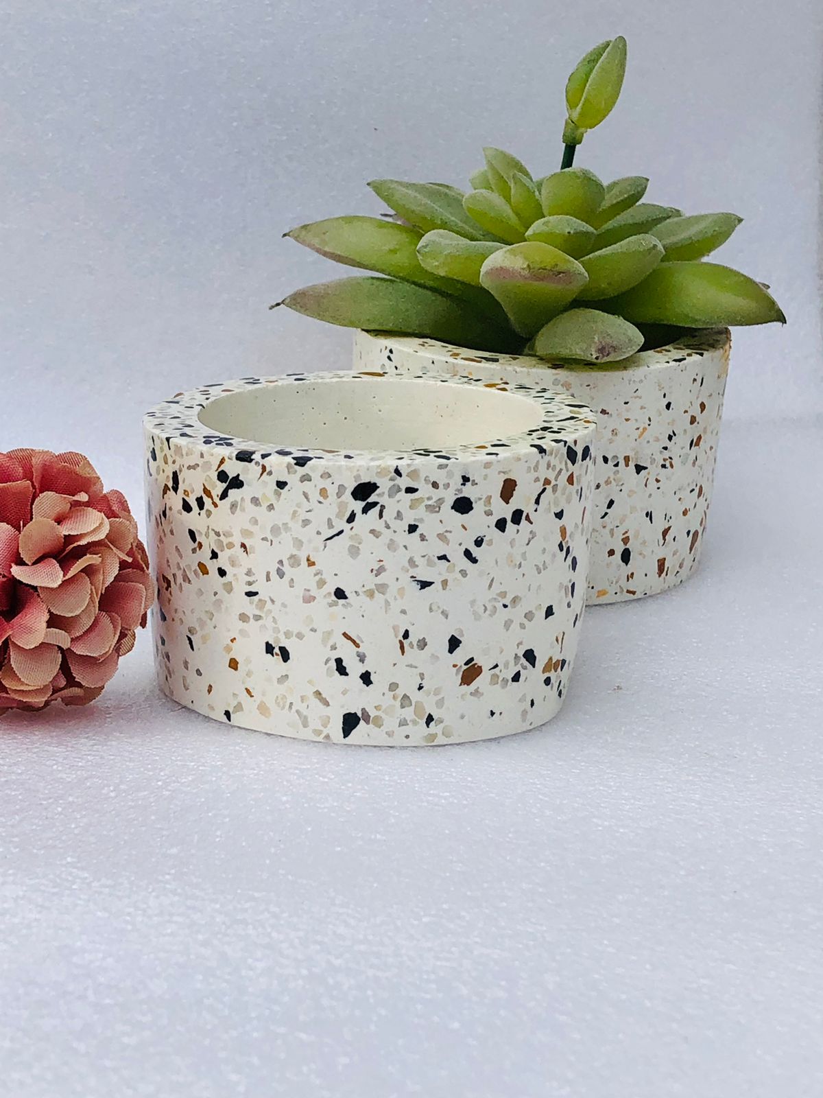 Macetira Flora, material cemento blanco, altura 10cm, peso 250g
