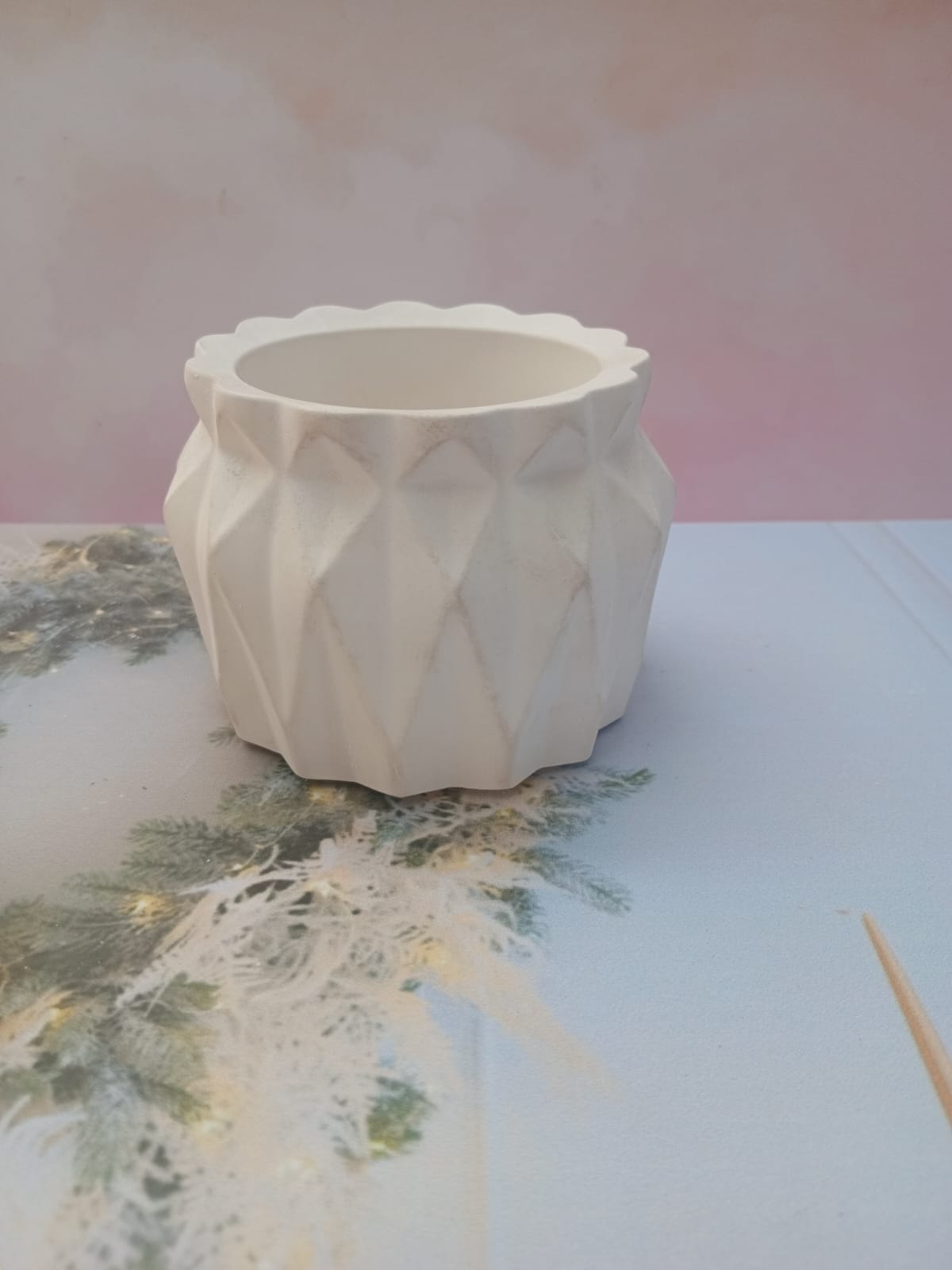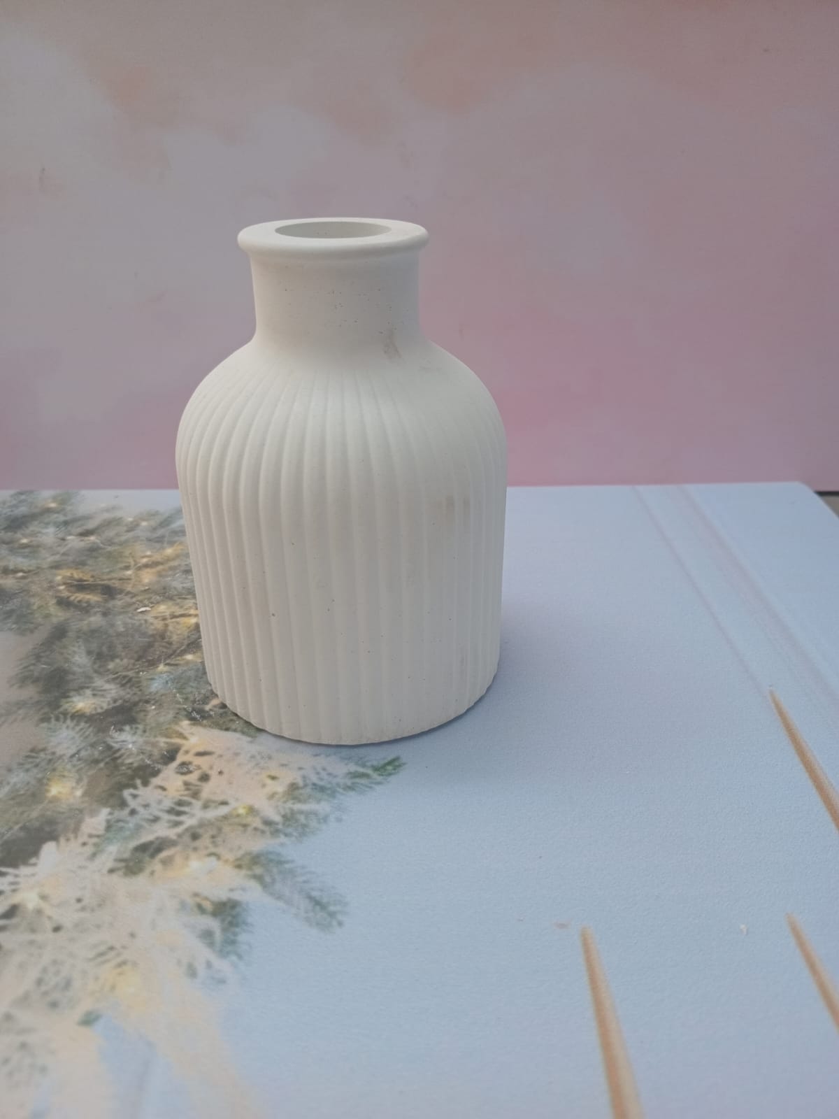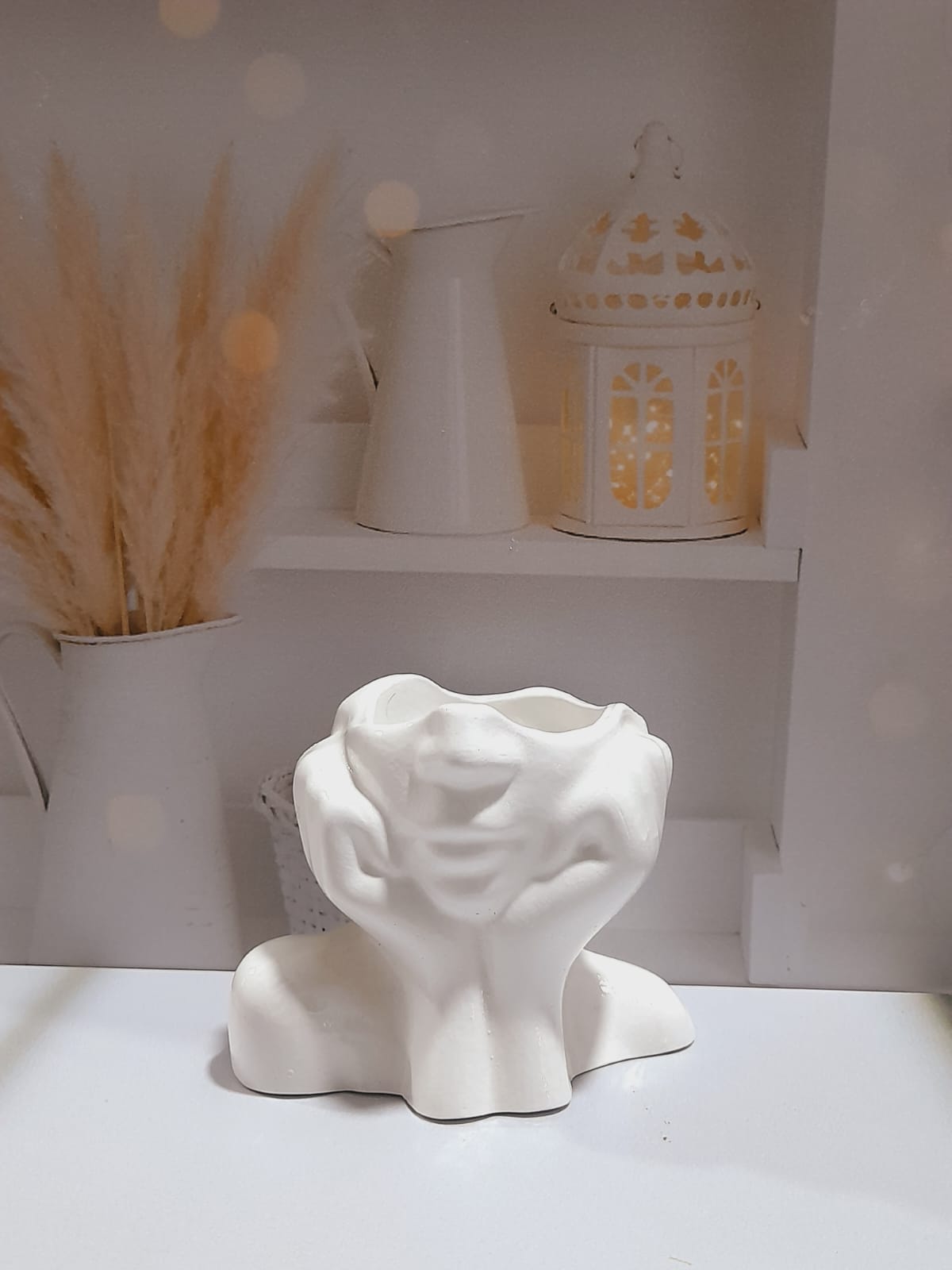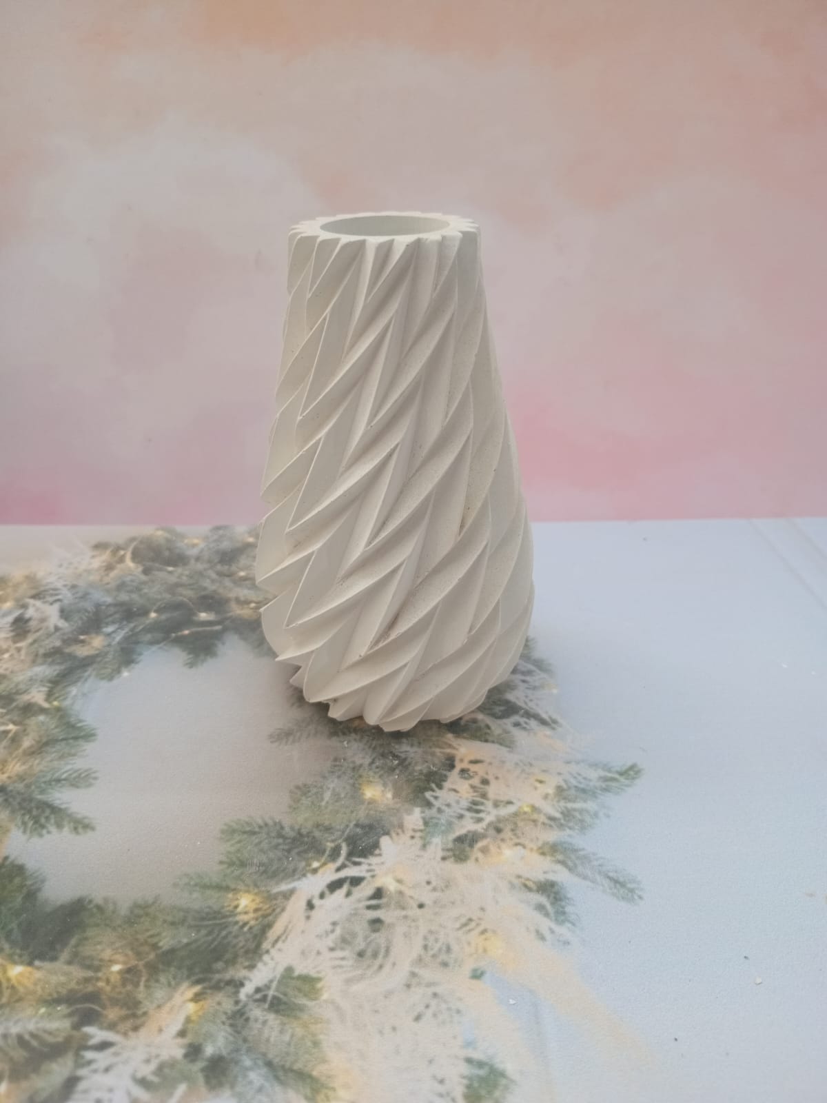 Florero 3D, material cemento blanco, altura 12cm, peso 500g
