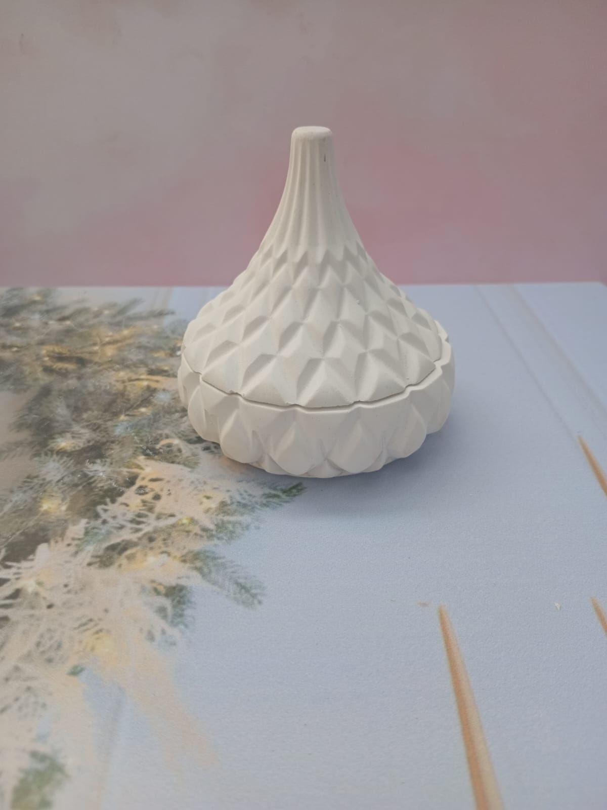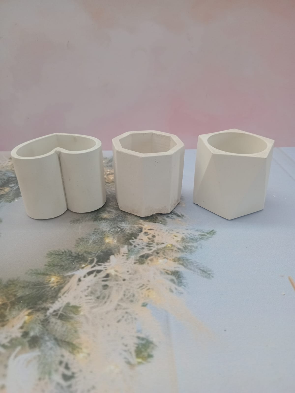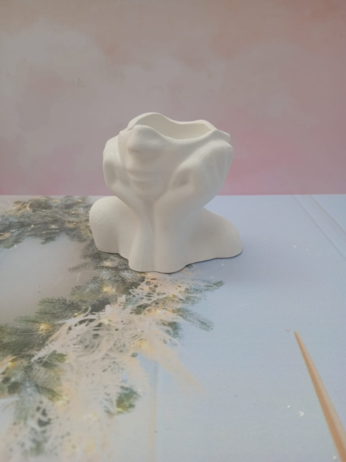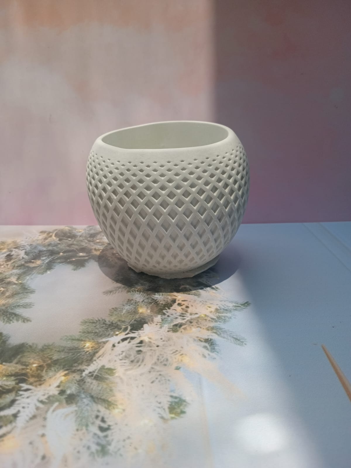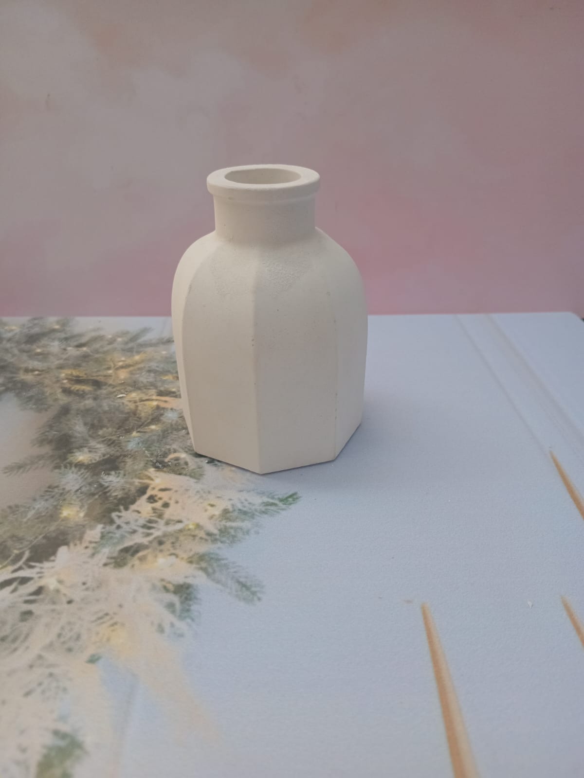 Florero 3D, material cemento blanco, altura 12cm, peso 500g