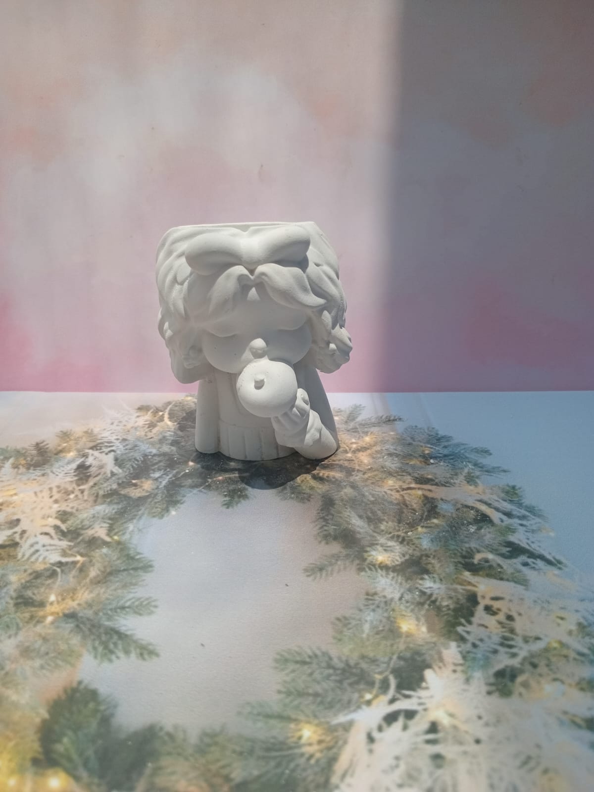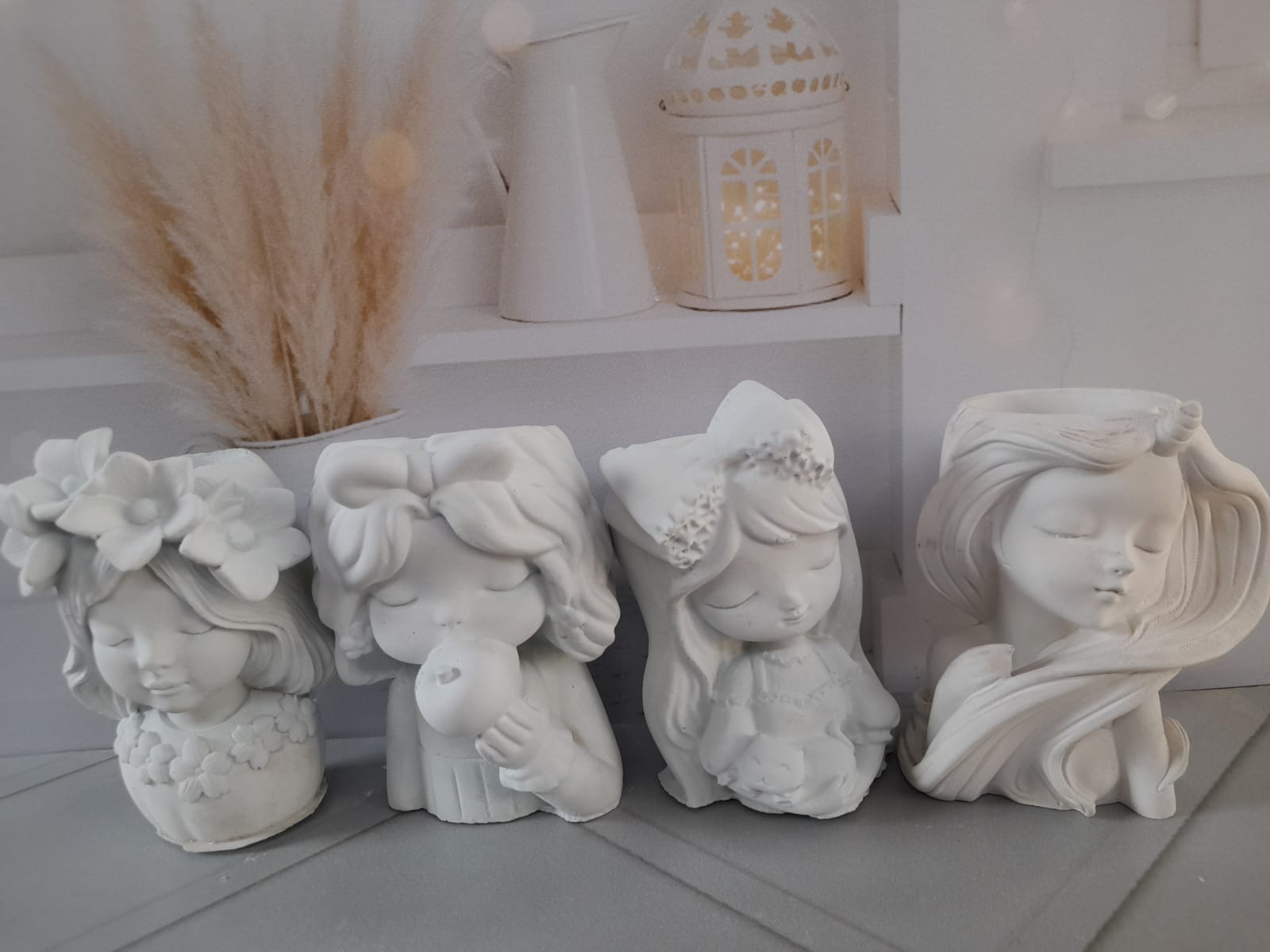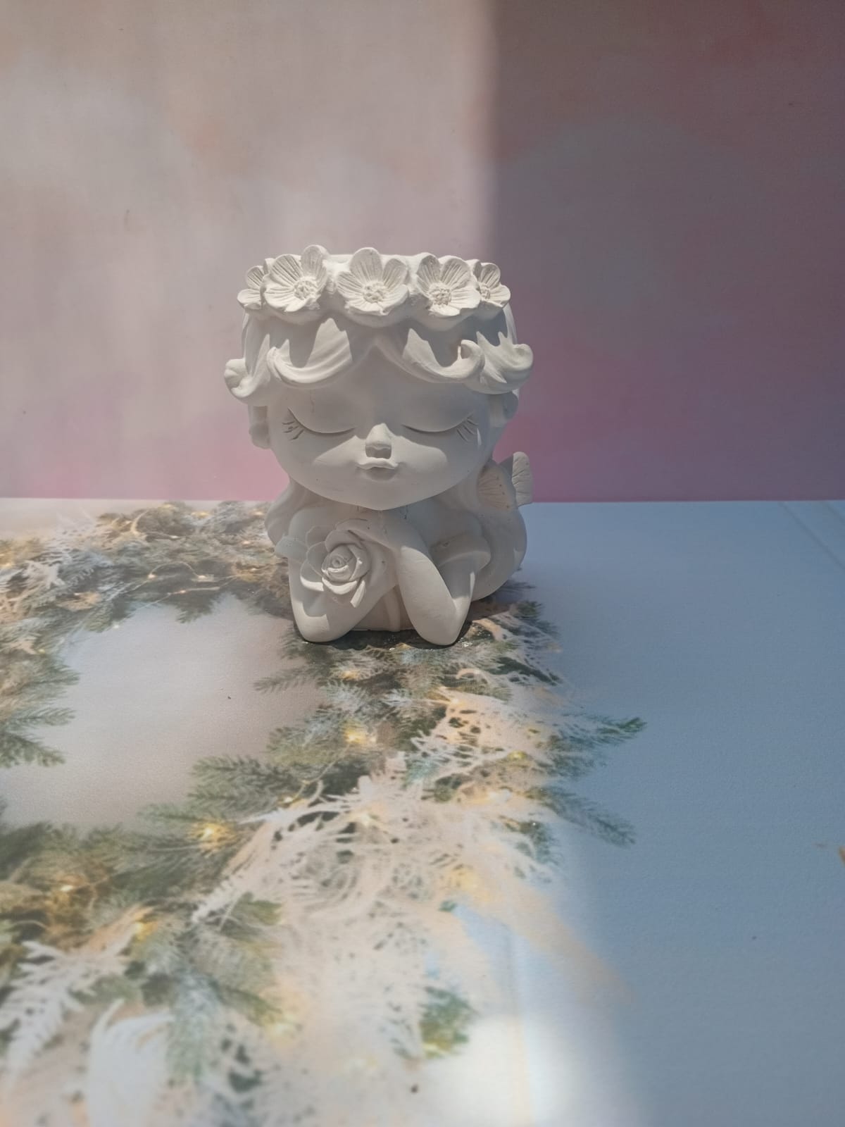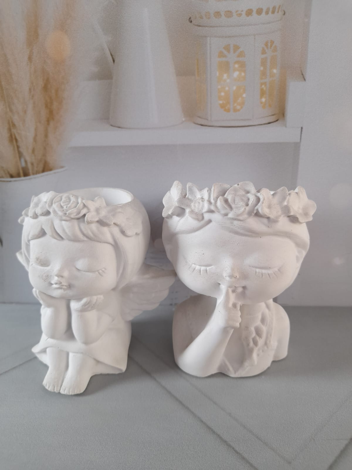Macetita Angelita, material cemento blanco, altura 9.5cm, peso 290g