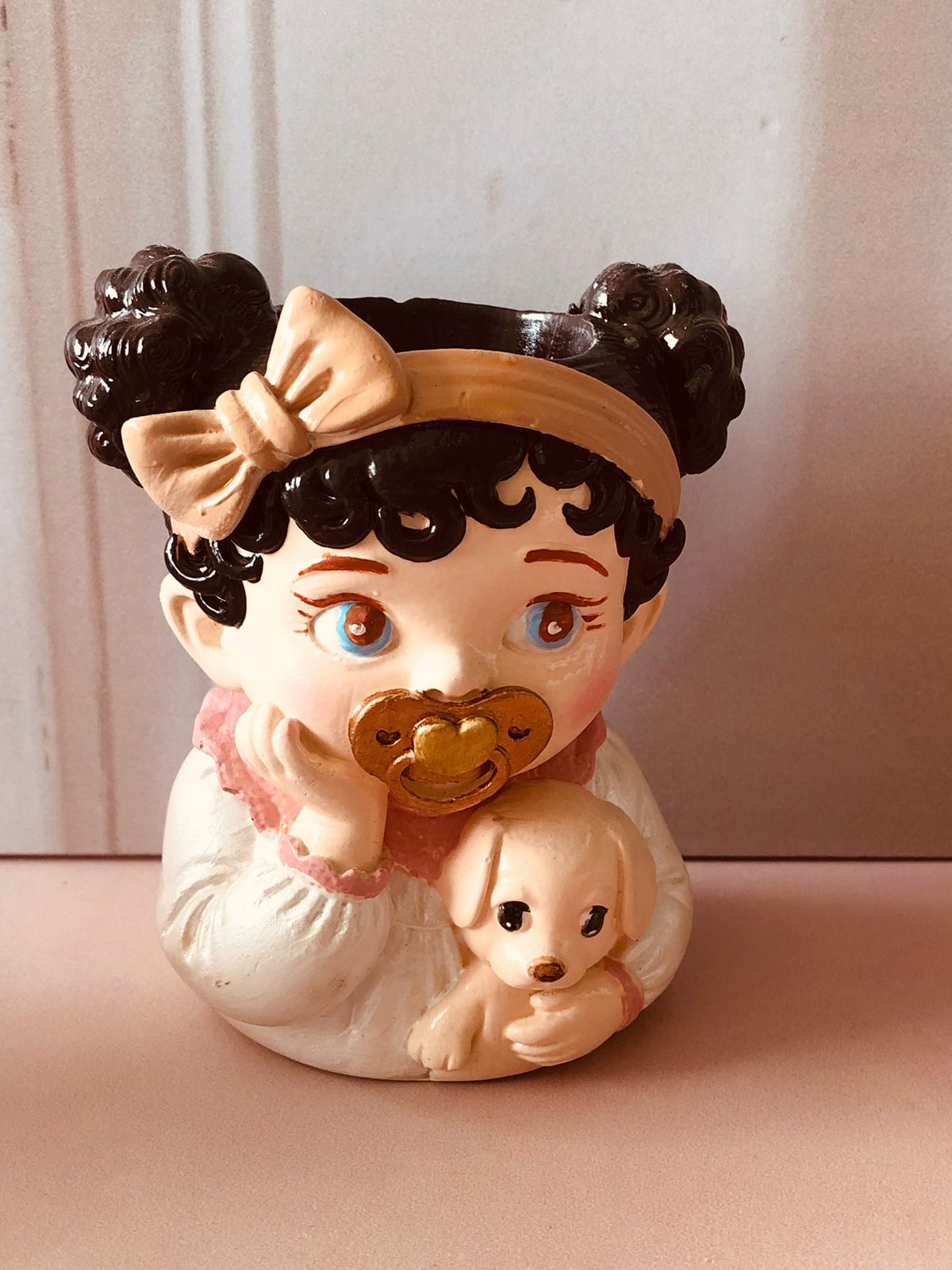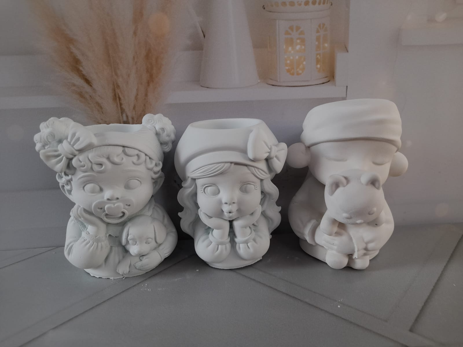 Maceta/Portalapicero Bebita, material cemento blanco, altura 10cm, peso 330g