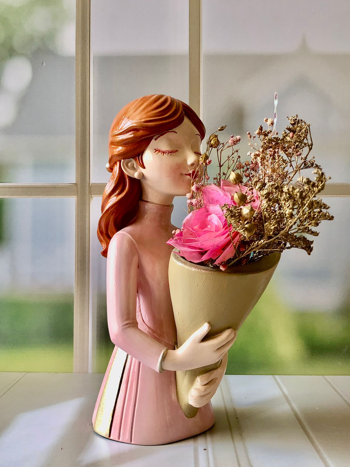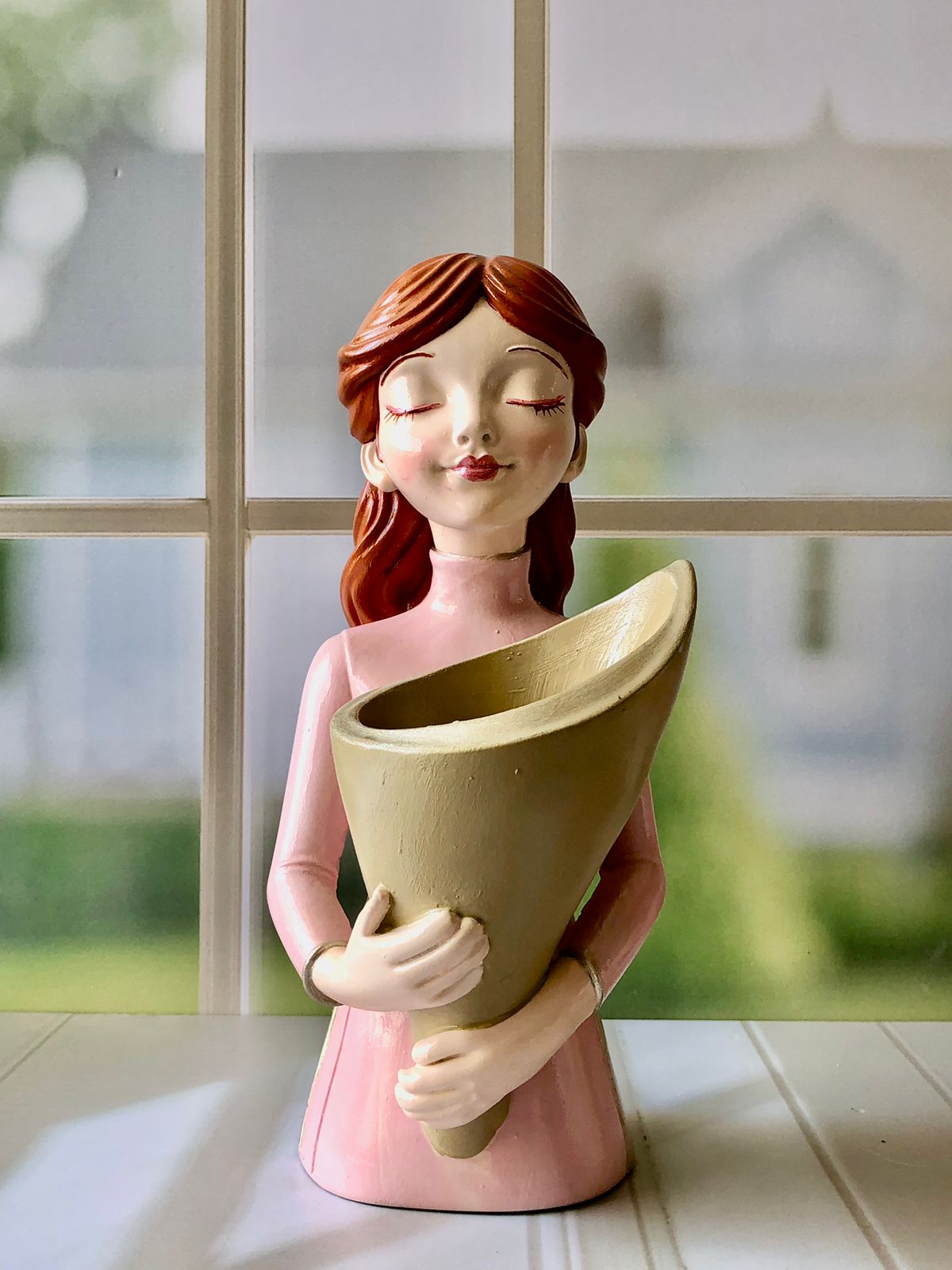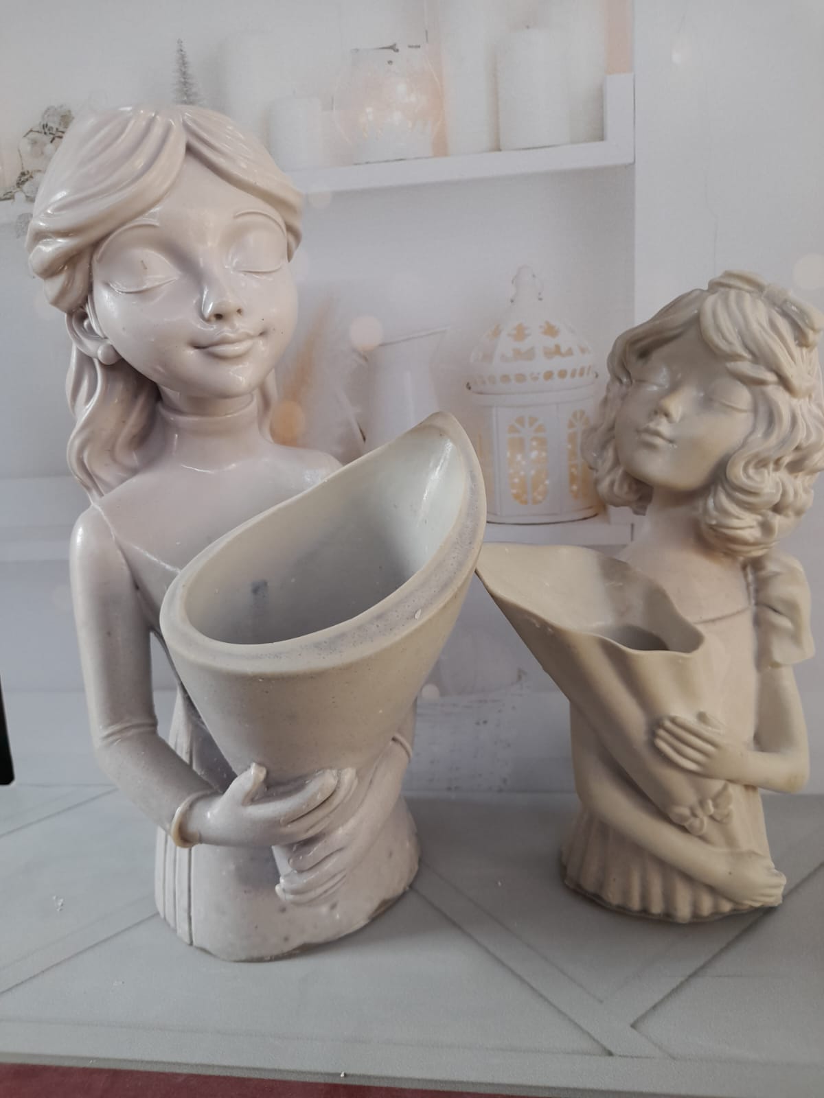 Florero Mujer, material cemento blanco, altura 9cm, peso 360g