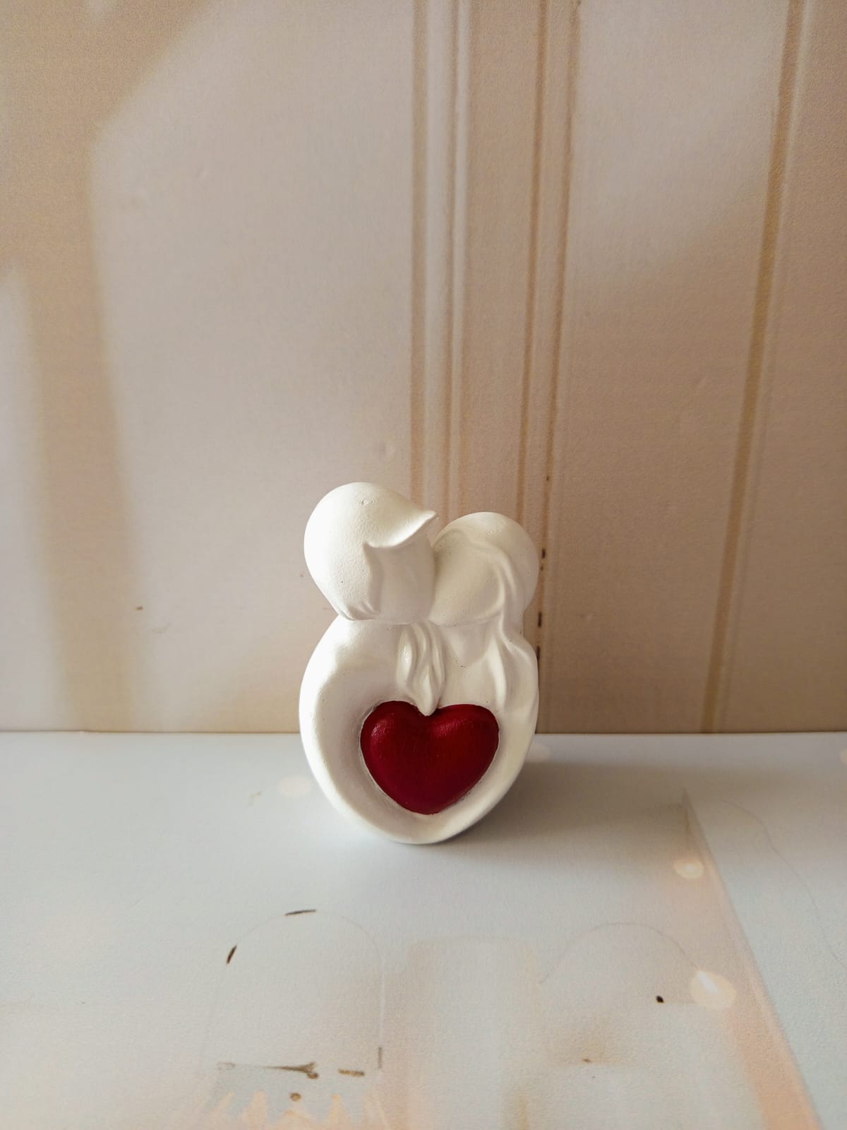 Figurita Parejita con corazon, material cemento blanco, altura 9cm, peso 180g