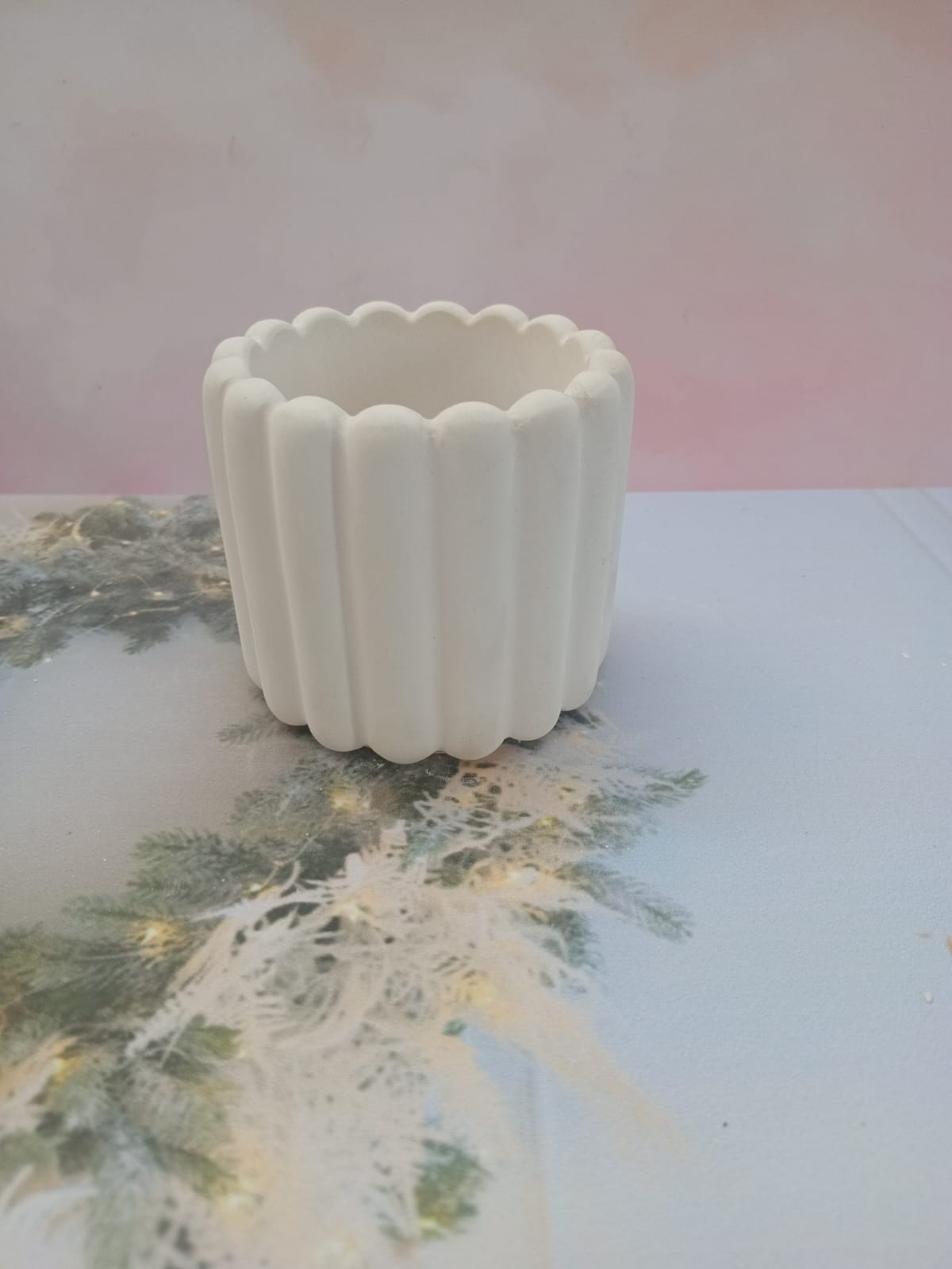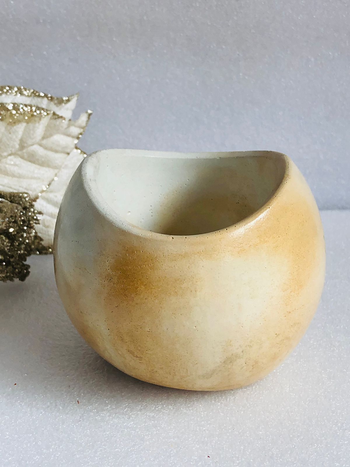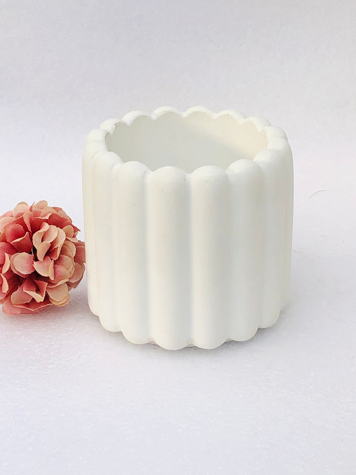 Macetita Concava, material cemento blanco, altura 7cm, peso 290g