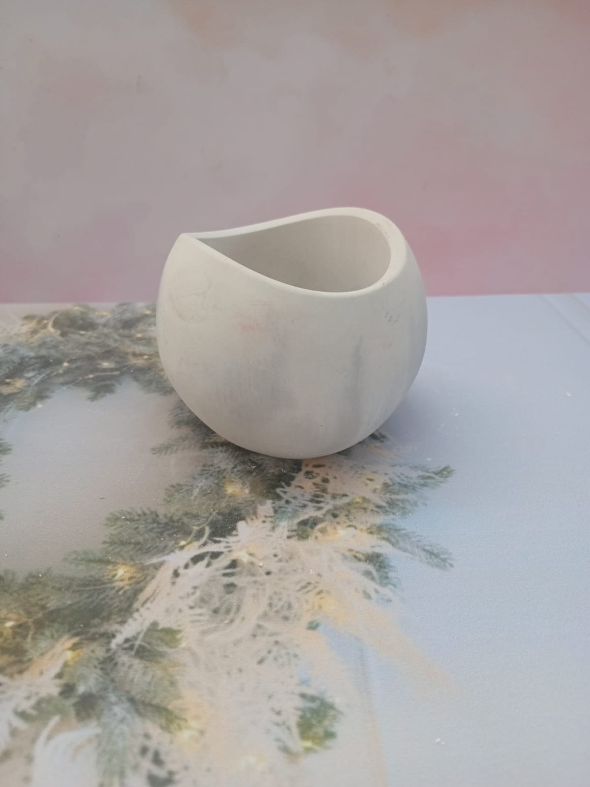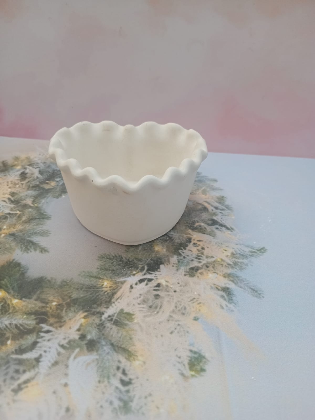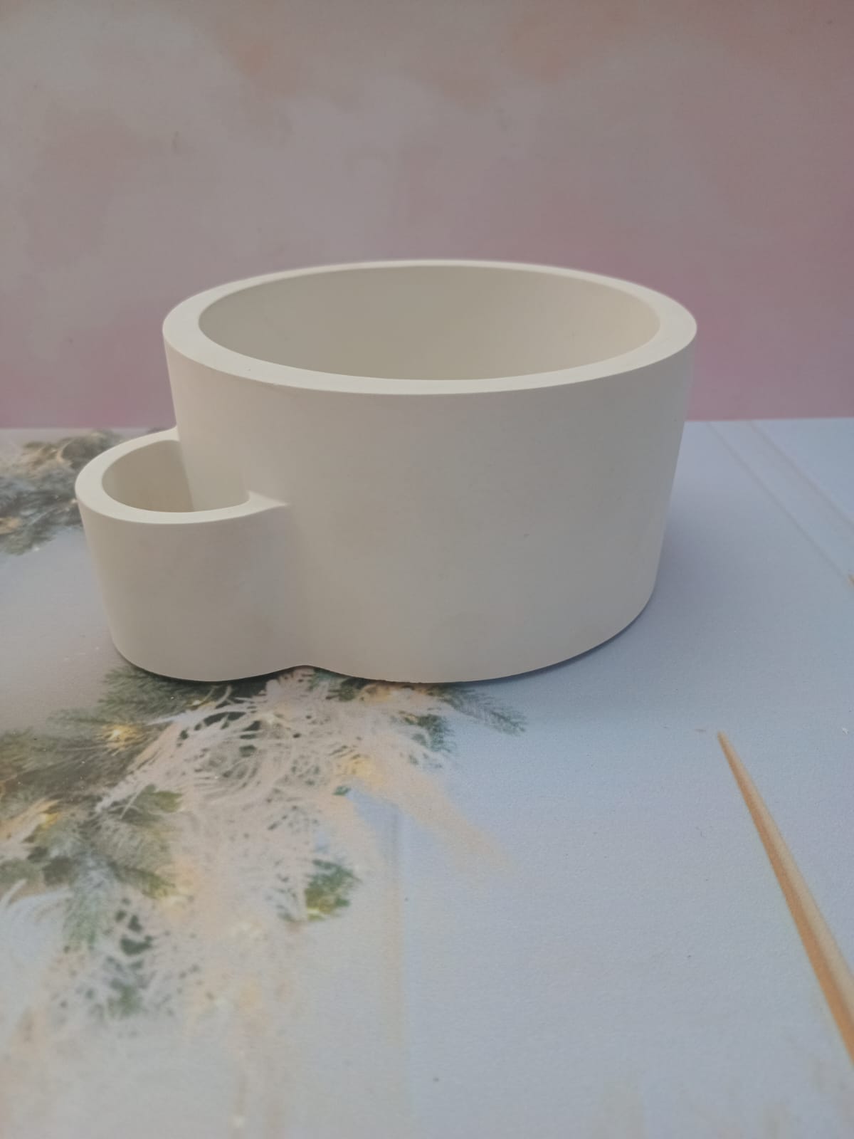Macetita Concava, material cemento blanco, altura 7cm, peso 290g