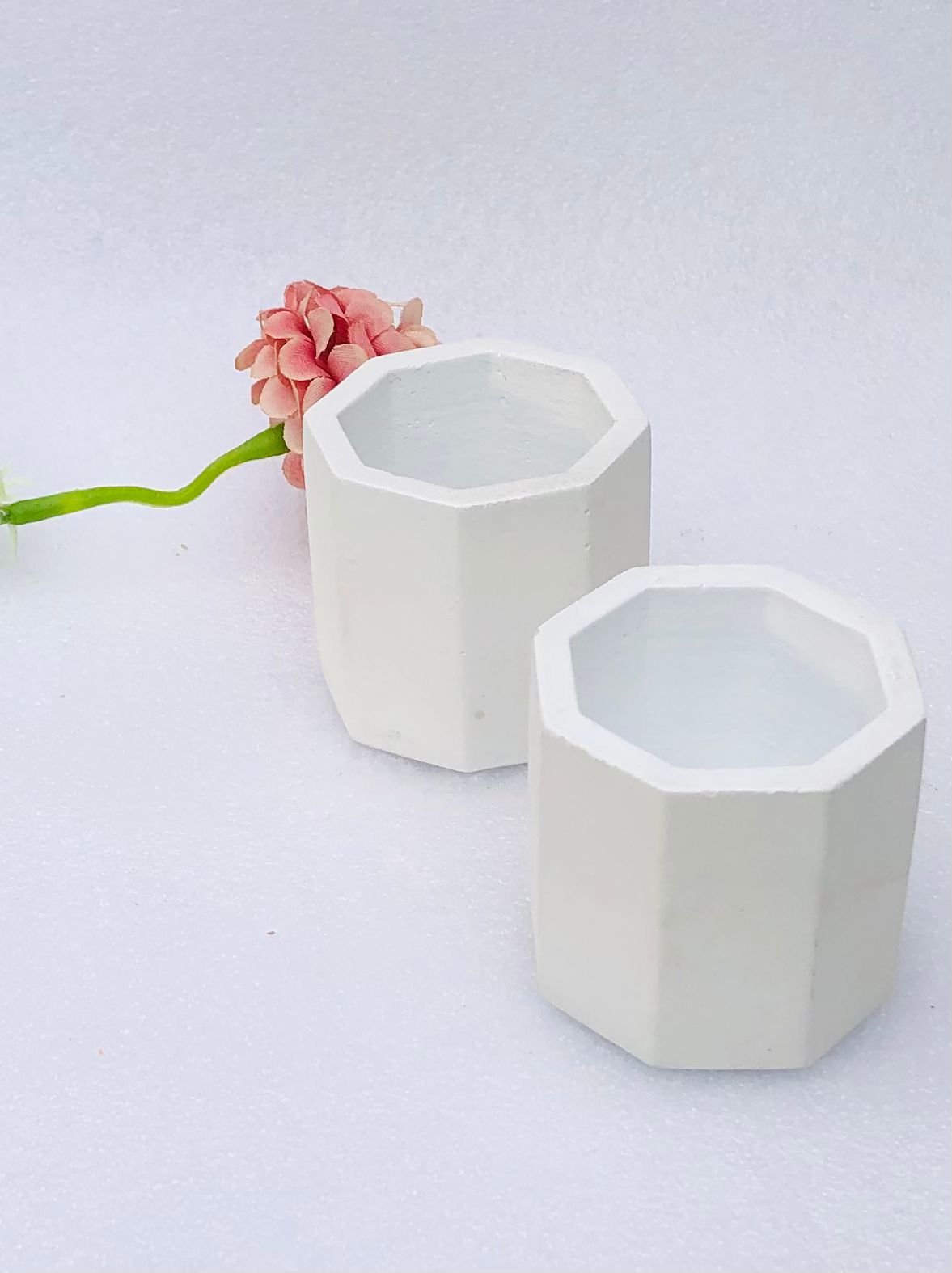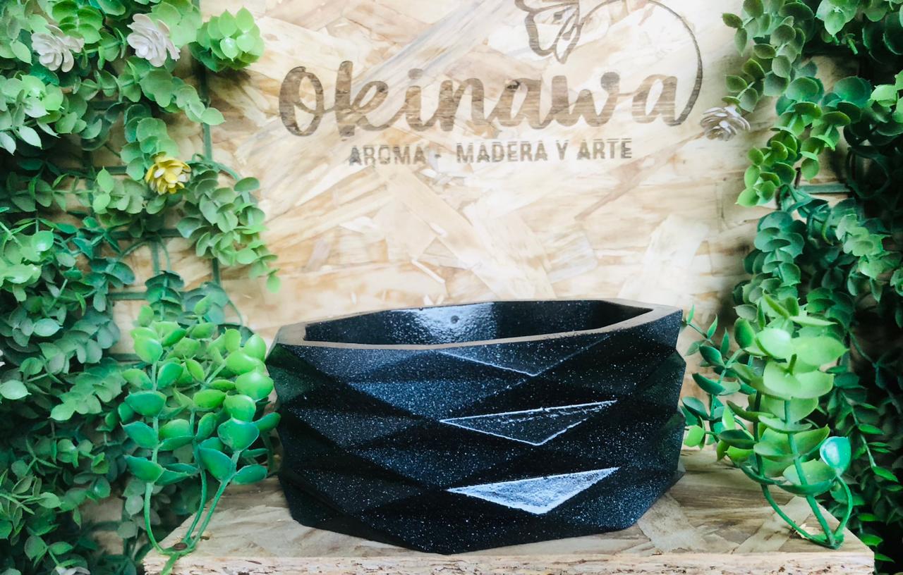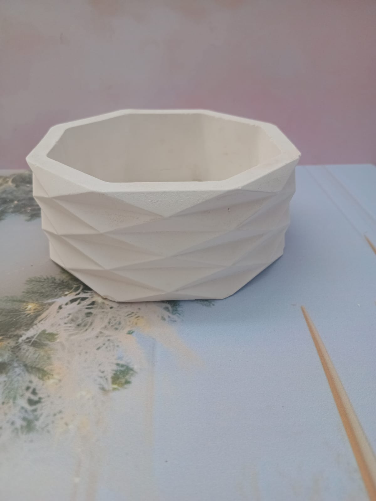 Maceta Octagonal, material cemento blanco, altura 6cm ancho 14cm, peso 590g