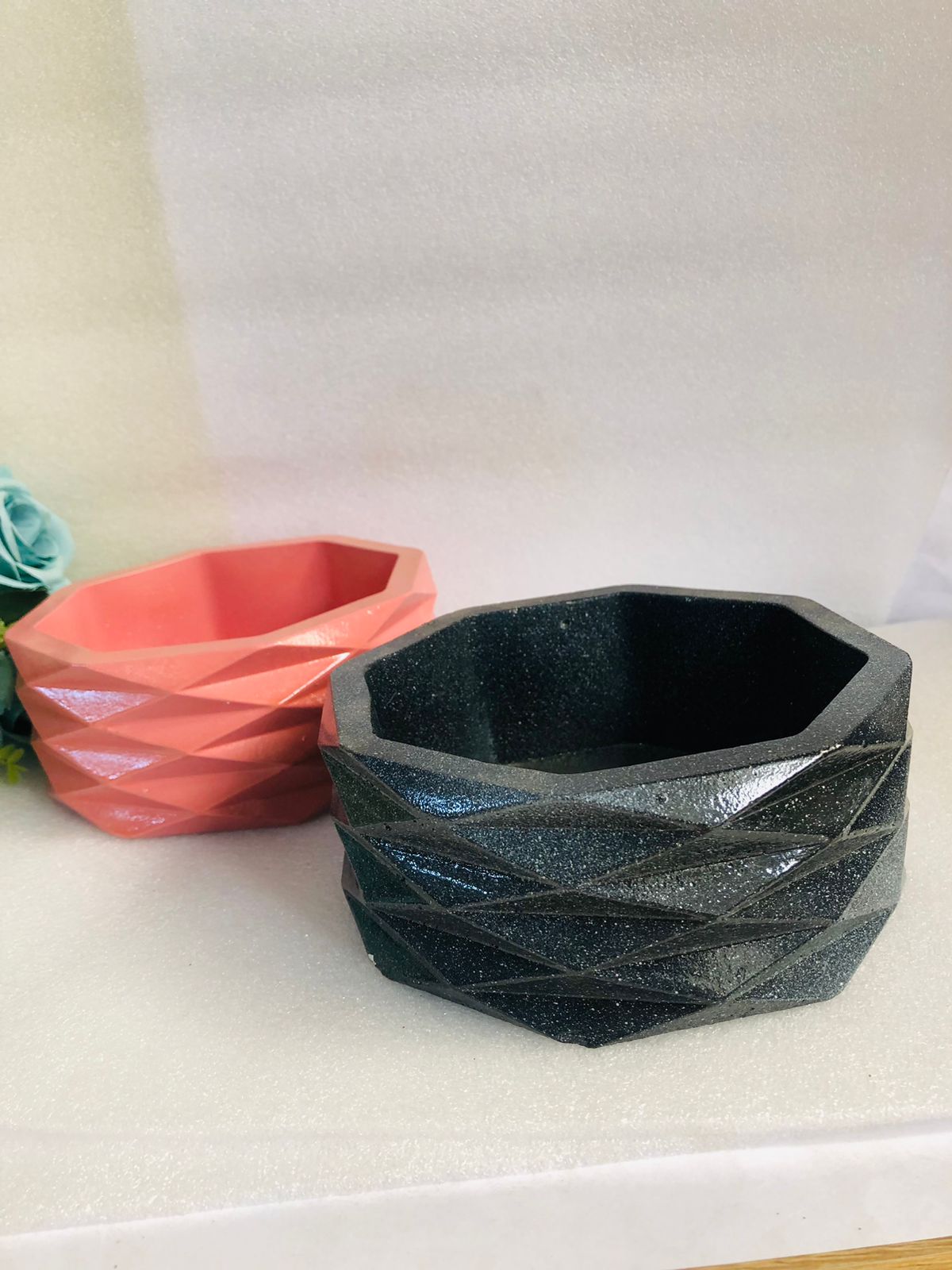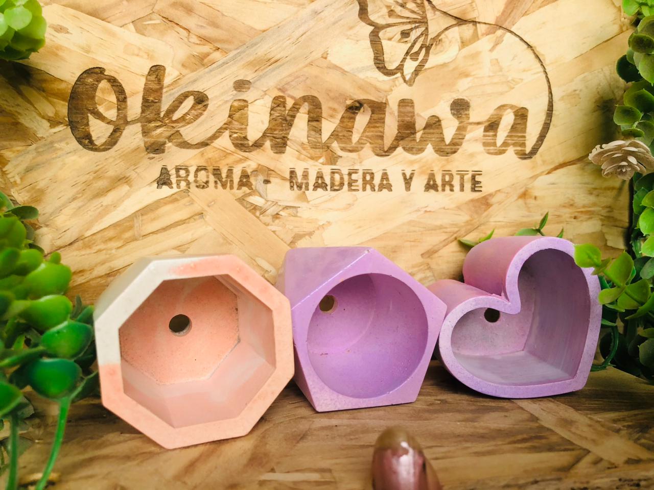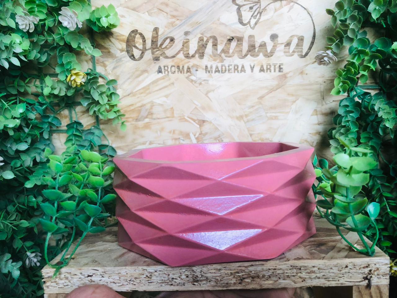 Maceta Octagonal, material cemento blanco, altura 6cm ancho 14cm, peso 590g
