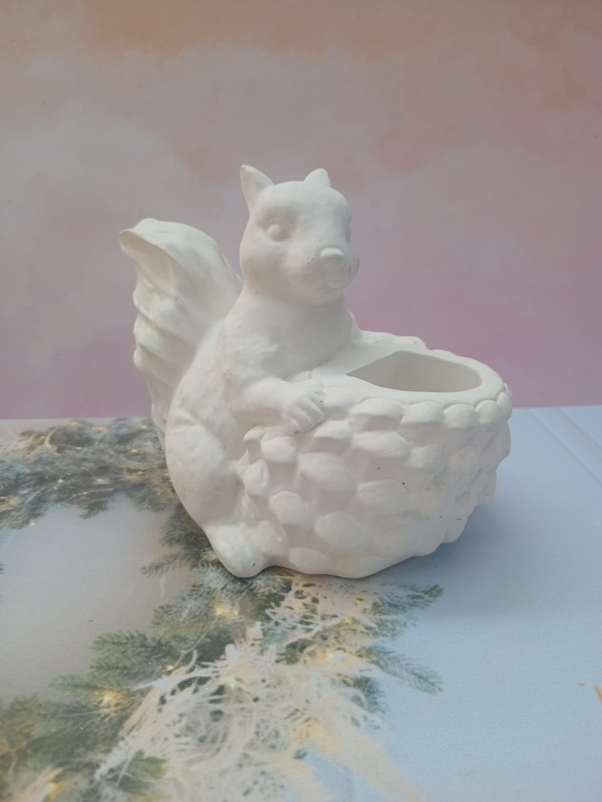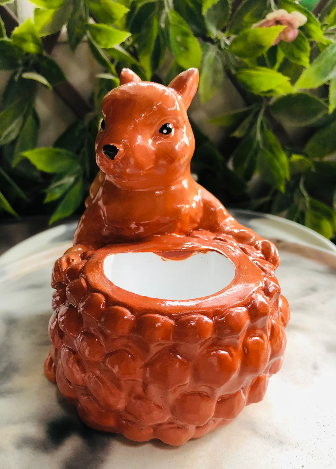 Maceta Ardilla, material cemento blanco, altura 12cm, peso 1170g