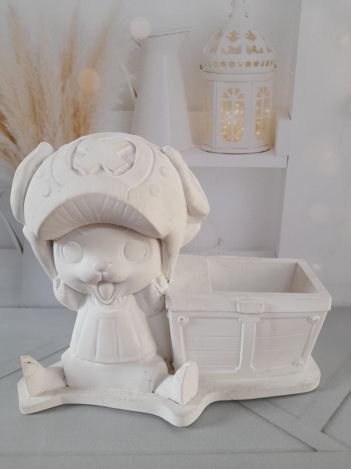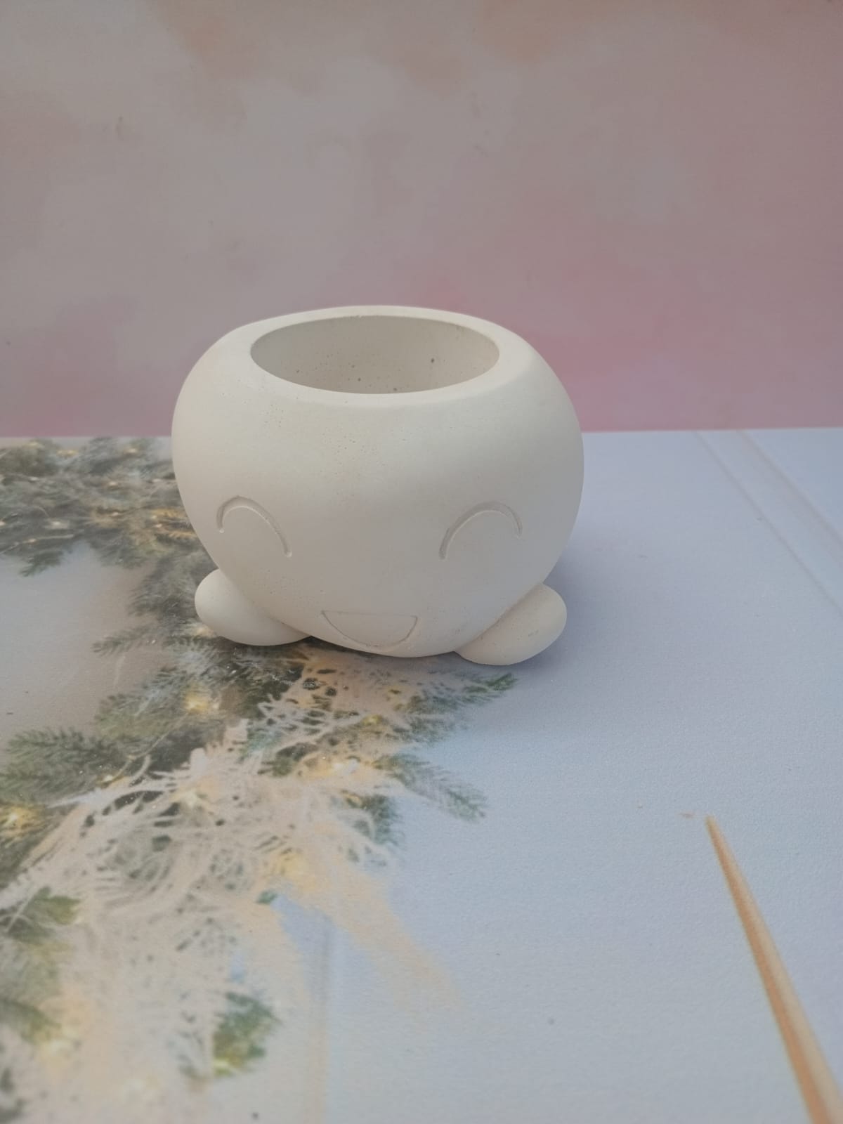 Macetita Sonadora, material cemento blanco, altura 10cm, peso 240g