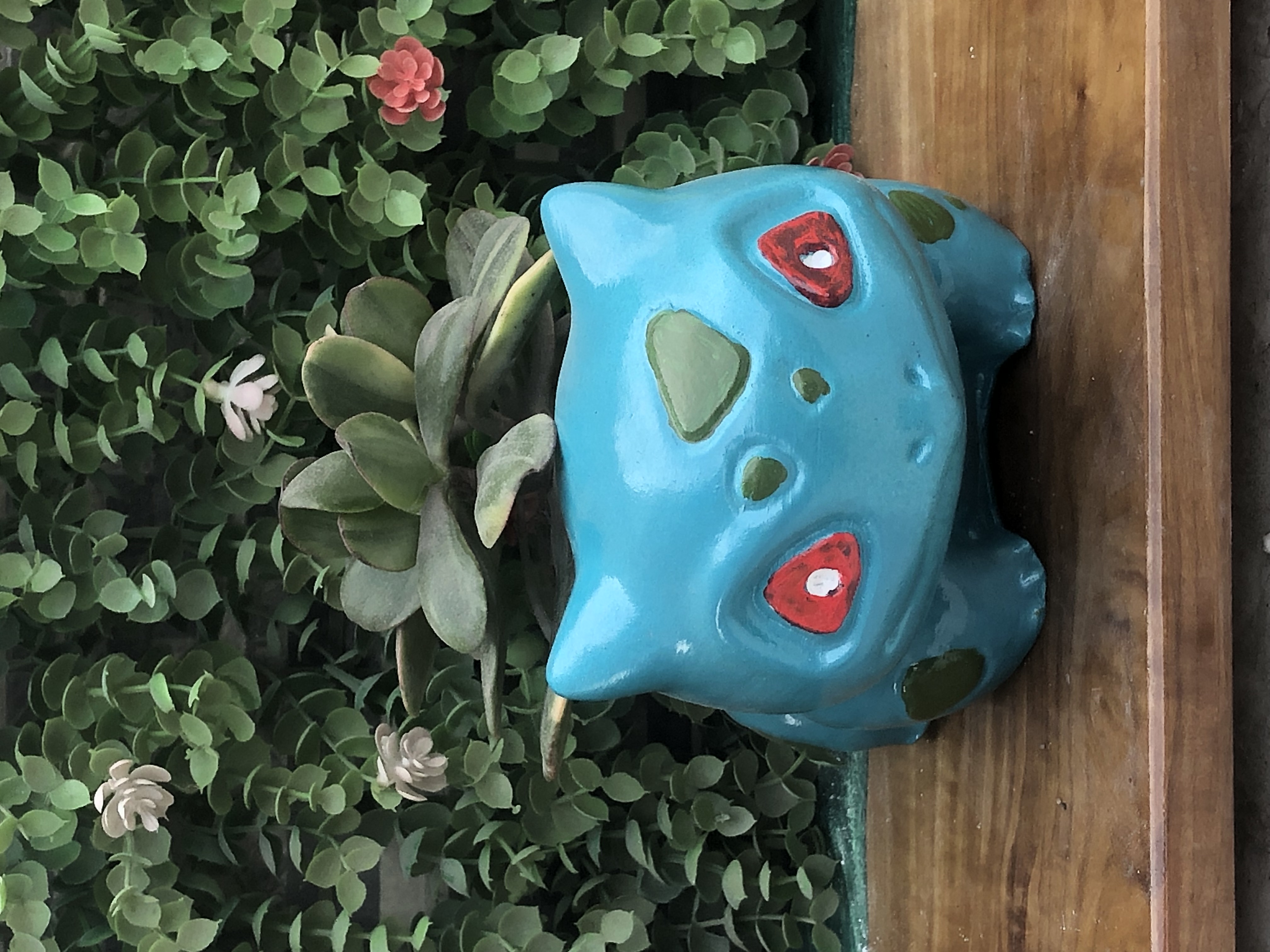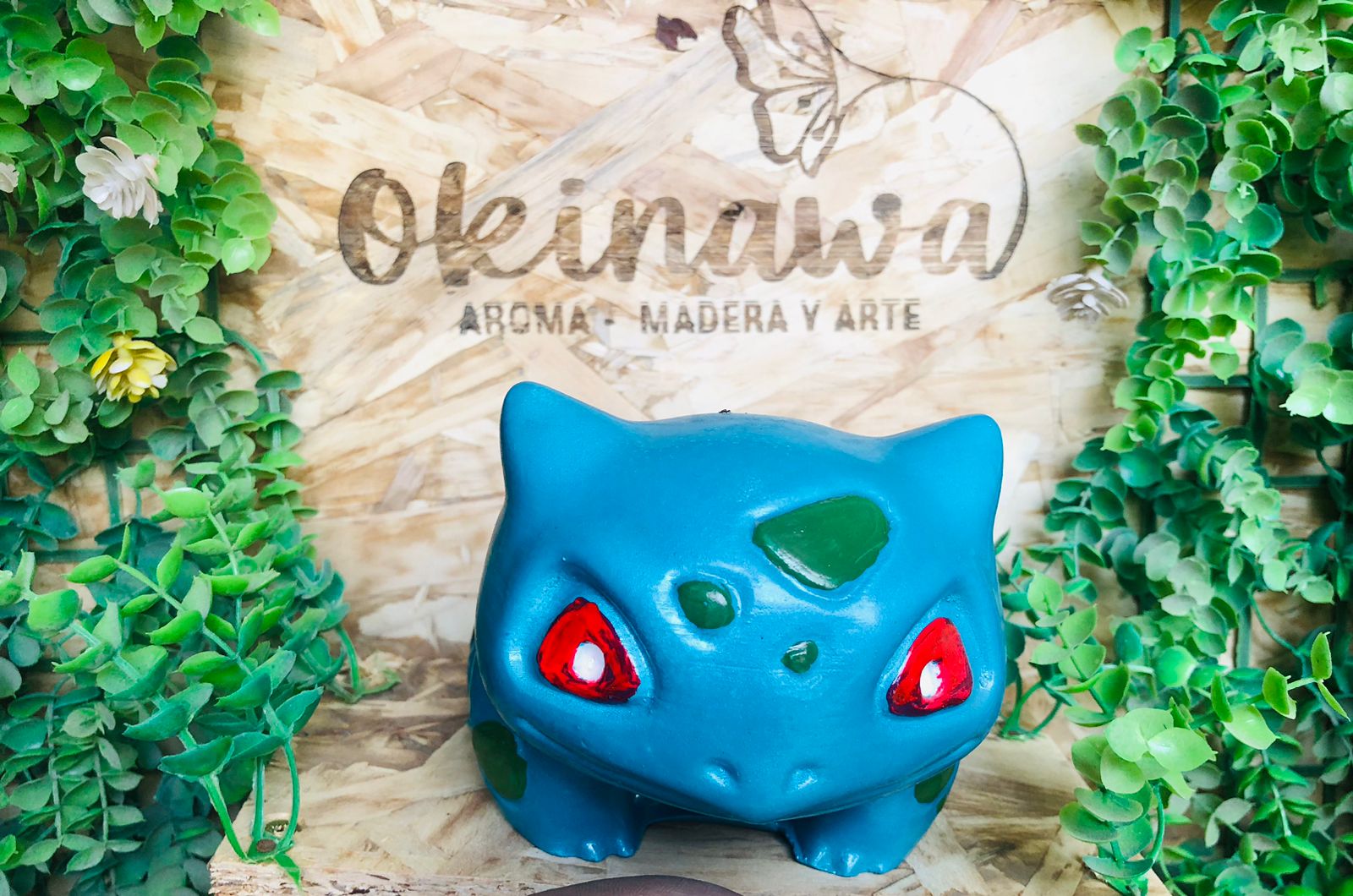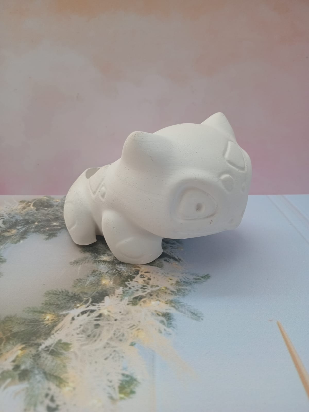 Maceta Bulbasaur, material cemento blanco, altura 9.5cm, peso 1050g