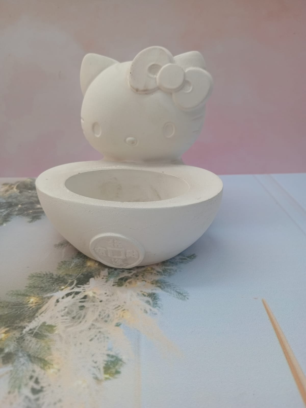 Maceta Hello Kitty, material cemento blanco, altura 12cm, peso 1250g