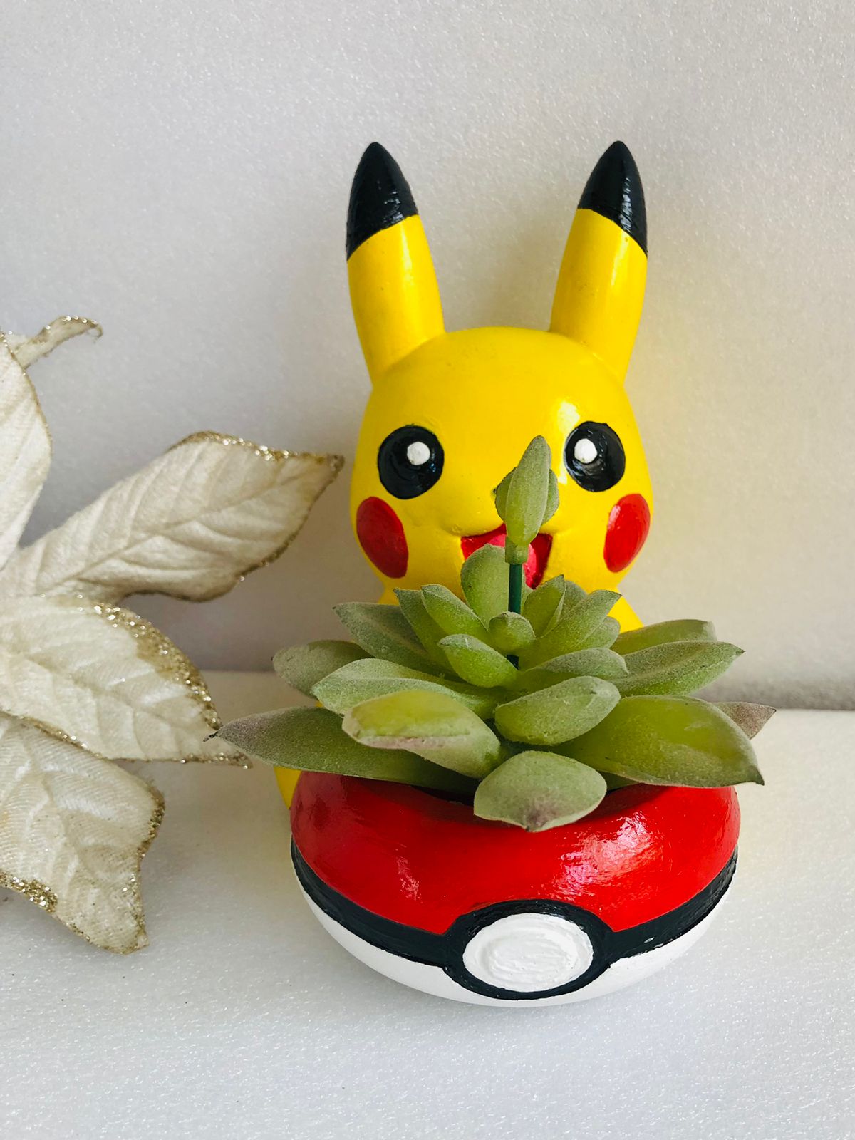 Maceta Pikachu, material cemento blanco, altura 15cm, peso 1230g