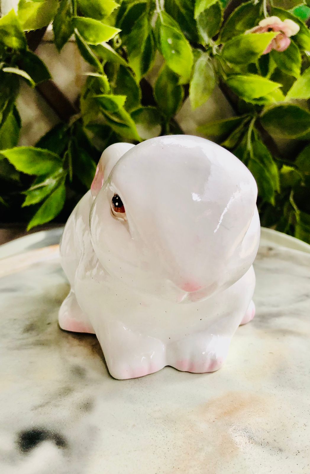 Maceta Conejo Realistico, material cemento blanco, altura 9cm, peso 900g