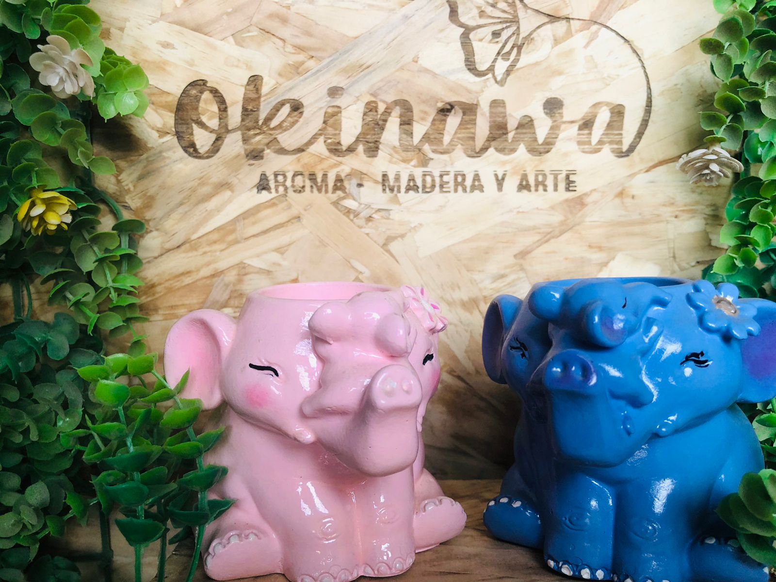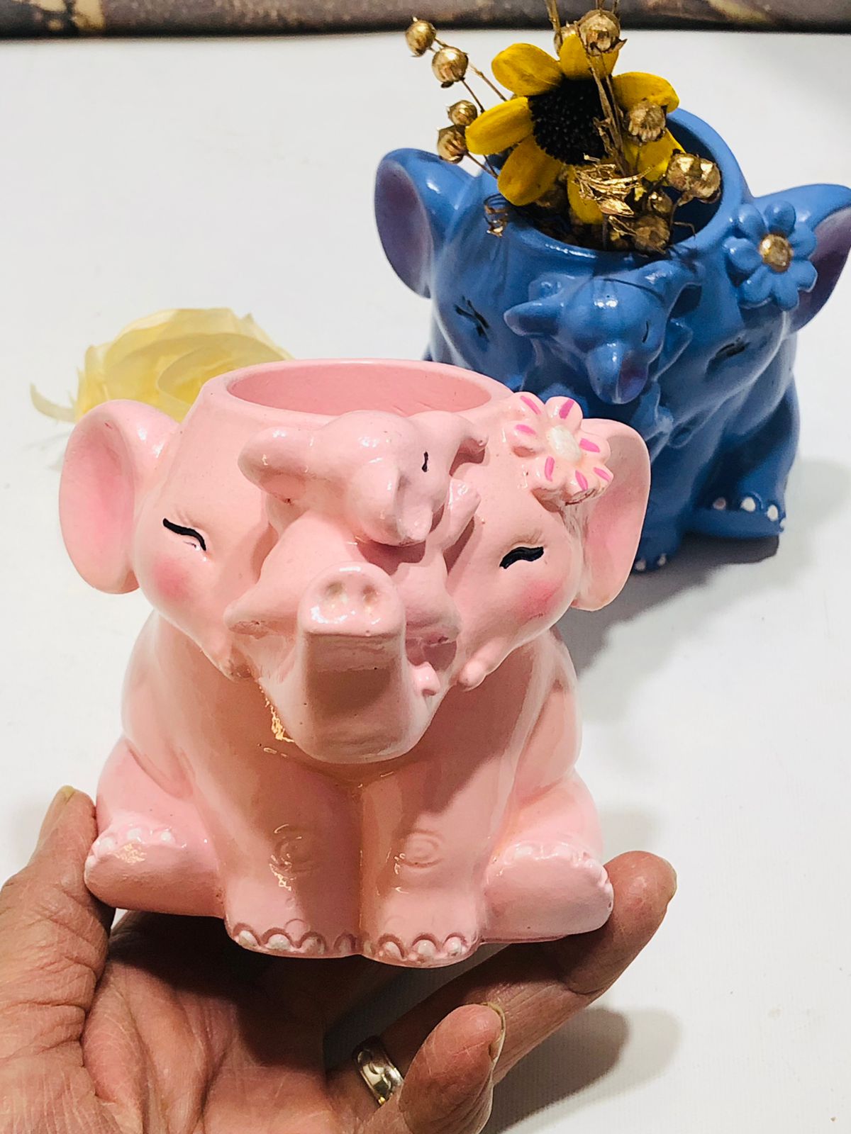 Maceta Mama Elefanta, material cemento blanco, altura 9cm, peso 560g