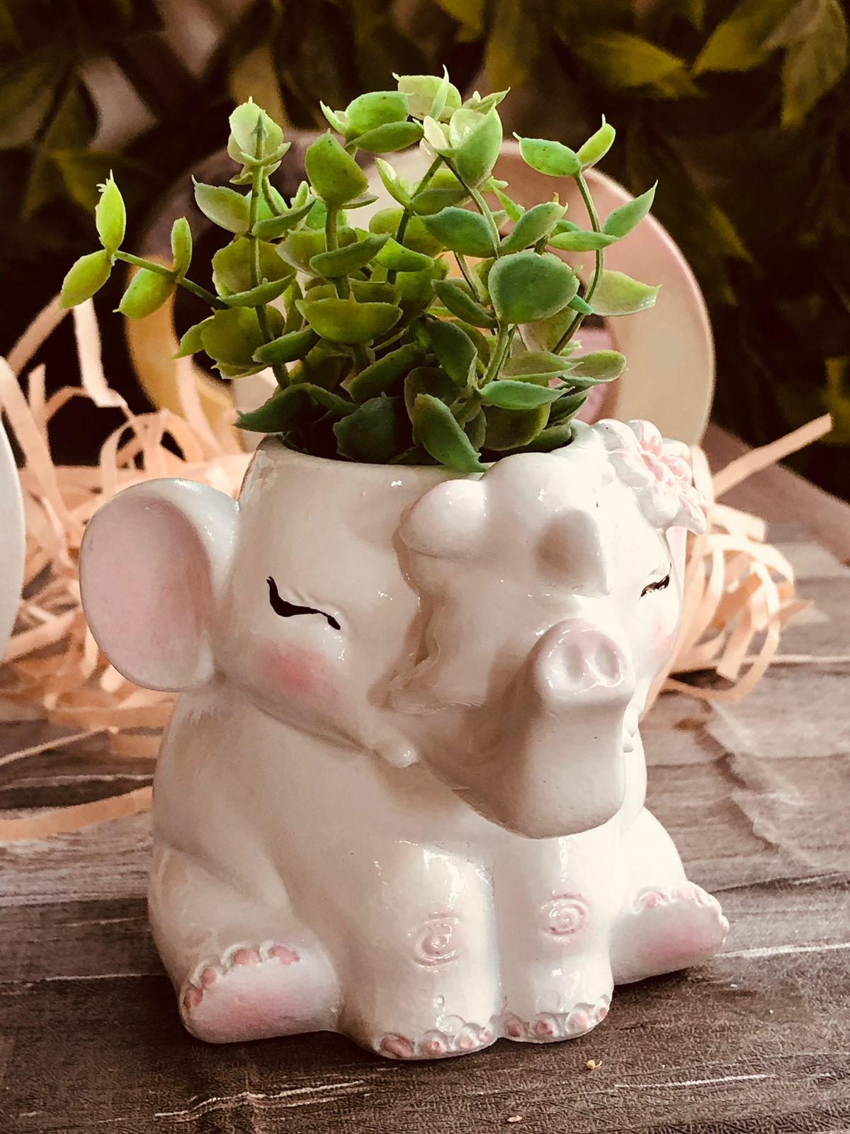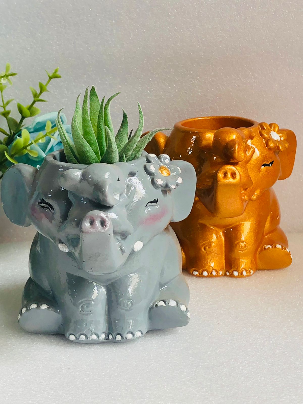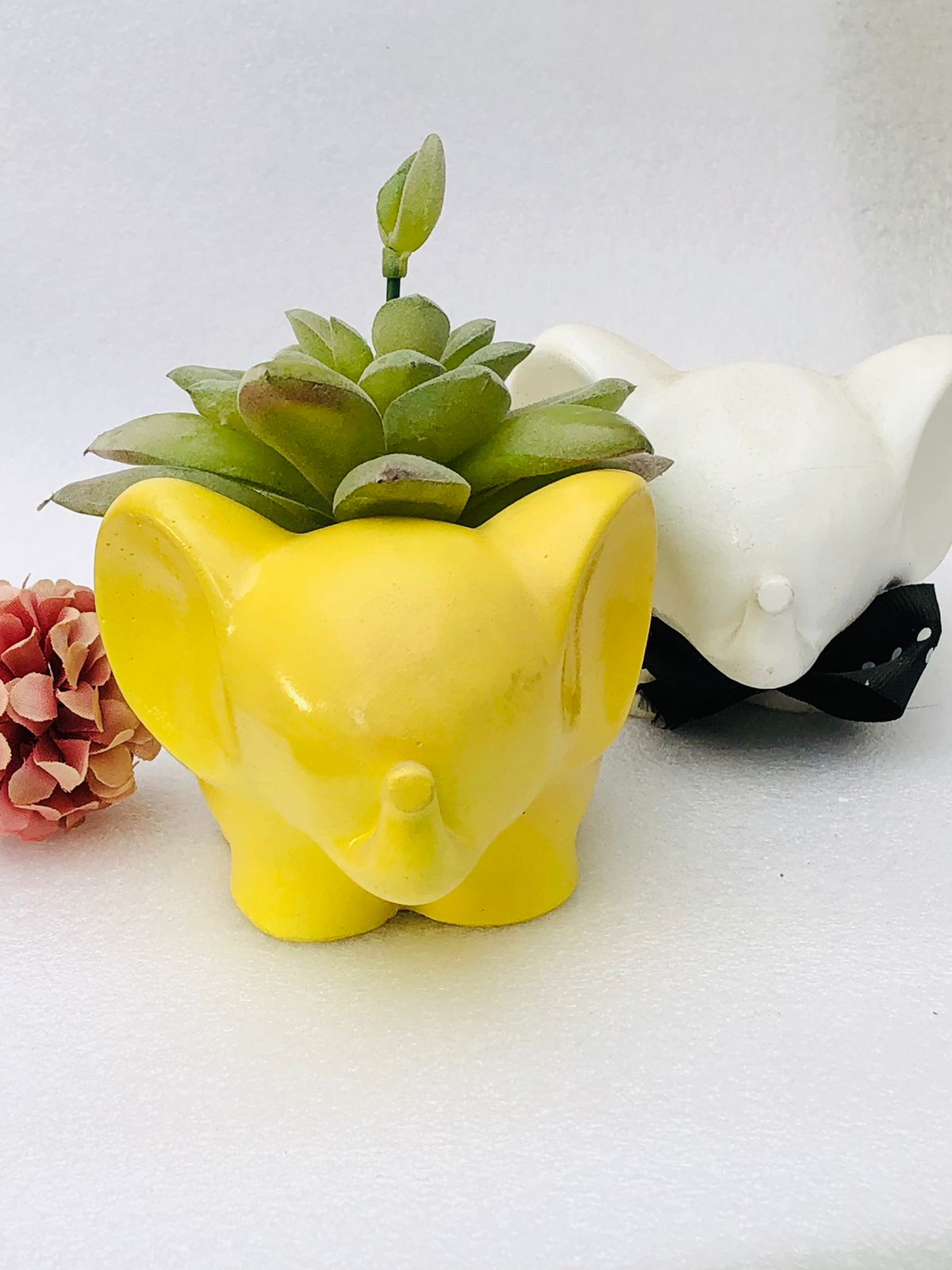 Macetita Elefante Classico, material cemento blanco, altura 8cm, peso 380g