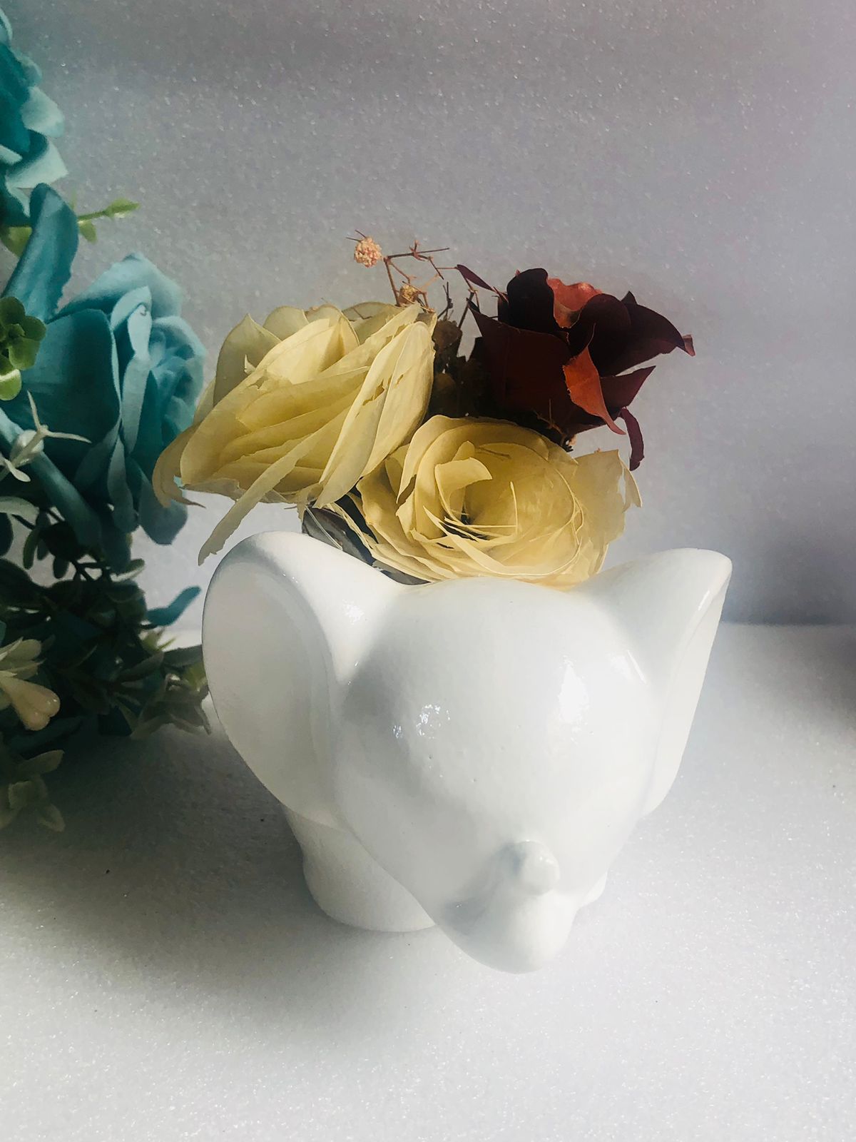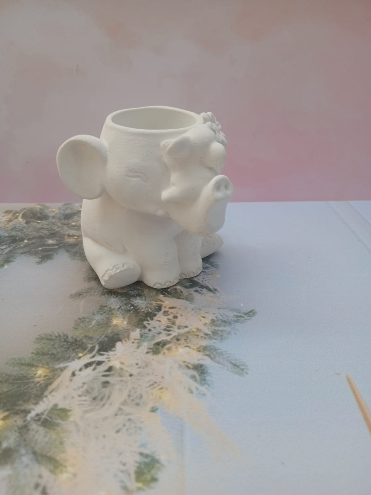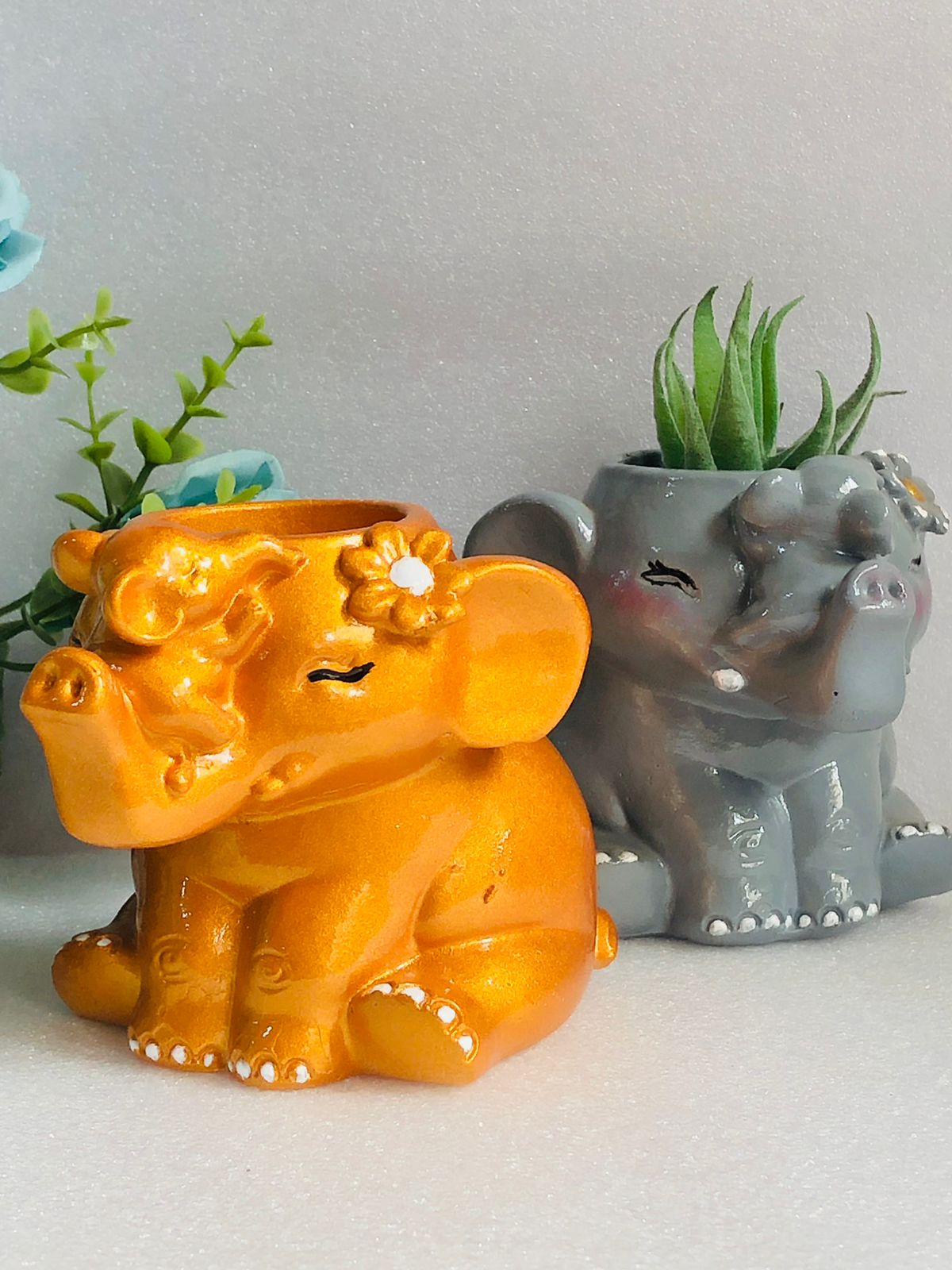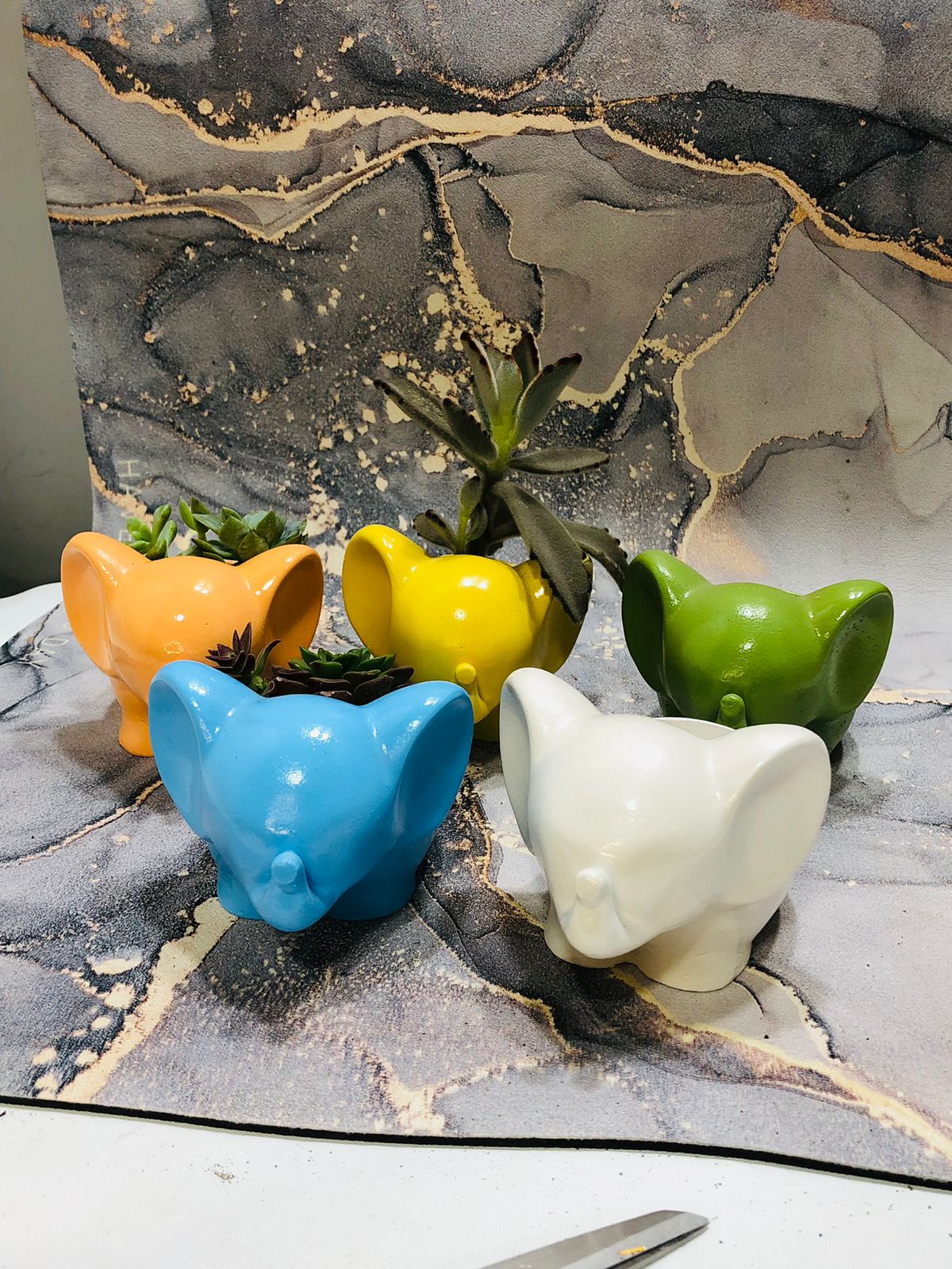 Macetita Elefante Classico, material cemento blanco, altura 8cm, peso 380g