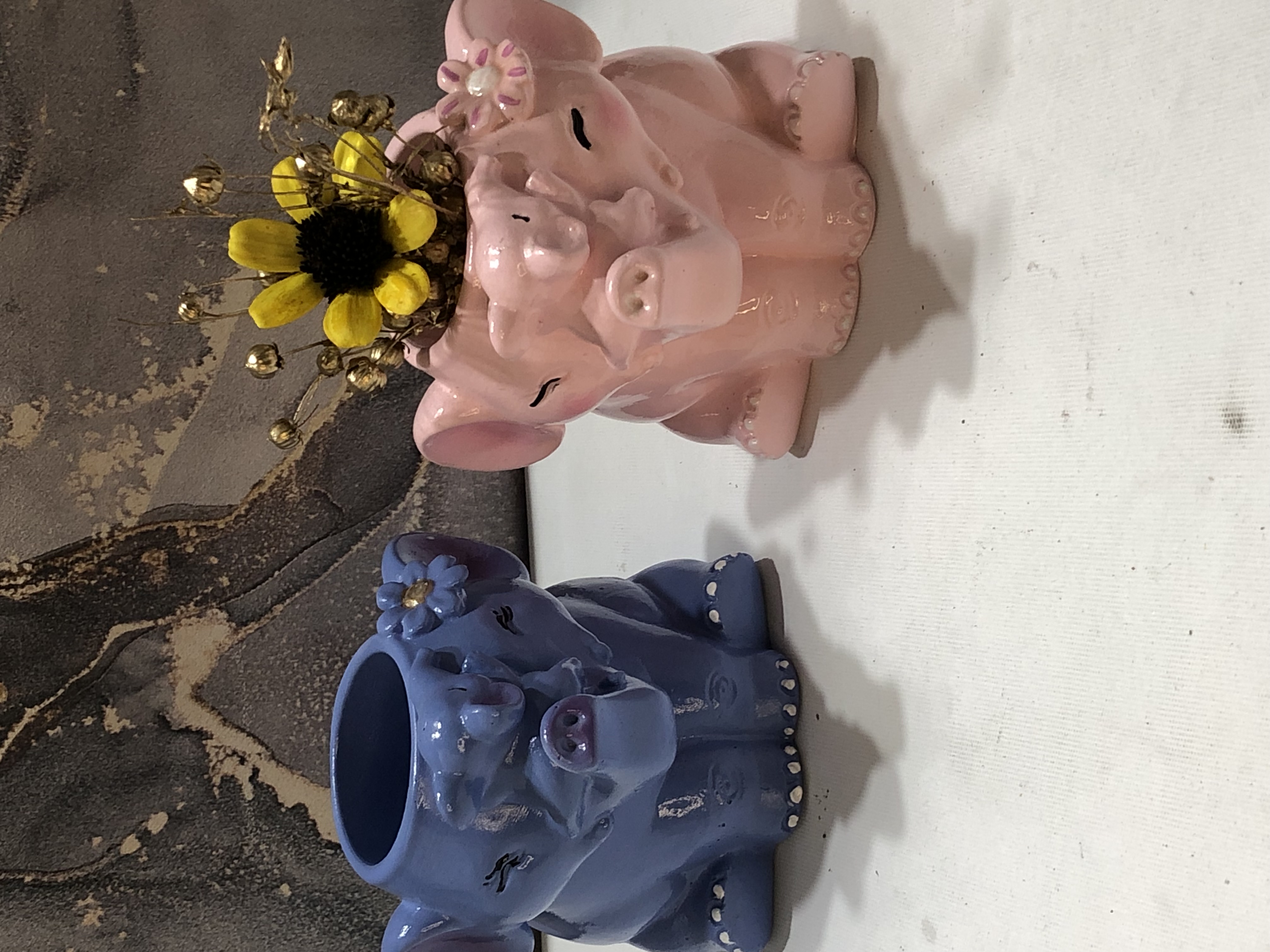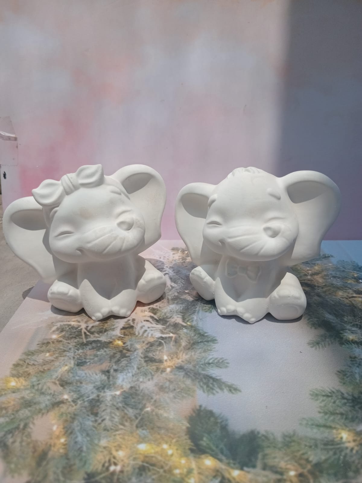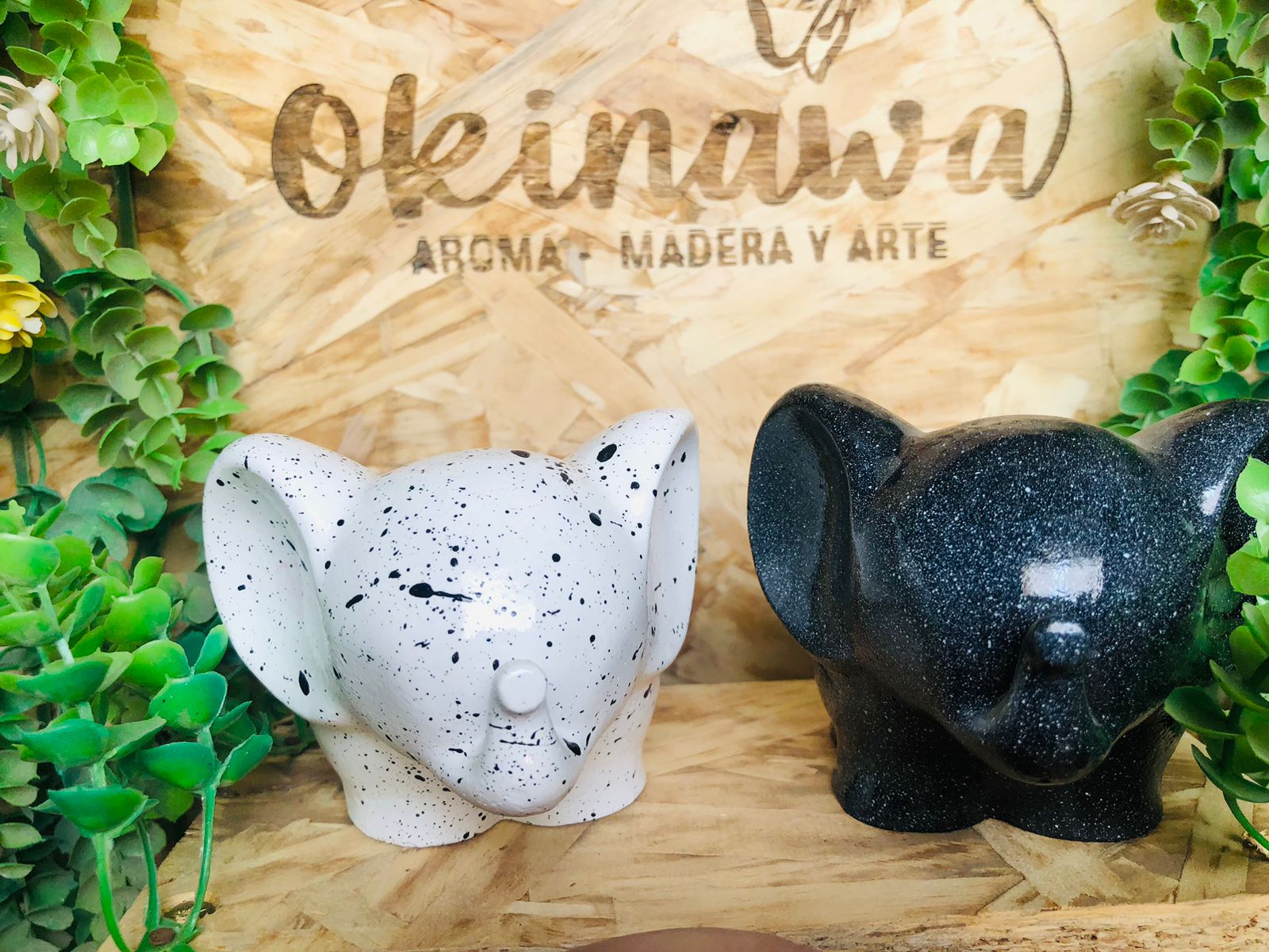 Figuritas Parejitas Elefantes, material cemento blanco, altura 8cm, peso 640g