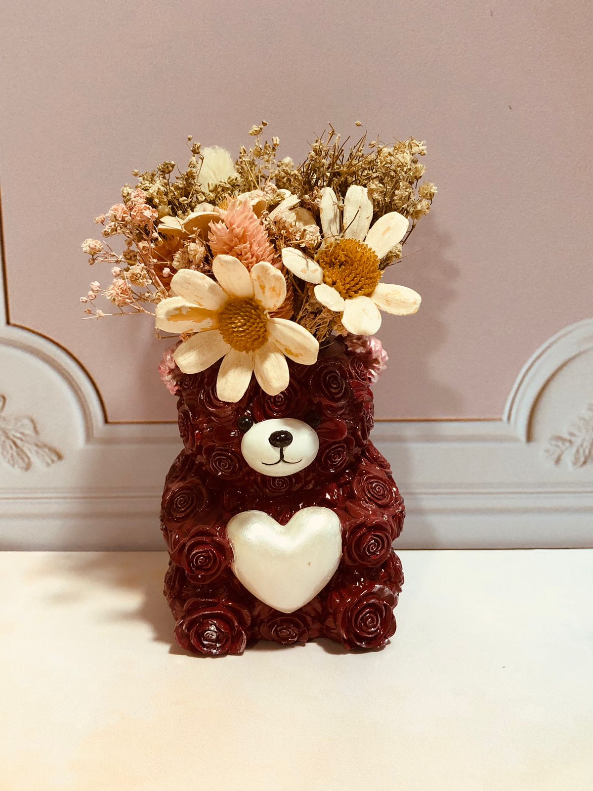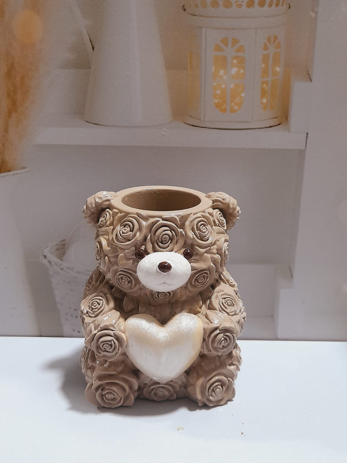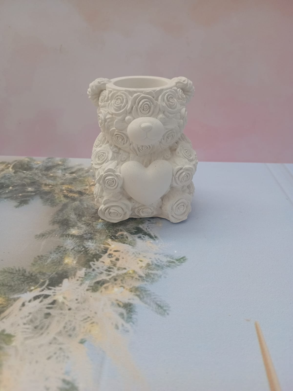 Florero Oso, material cemento blanco, altura 9cm, peso 350g