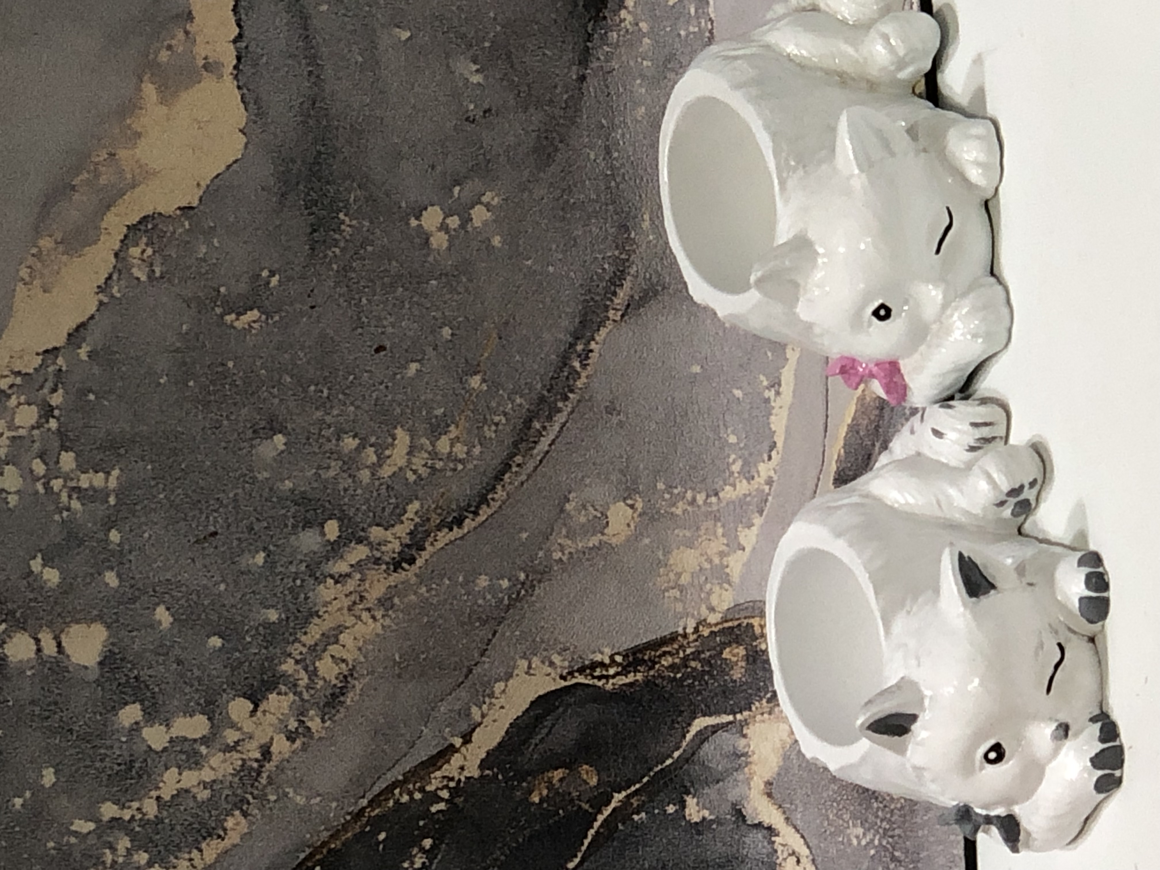 Maceta/Portalapicero Gata, material cemento blanco, altura 14.5cm, peso 1370g