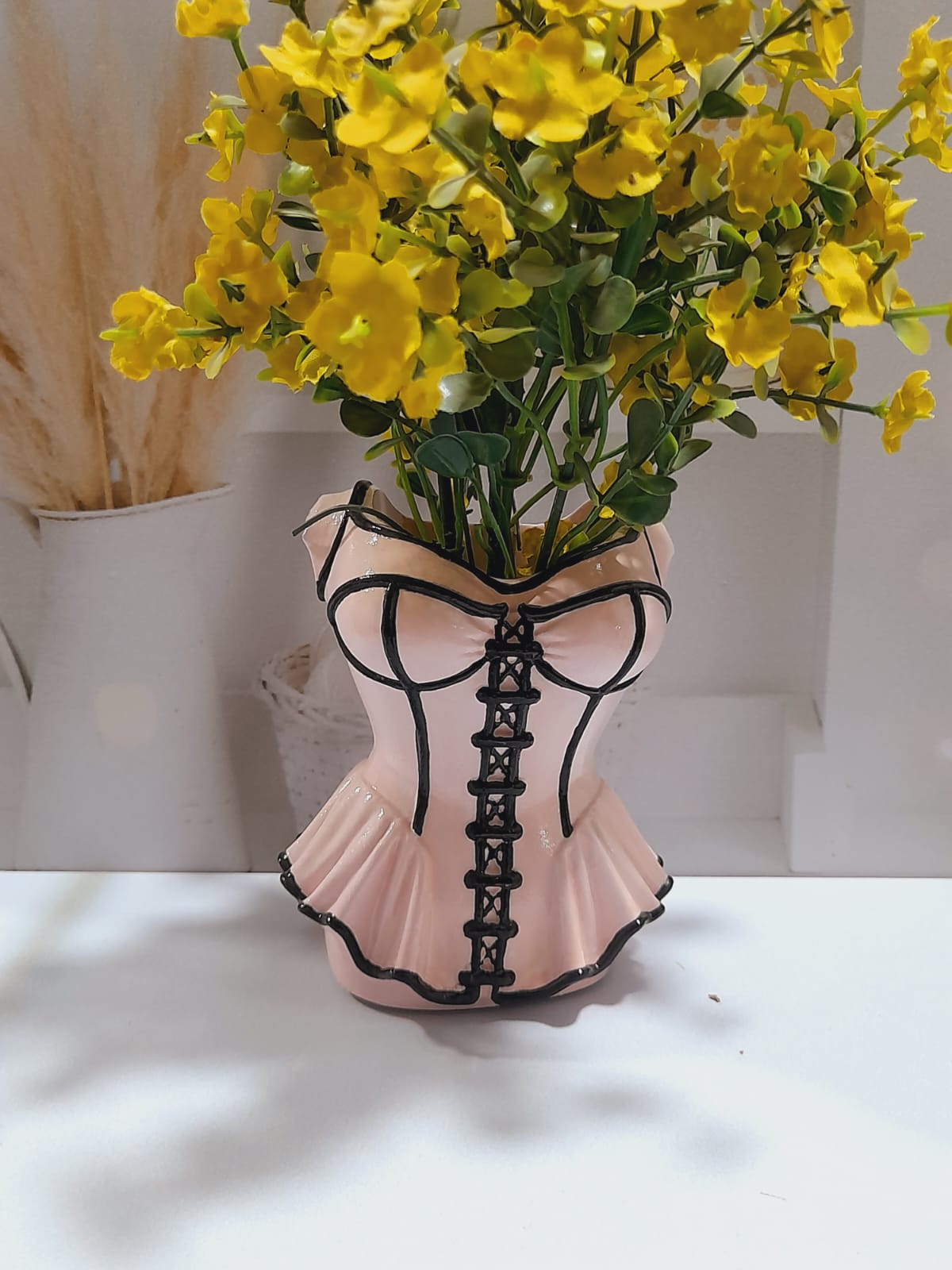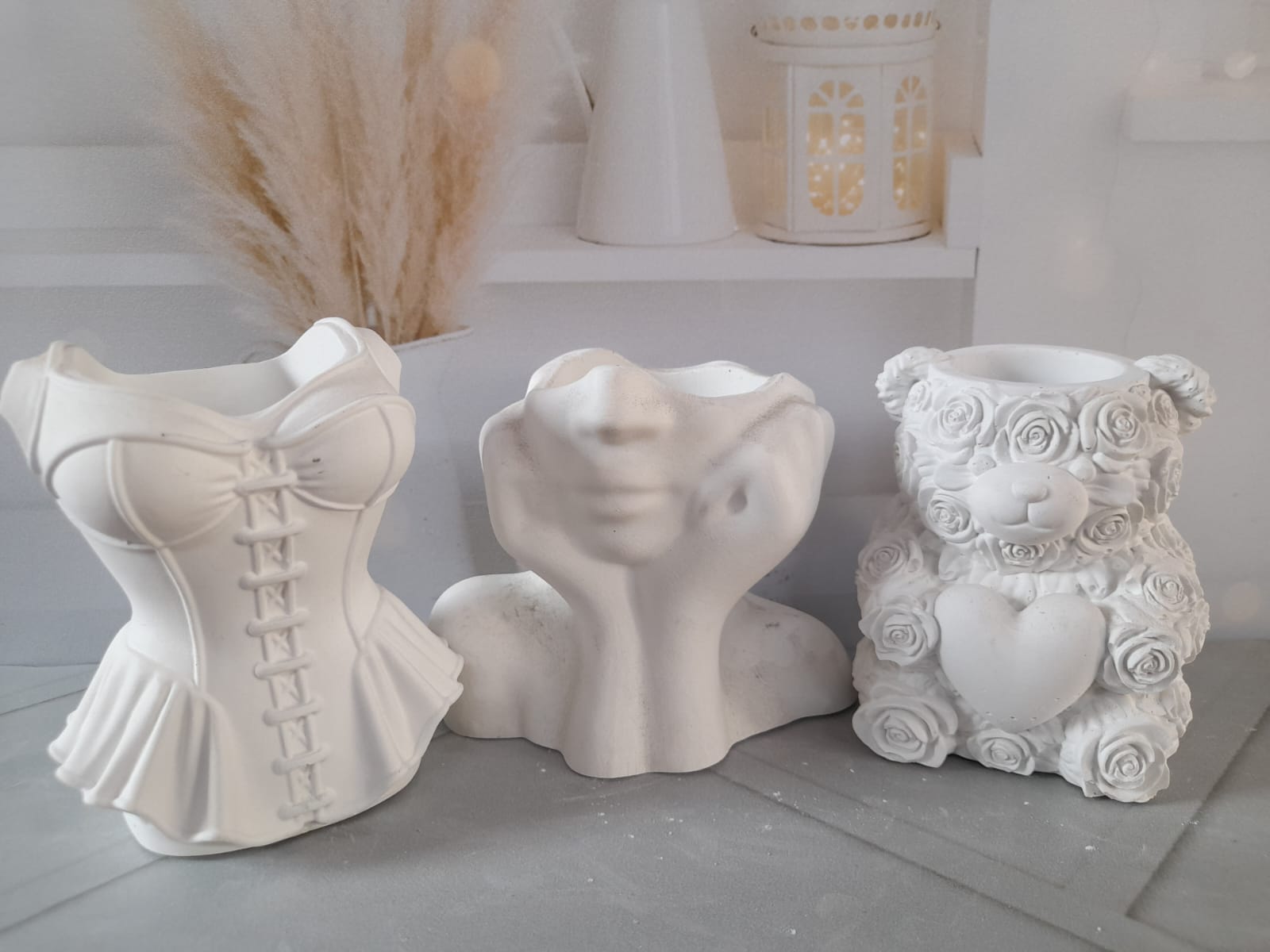 Macetita/Portalapicero Corset, material cemento blanco, altura 10cm, peso 300g