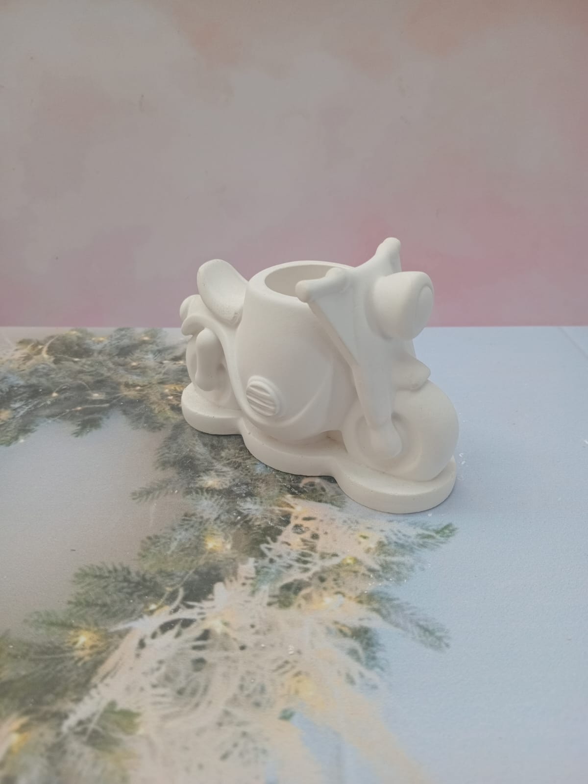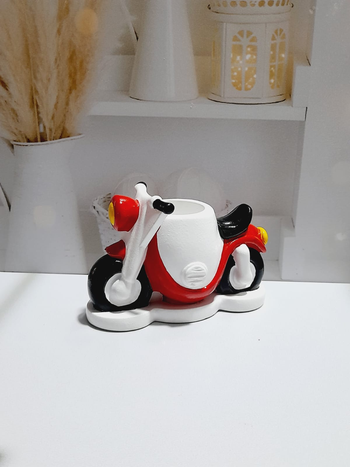 Macetita Moto, material cemento blanco, altura 7cm, peso 240g