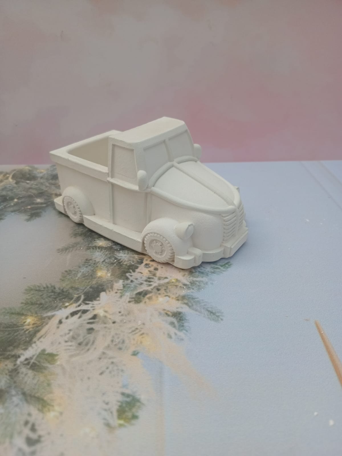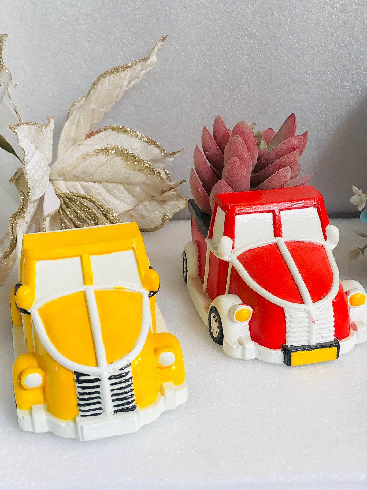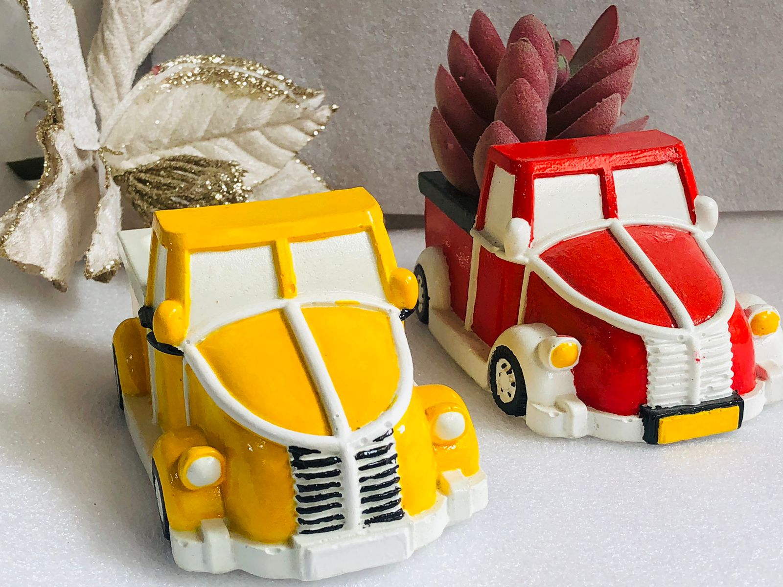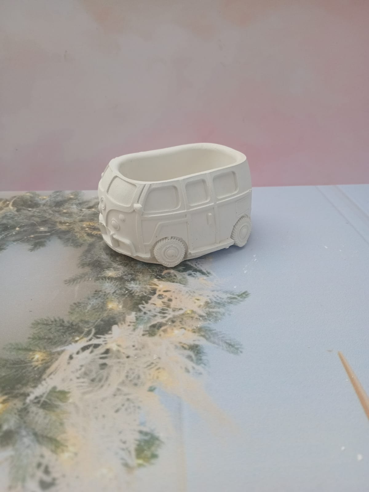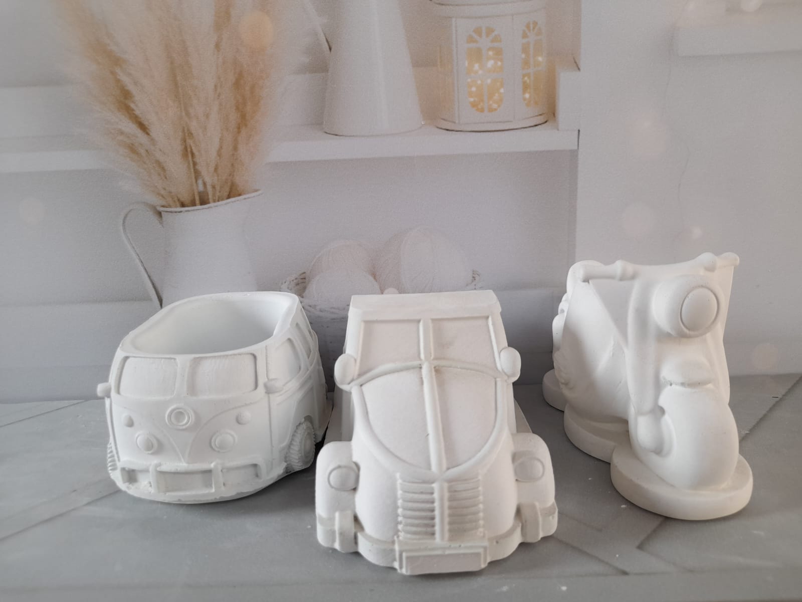 Macetita Carrito VW, material cemento blanco, altura 5cm, peso 240g