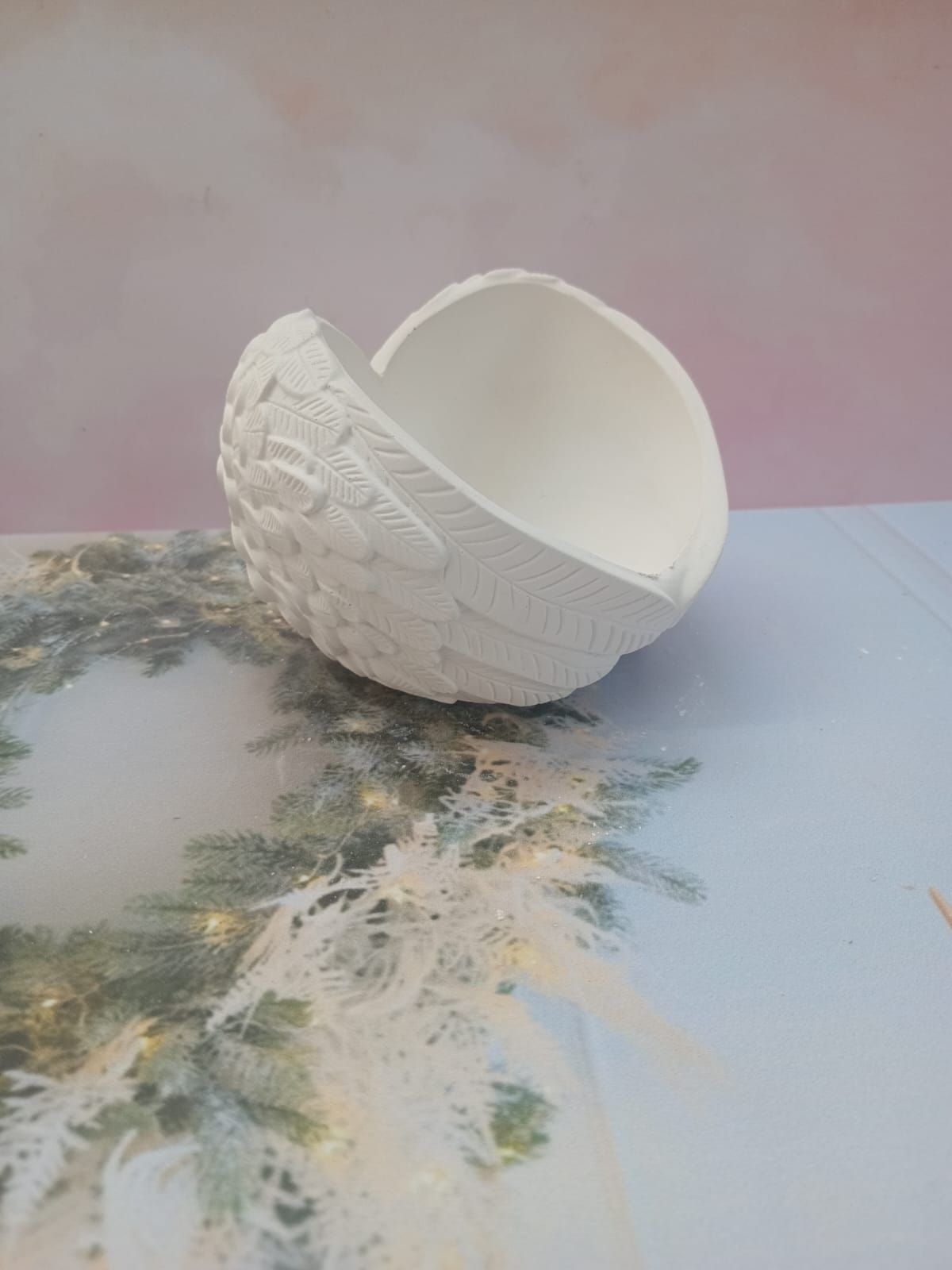 Maceta Alas de Angel, material cemento blanco, altura 8.5cm, peso 610g