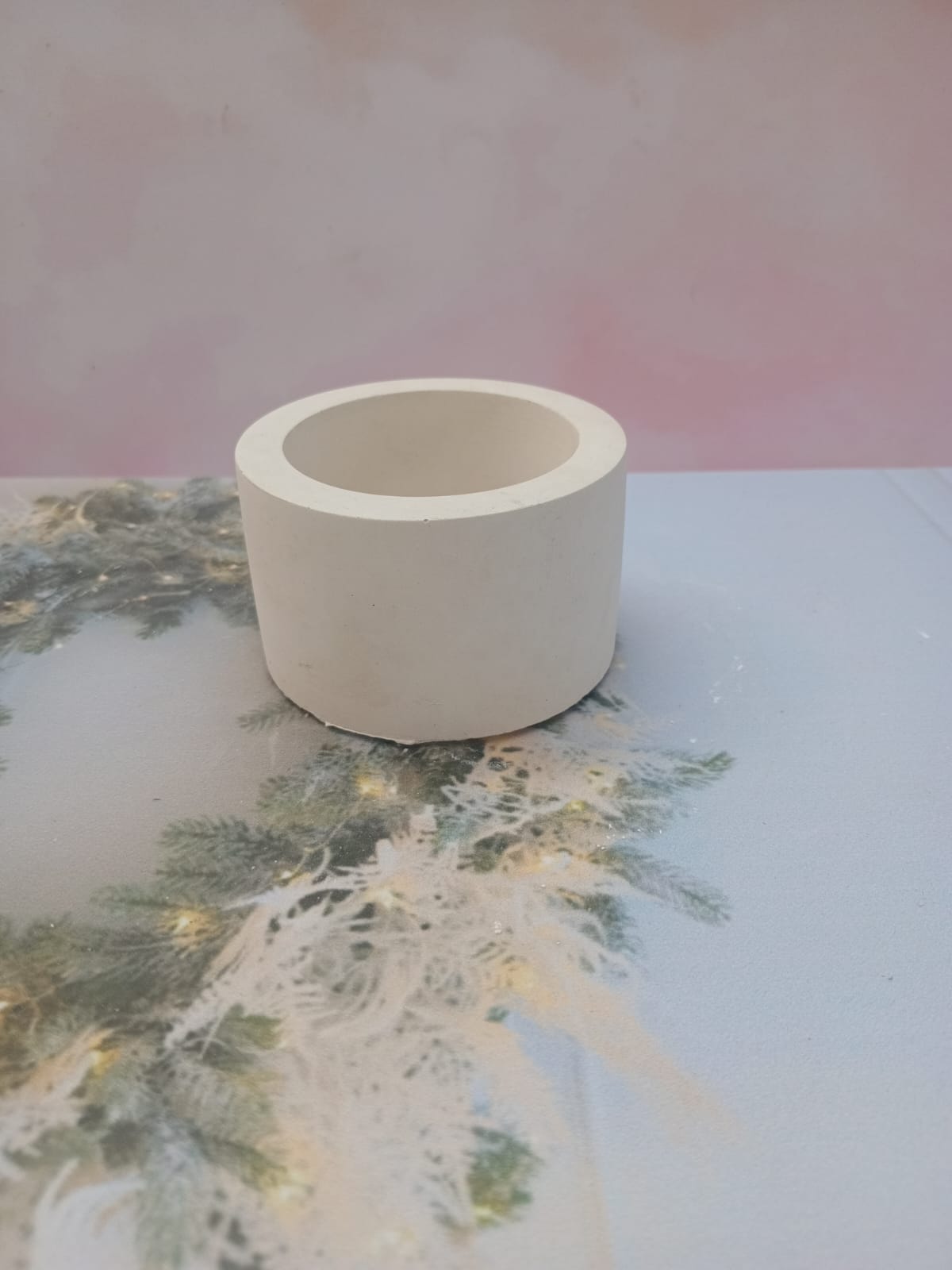 Macetita Circular, material cemento blanco, altura 4.5cm, peso 270g