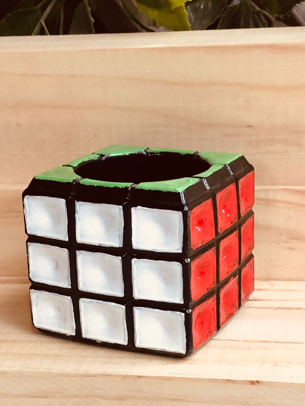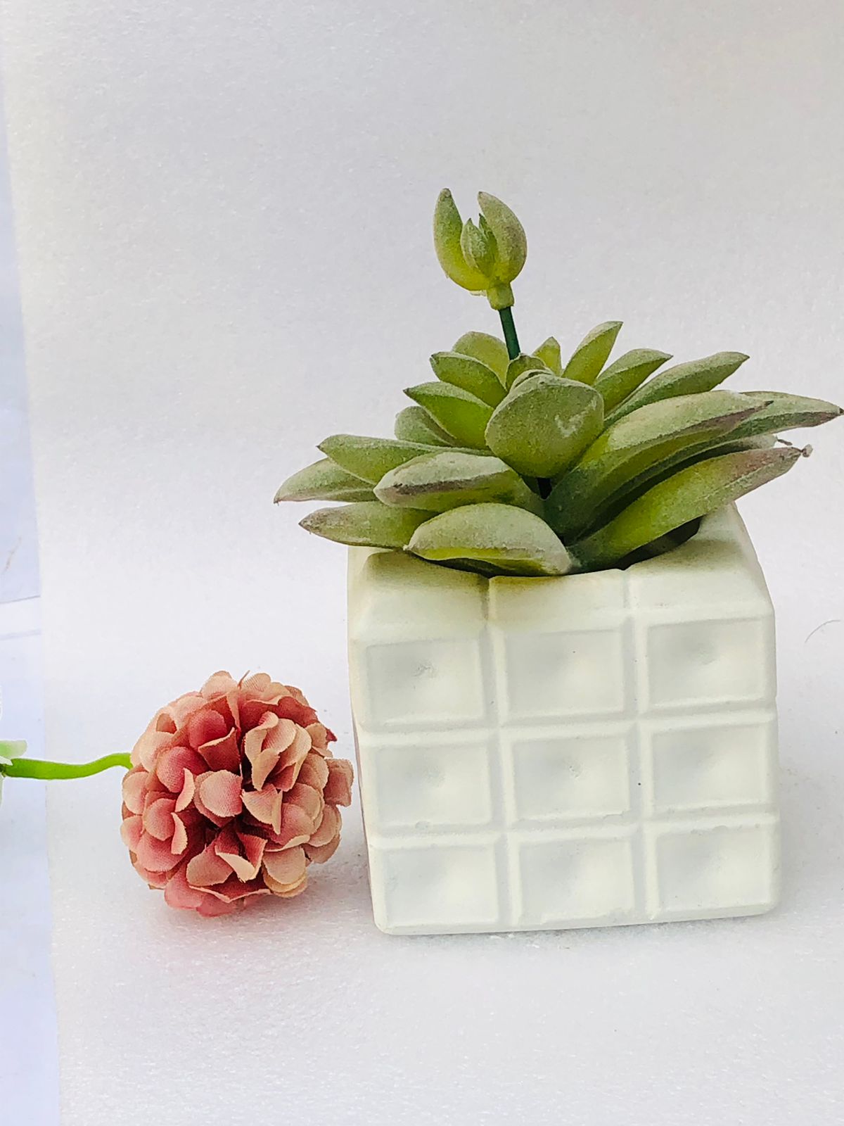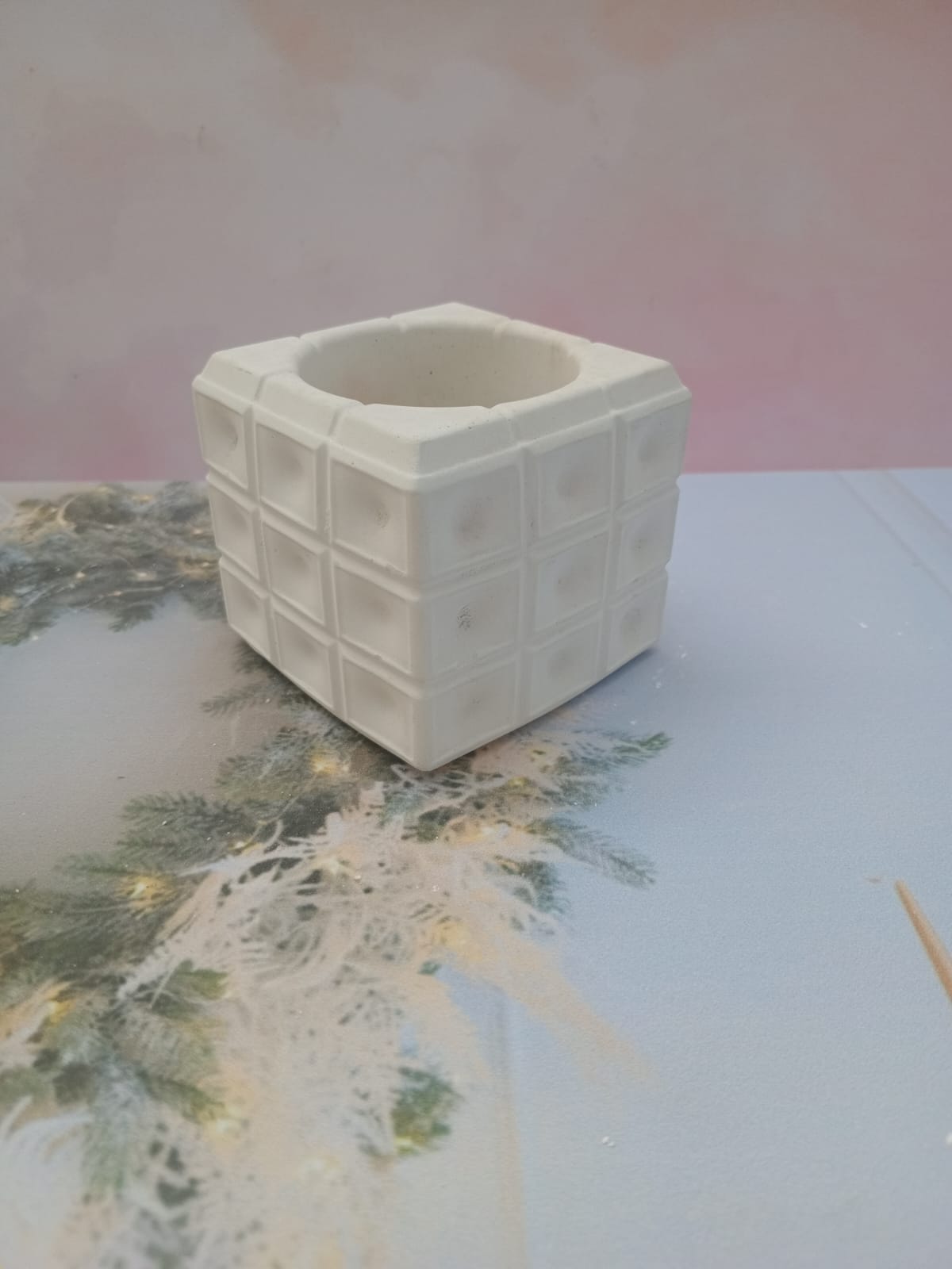 Macetita Cubo 3D, material cemento blanco, altura 6.5cm, peso 430g