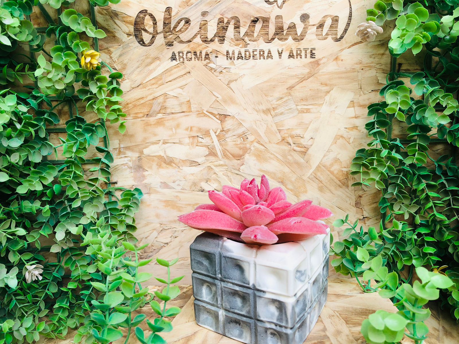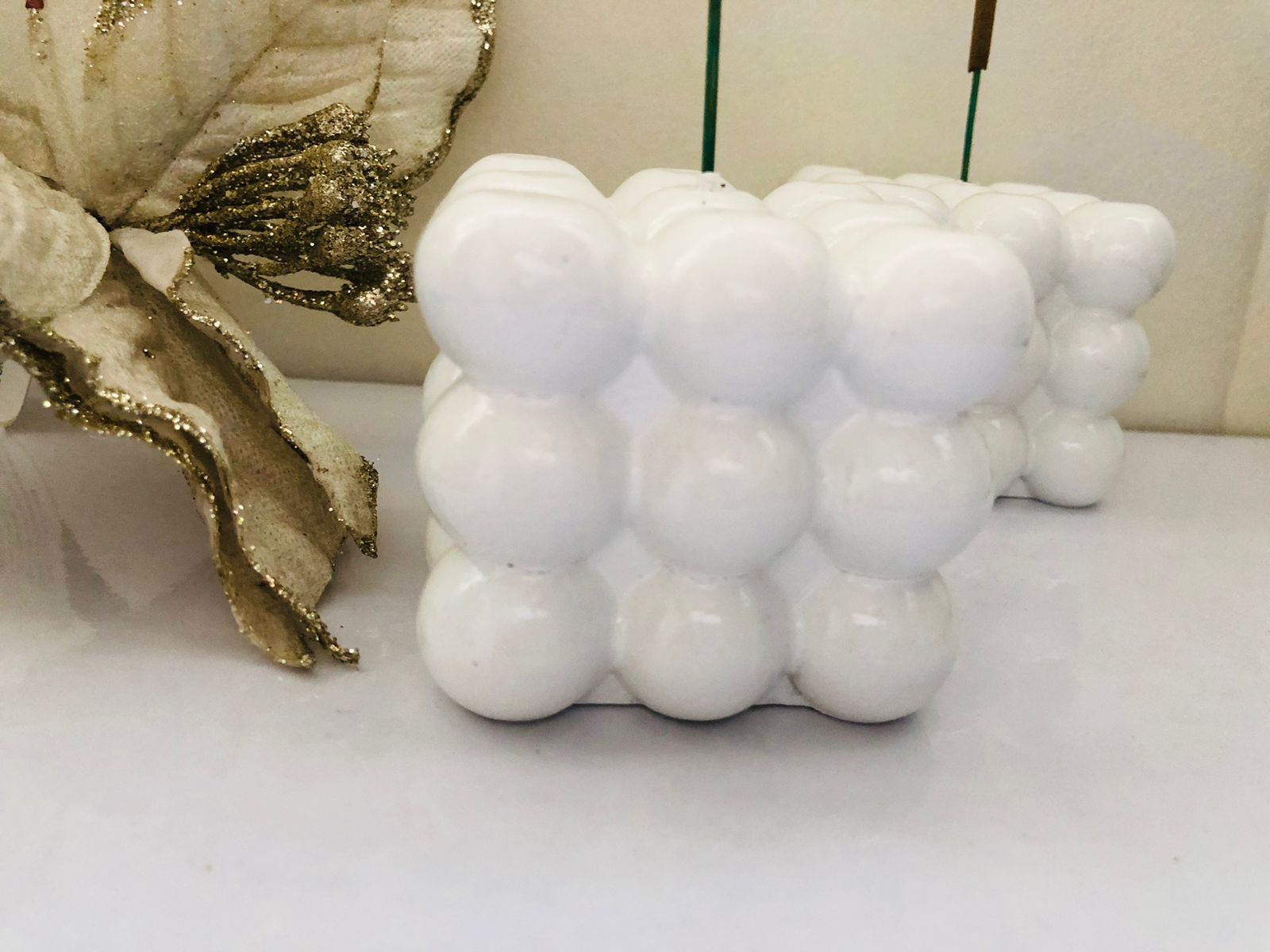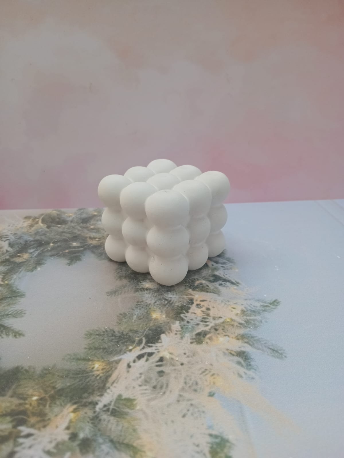 Macetita Cubo 3D, material cemento blanco, altura 6.5cm, peso 430g