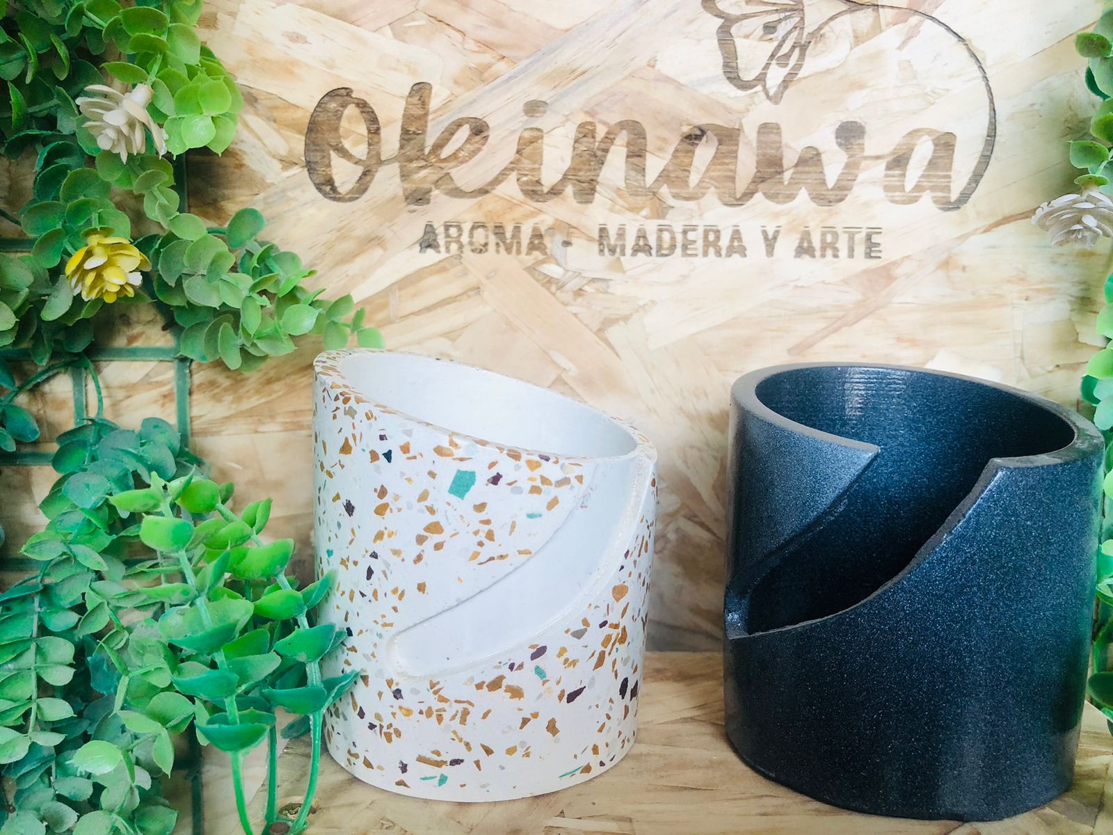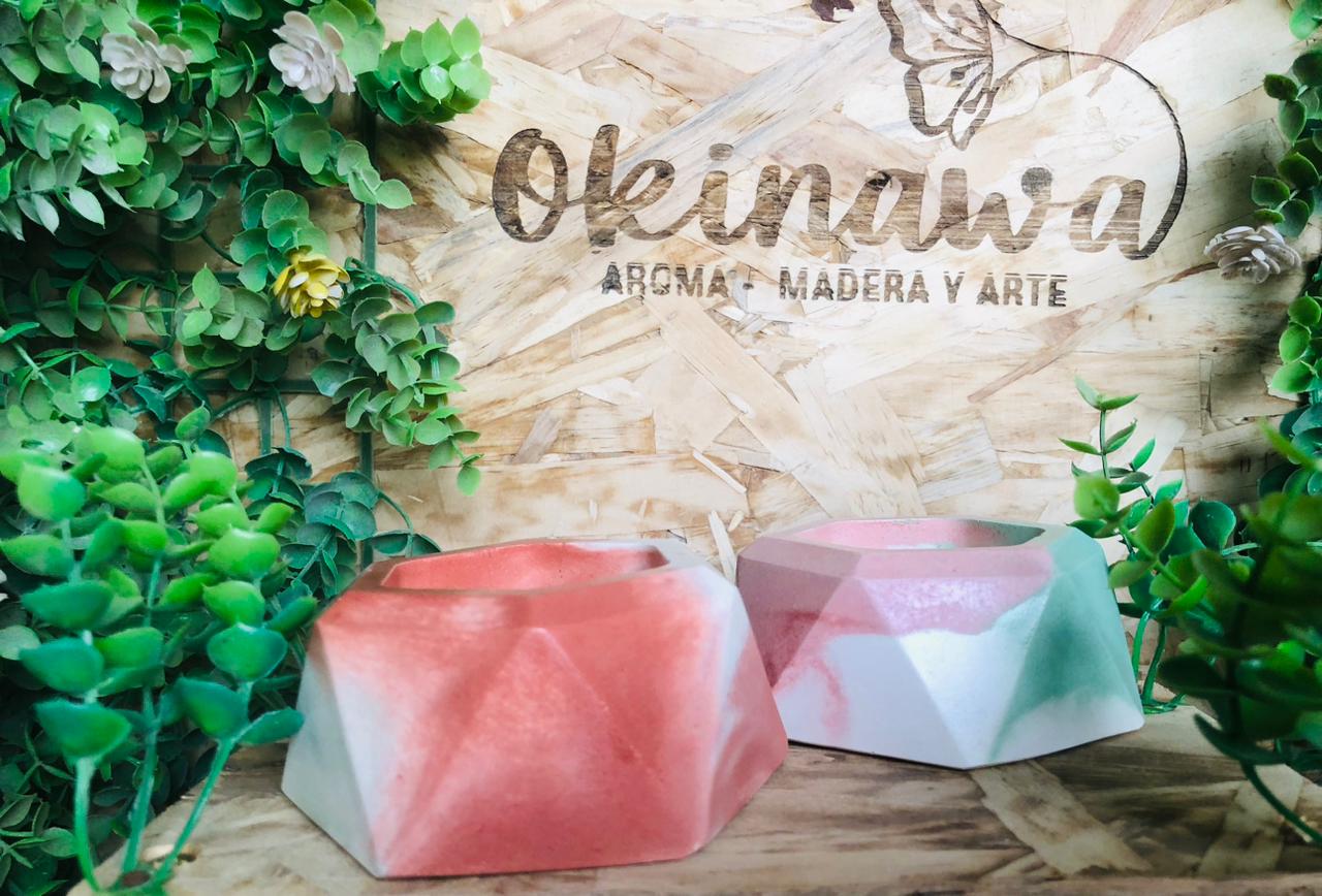 Florero Geometrico, material cemento blanco, altura 9cm, peso 370g