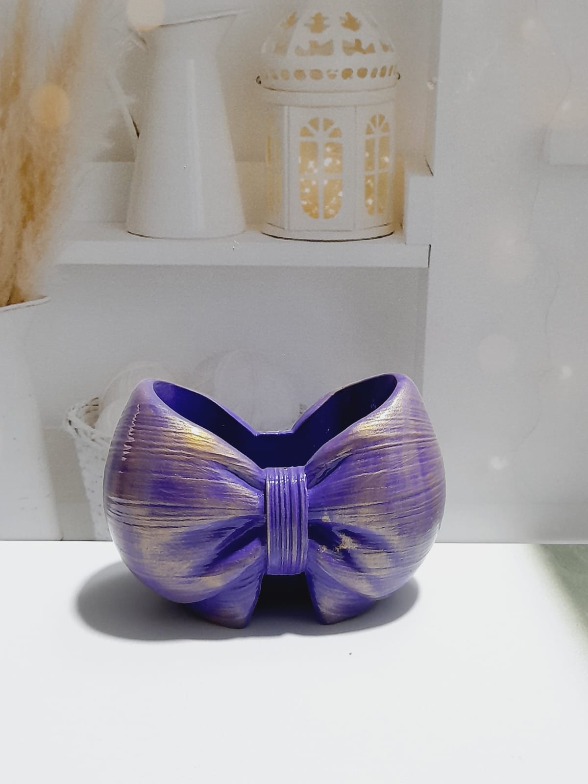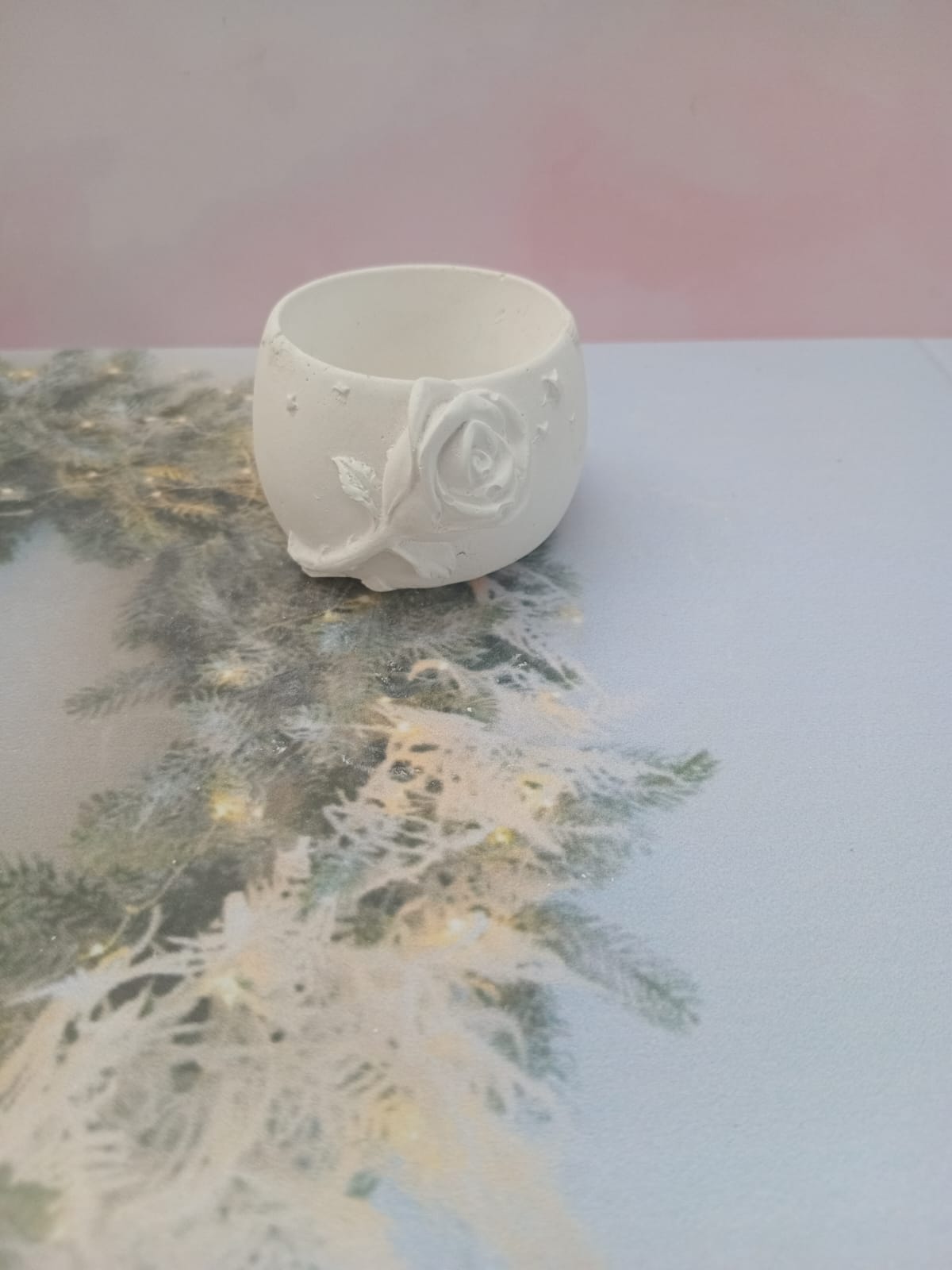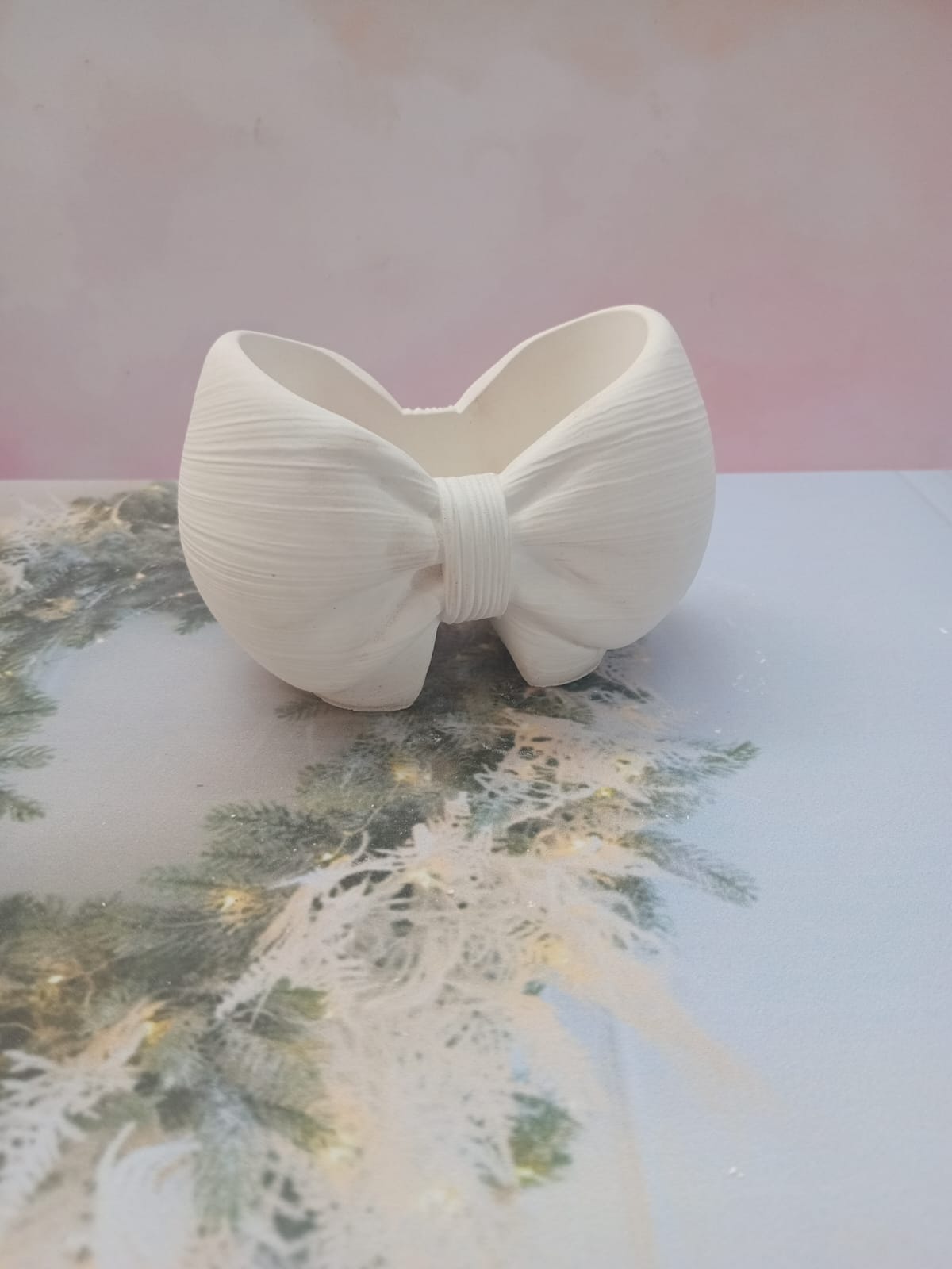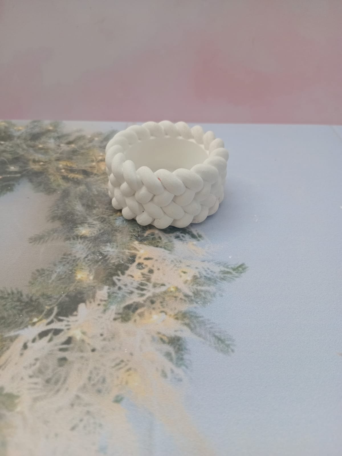 Macetita Lazo, material cemento blanco, altura 7cm, peso 270g