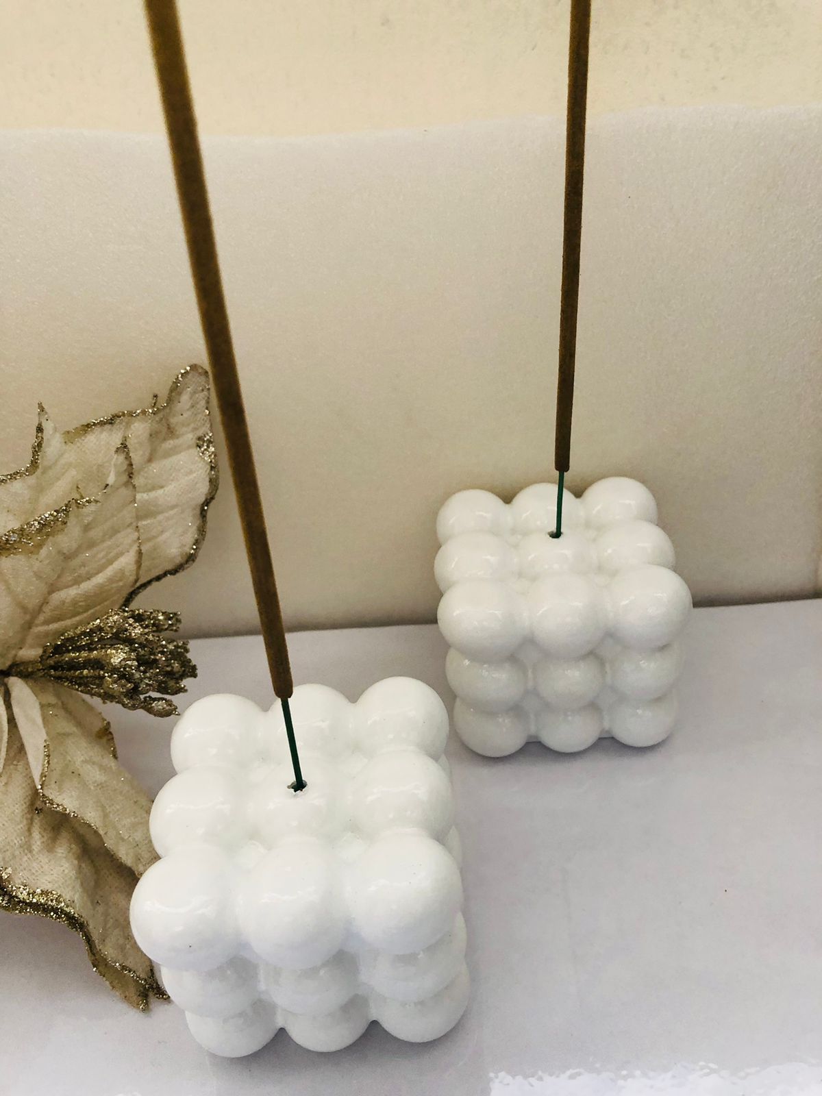 Cubo Porta Incienso, material cemento blanco, altura 5.5cm, peso 360g