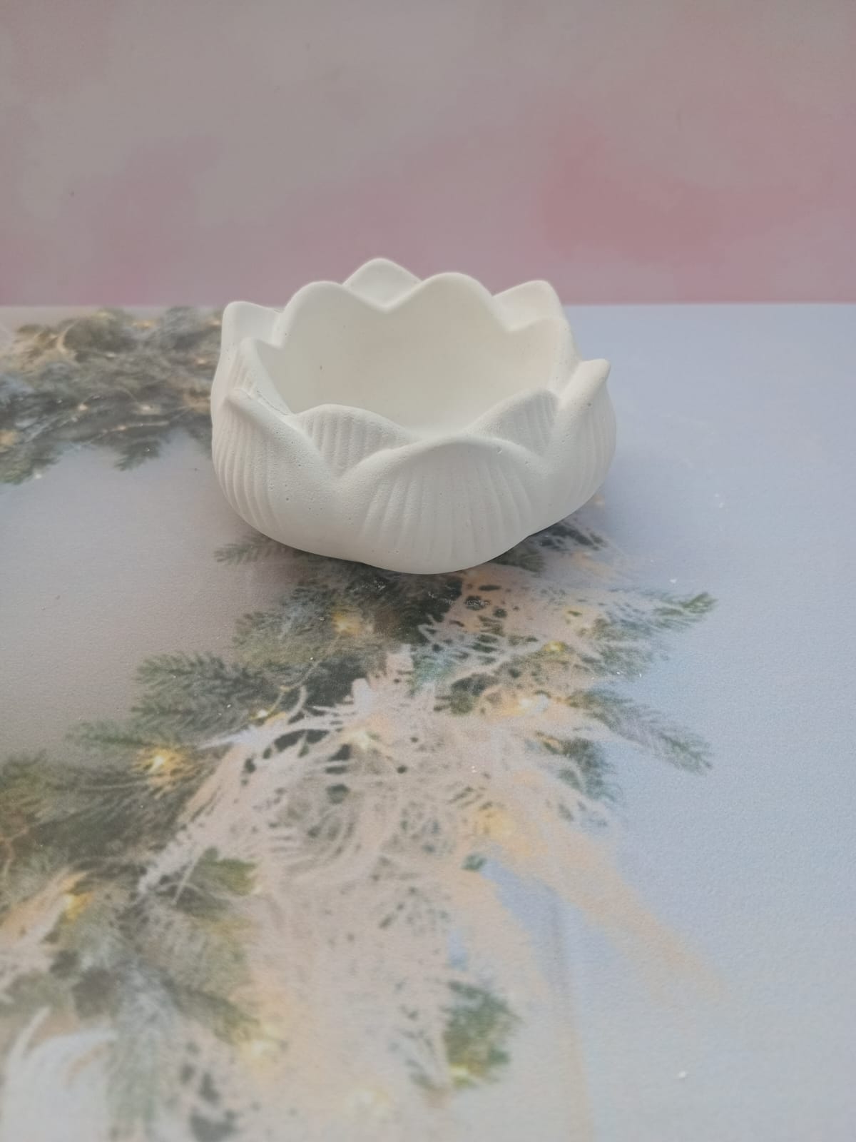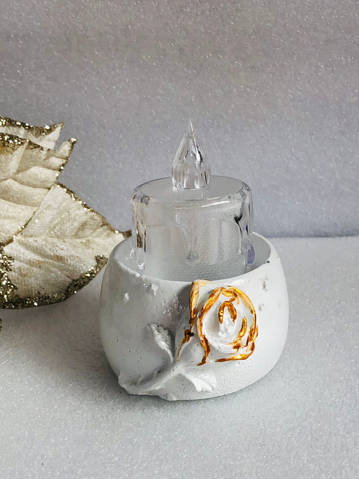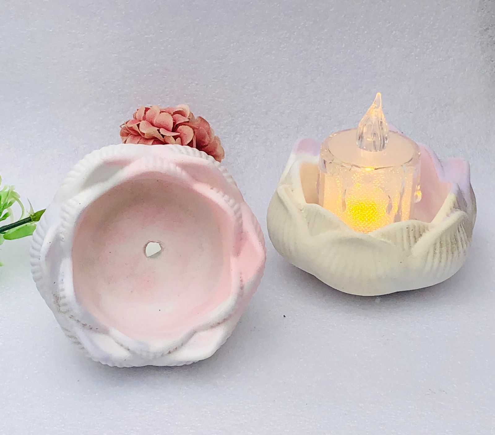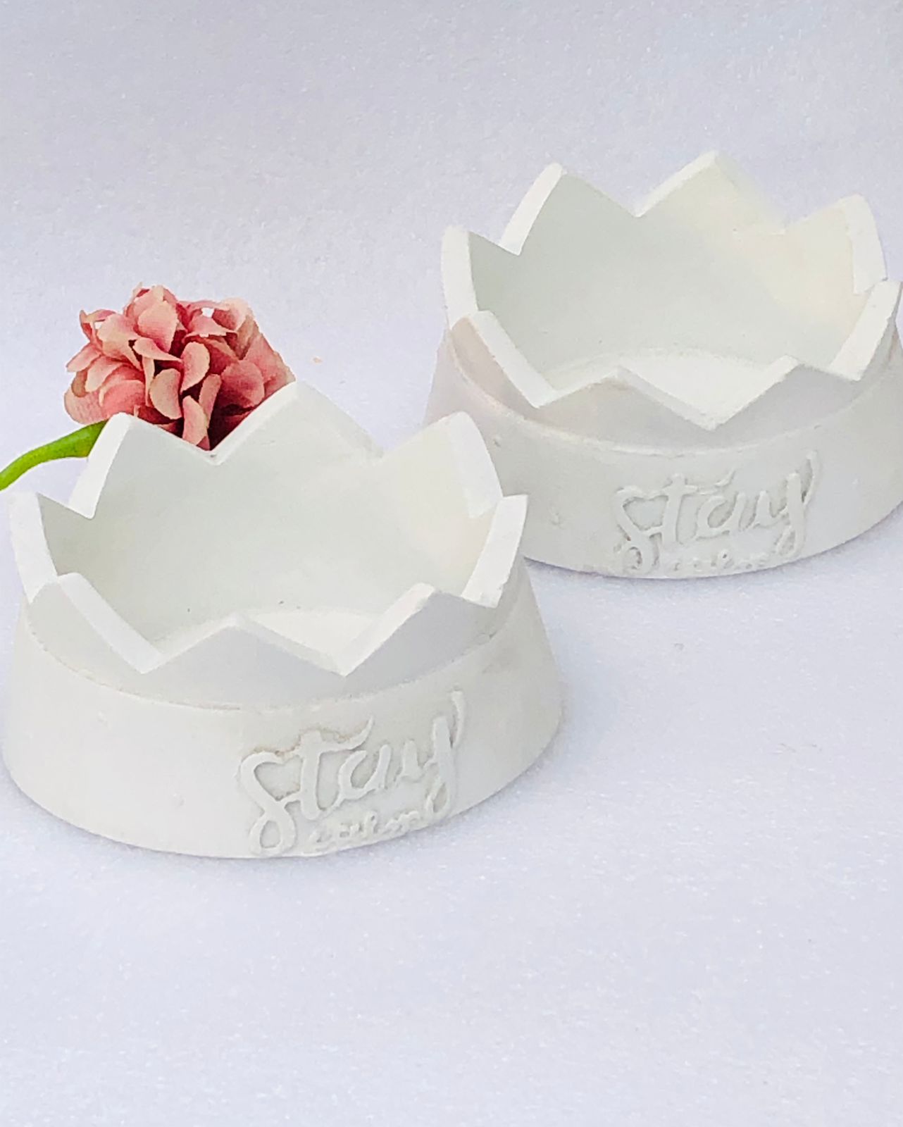 Macetita Flor de Lotto, material cemento blanco, altura 4cm, peso 160g