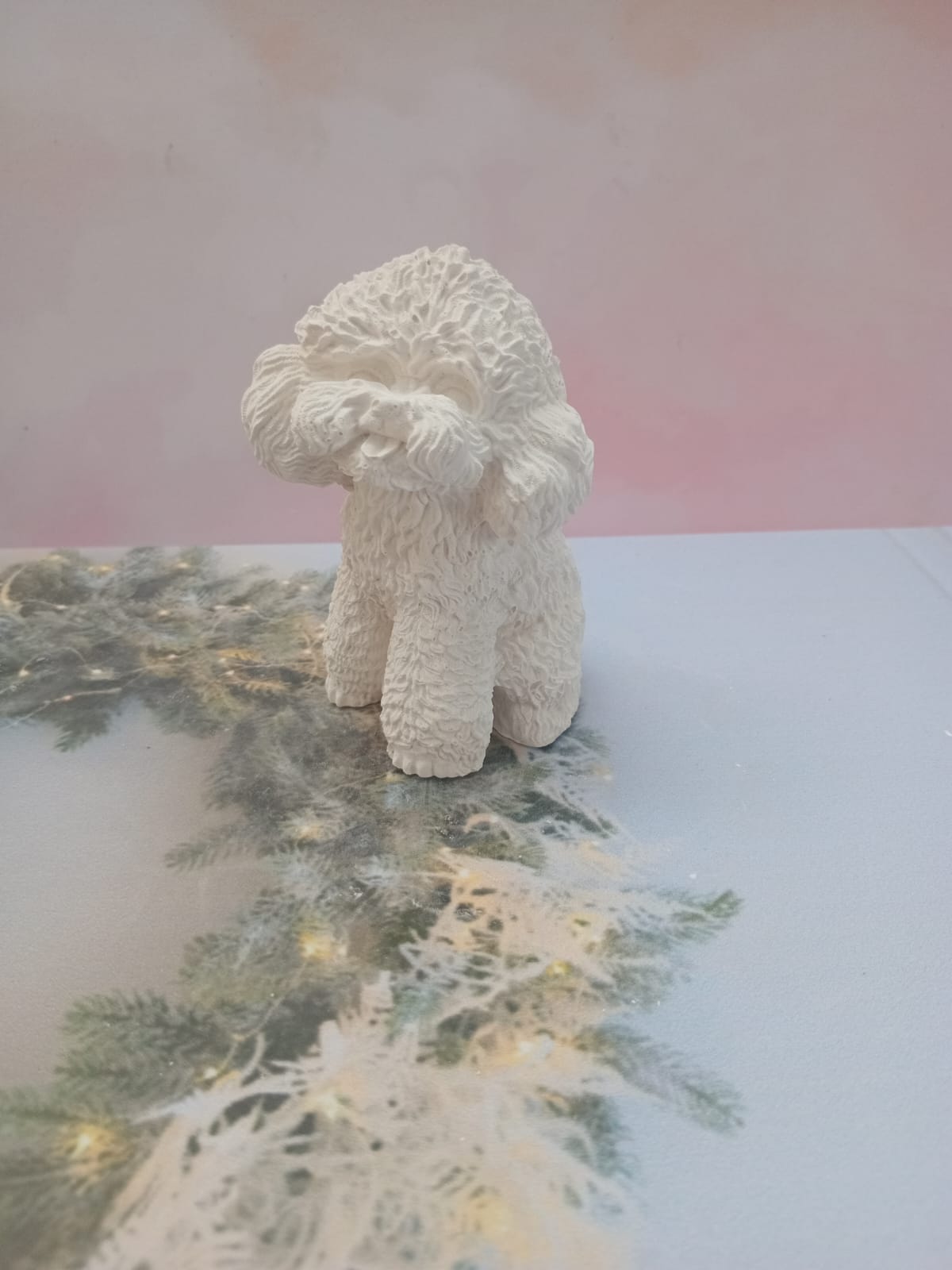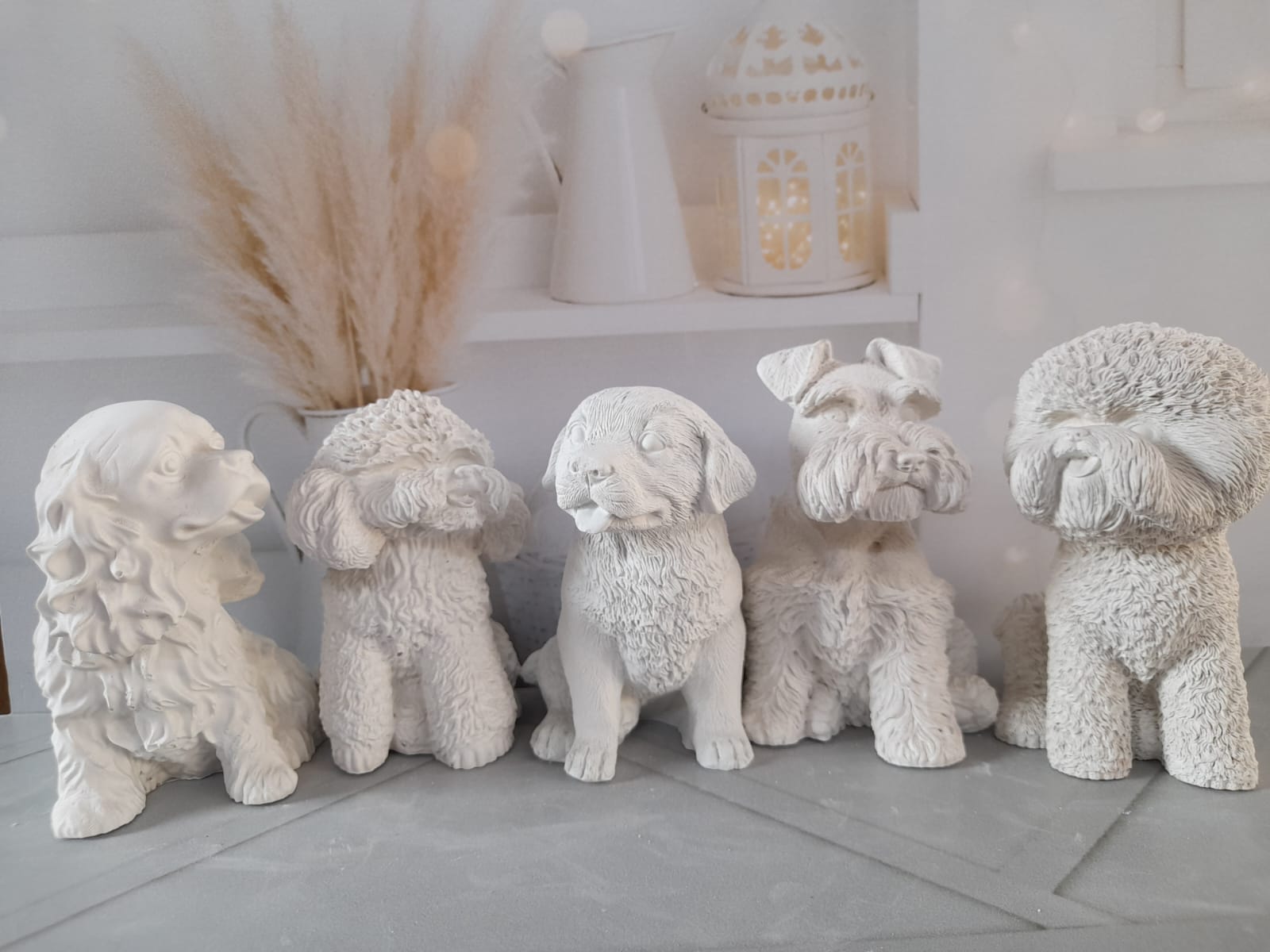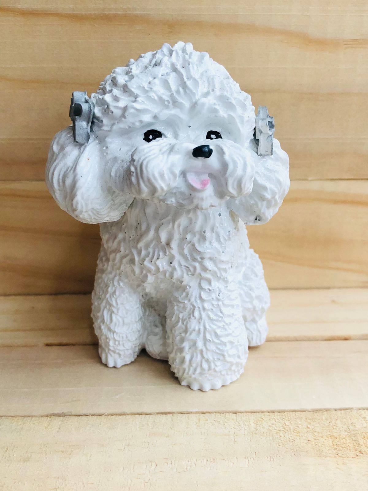 Figurita Poodle, material cemento blanco, altura 9cm, peso 230g