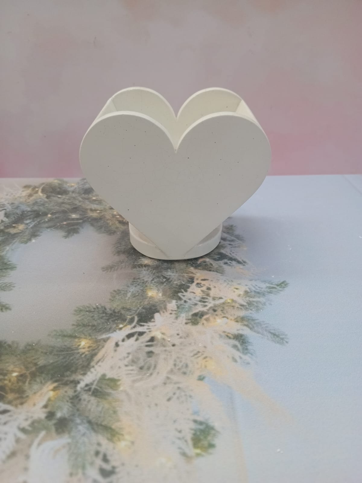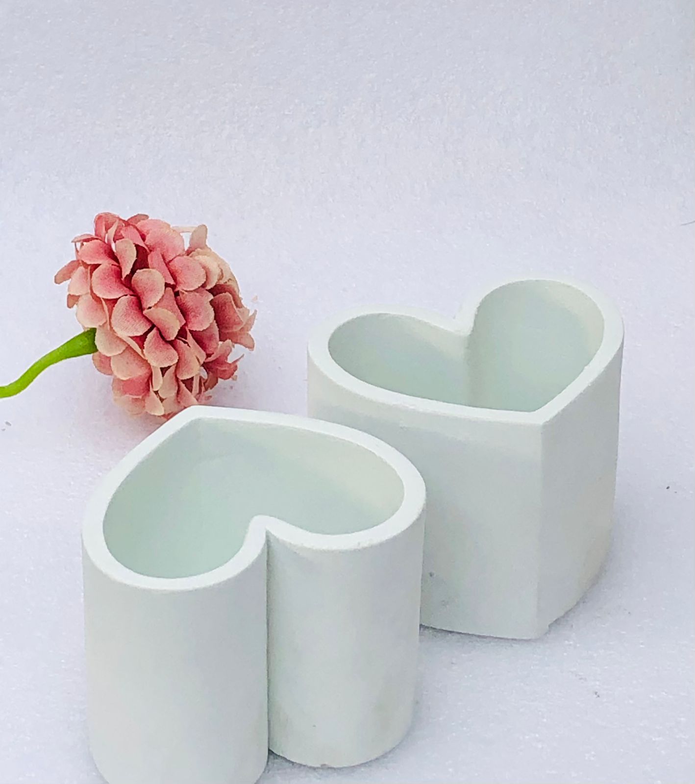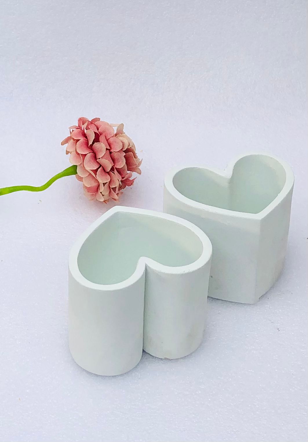 Macetita Corazon con Base, material cemento blanco, altura 8cm, peso 350g