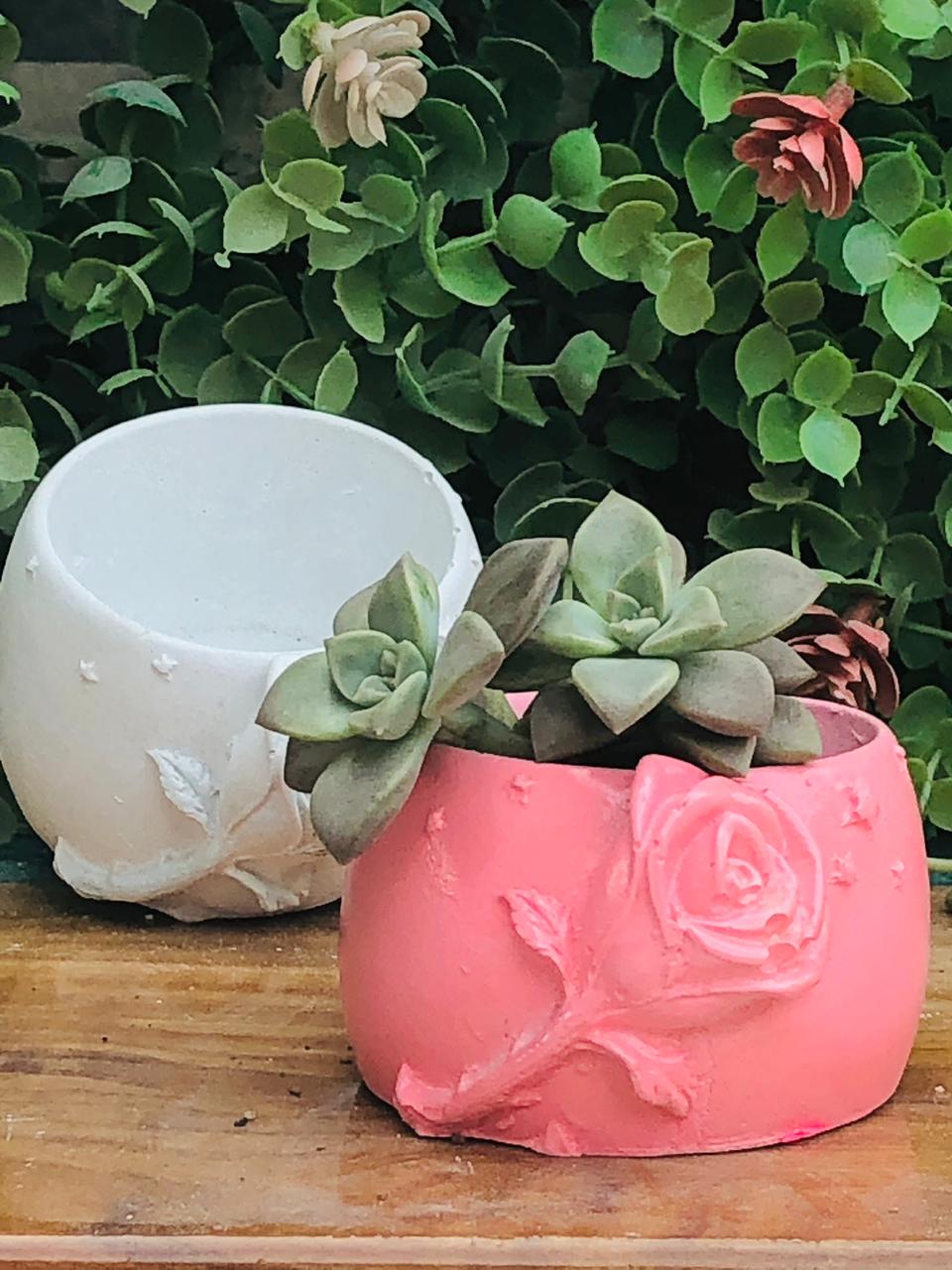 Macetita Rosita, material cemento blanco, altura 11cm, peso 490g