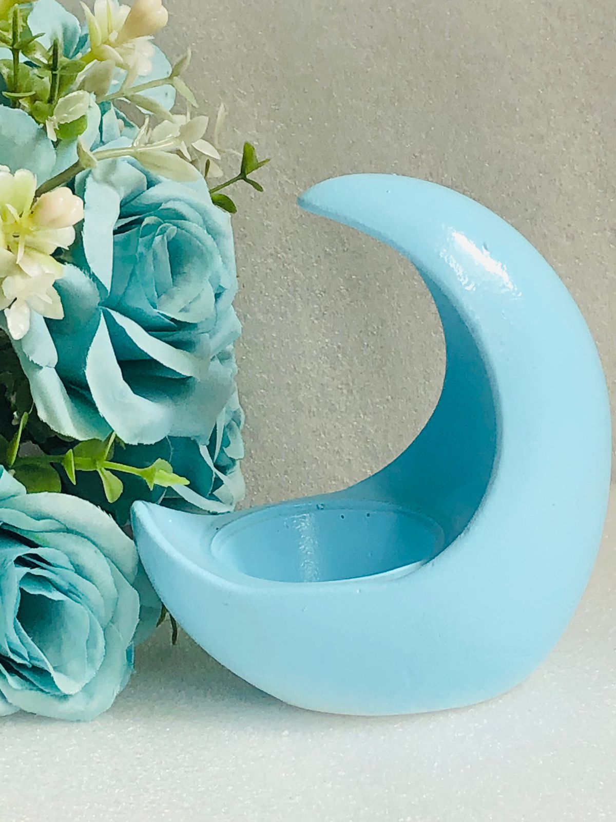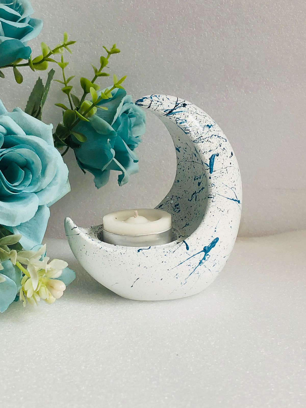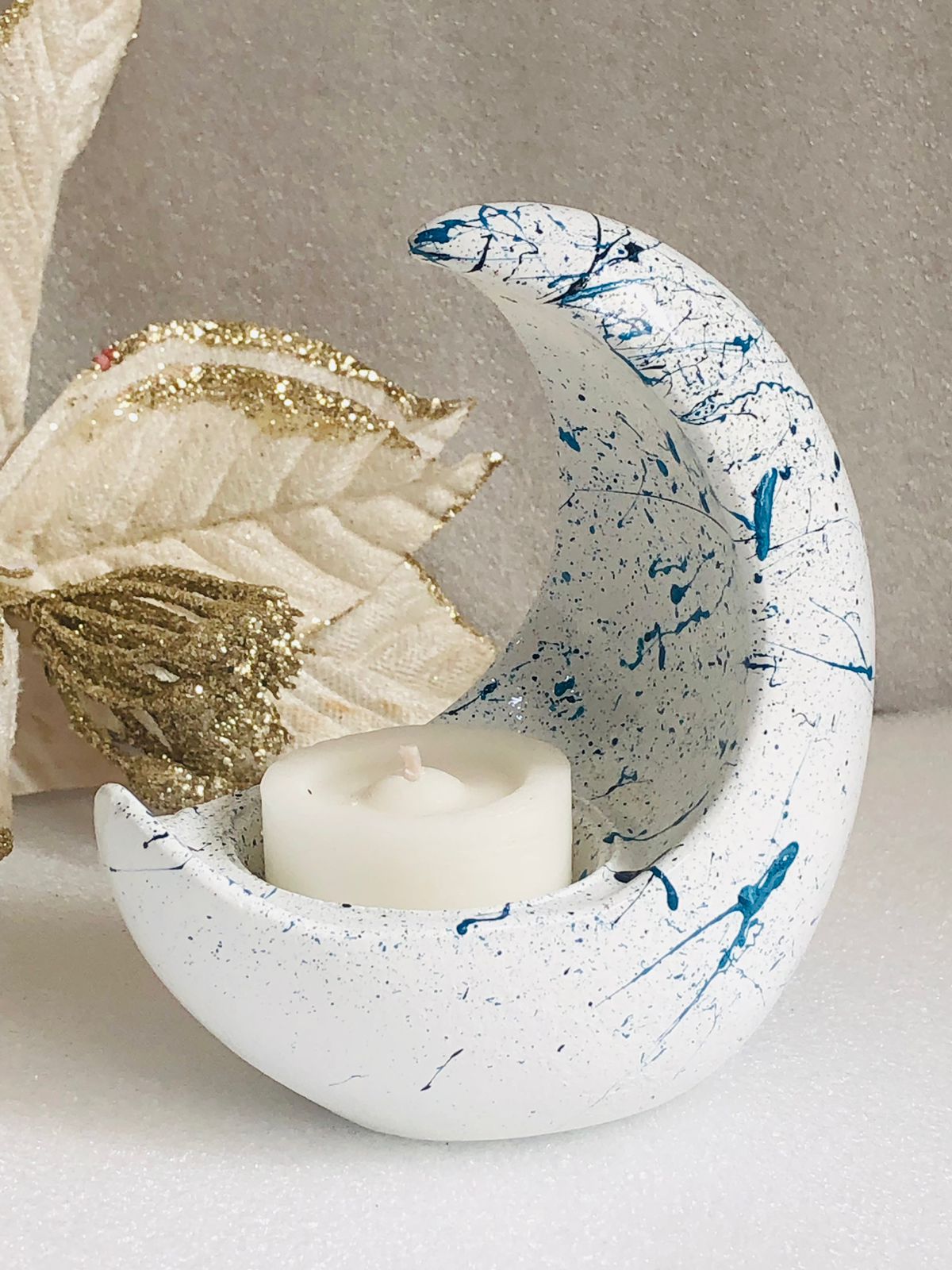 Portavelita Luna, material cemento blanco, altura 10cm, peso 270g