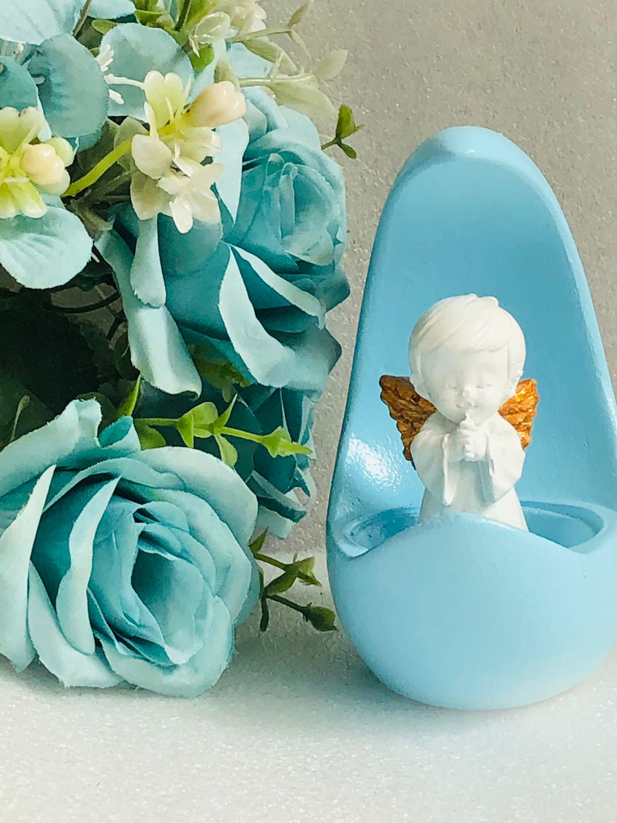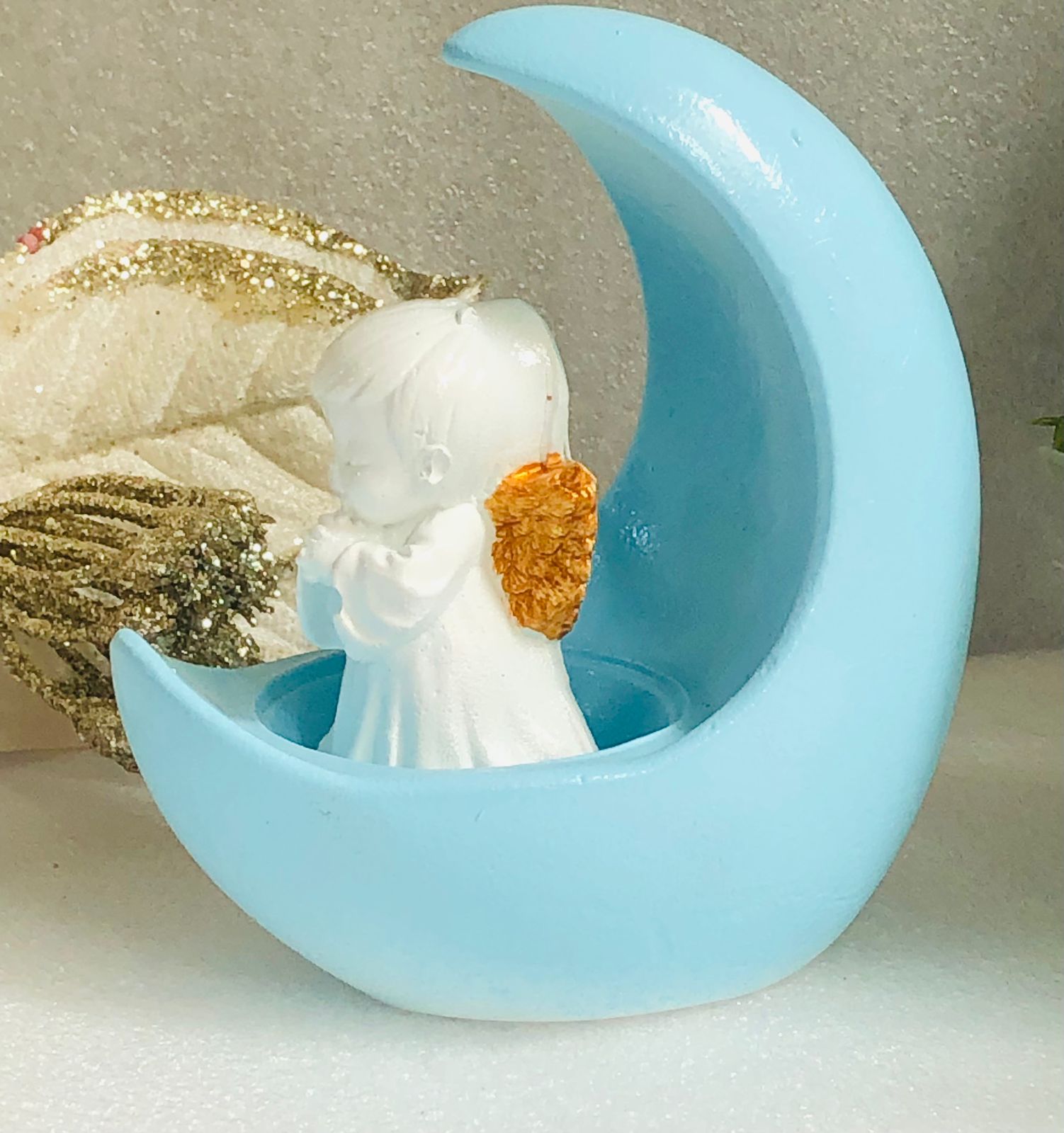 Figurita Angelito Unisex, material cemento blanco, altura 7.5cm, peso 120g