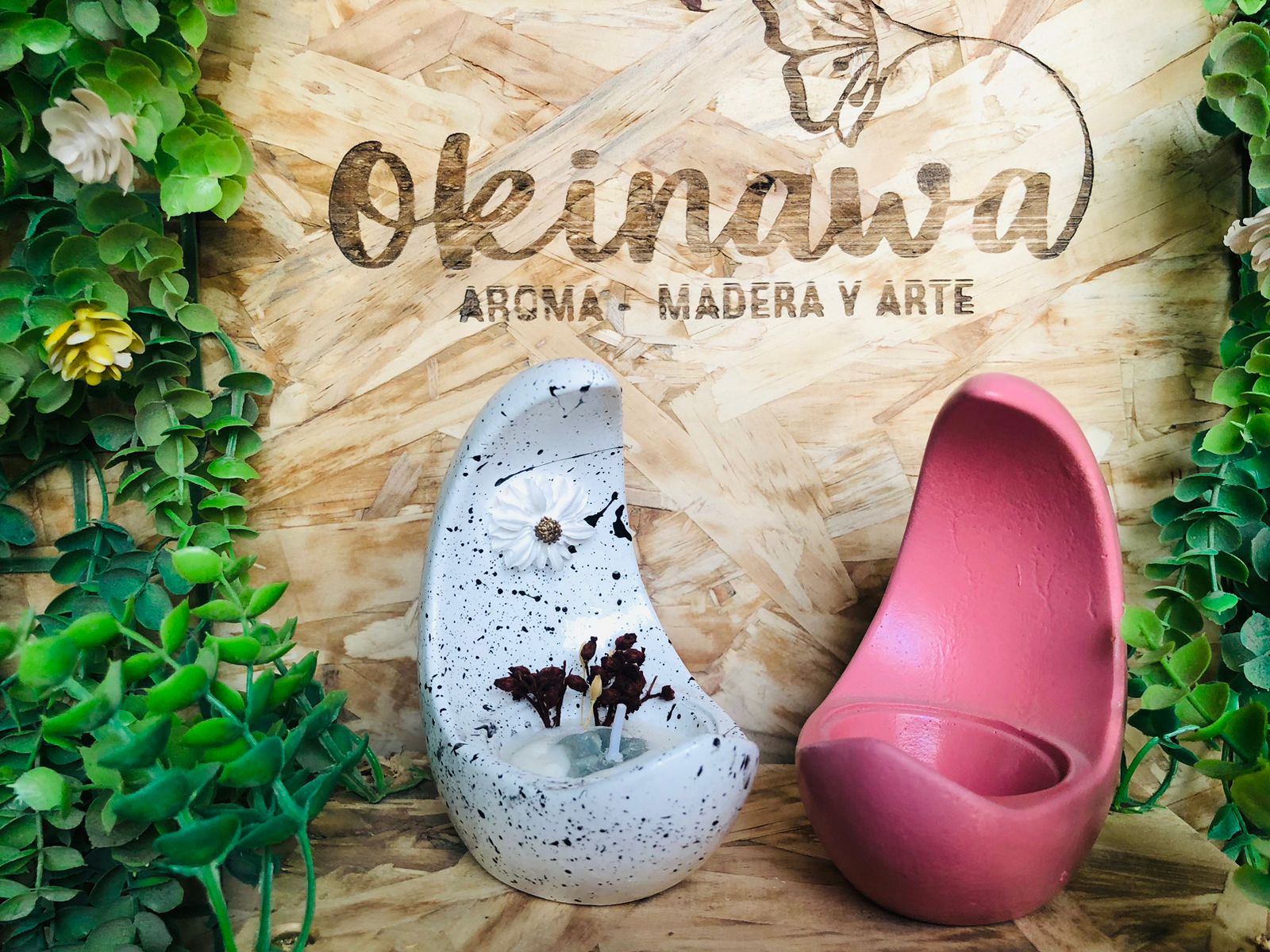 Macetita Paleta, material cemento blanco, altura 7cm, peso 320g
