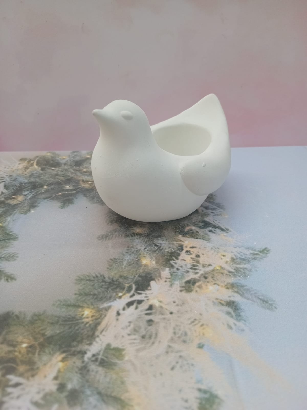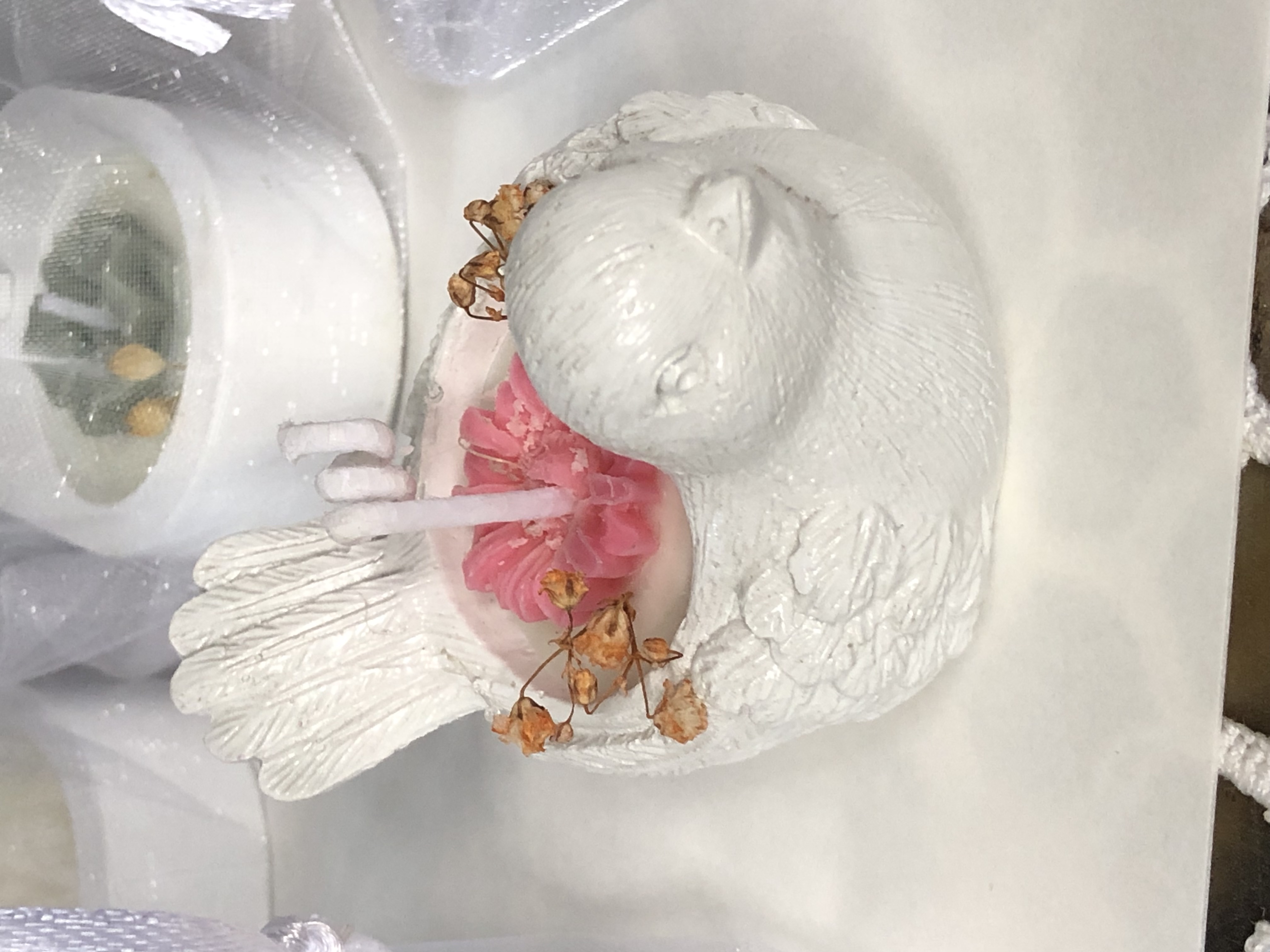 Portavelita Palomita, material cemento blanco, altura 4cm, peso 90g