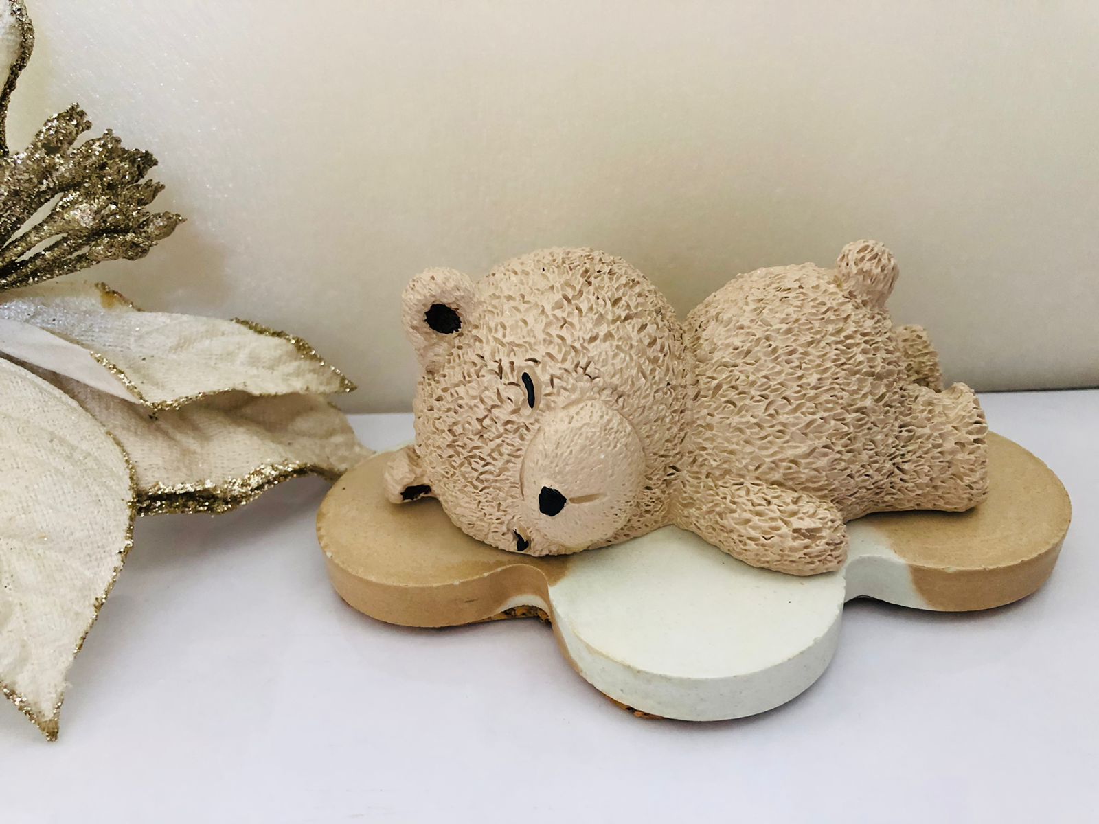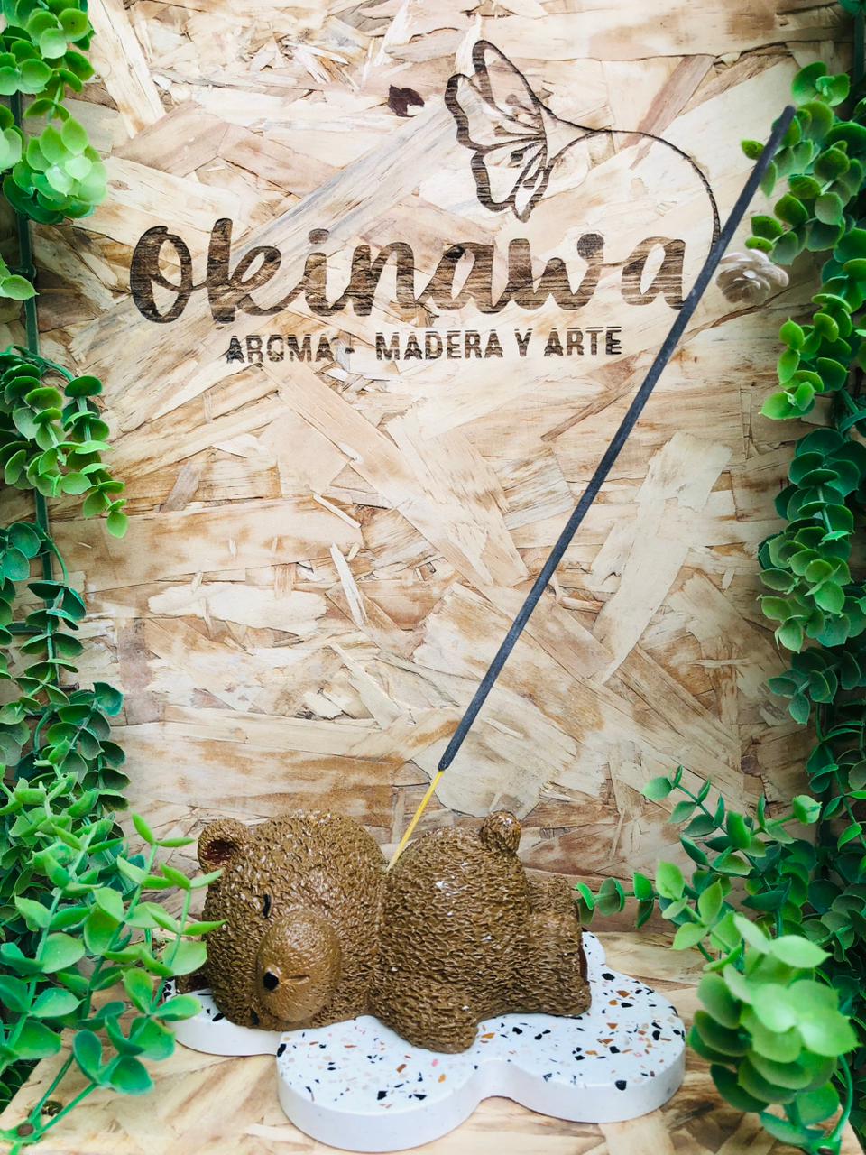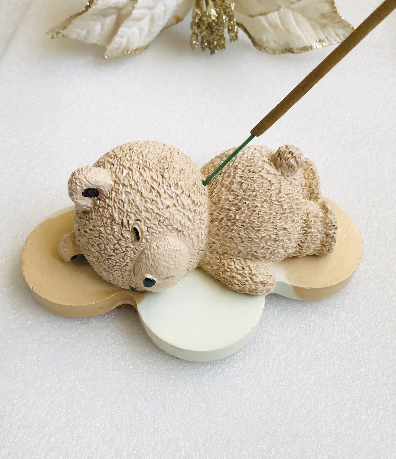 Porta Incienso Oso Dormilon con su base nube, material cemento blanco, peso 440g